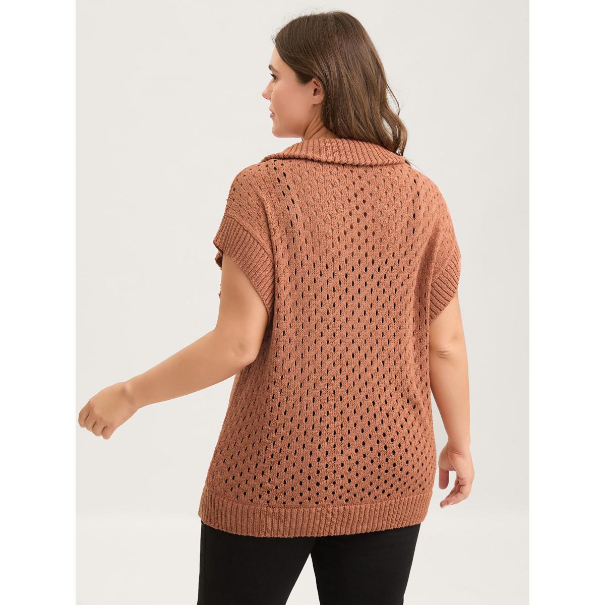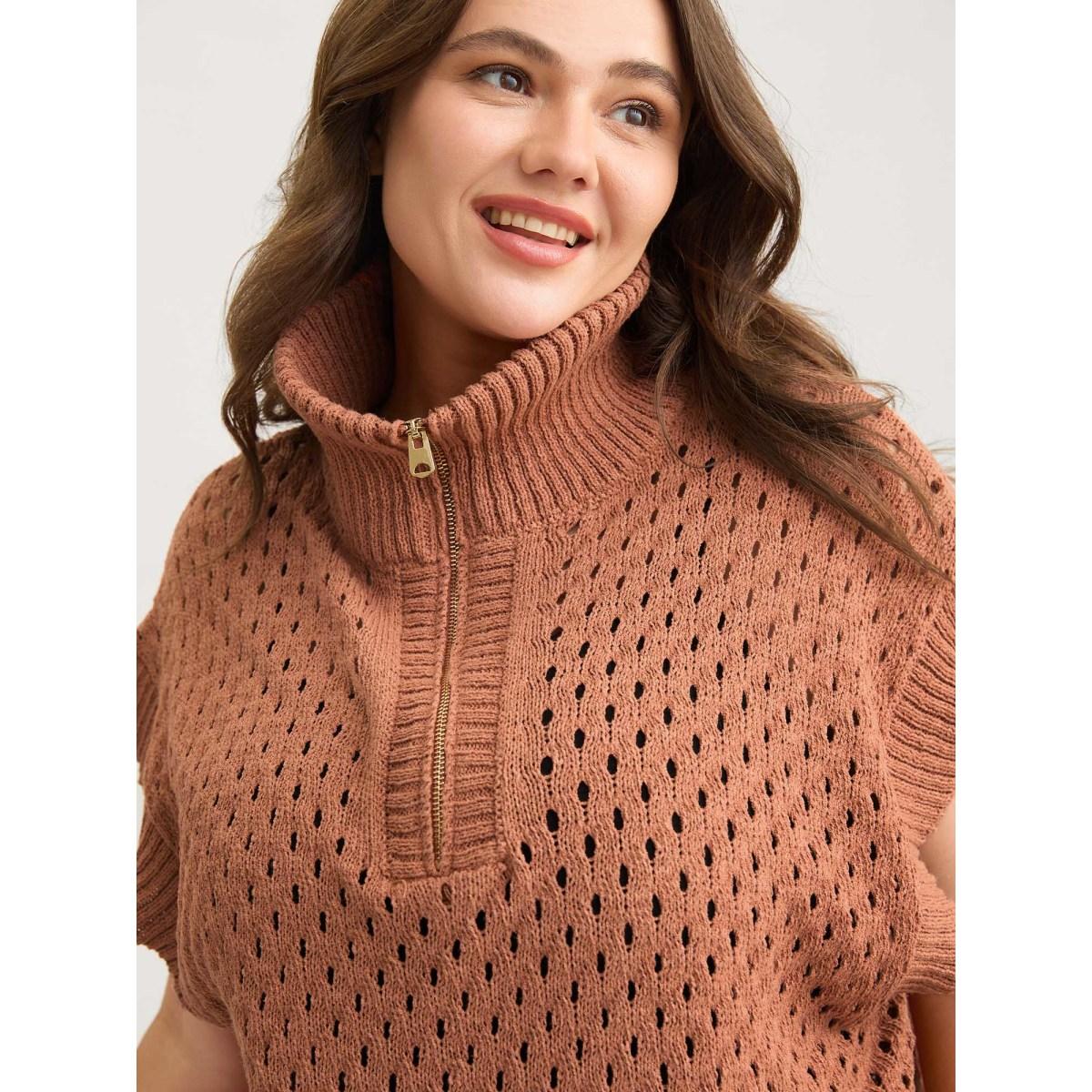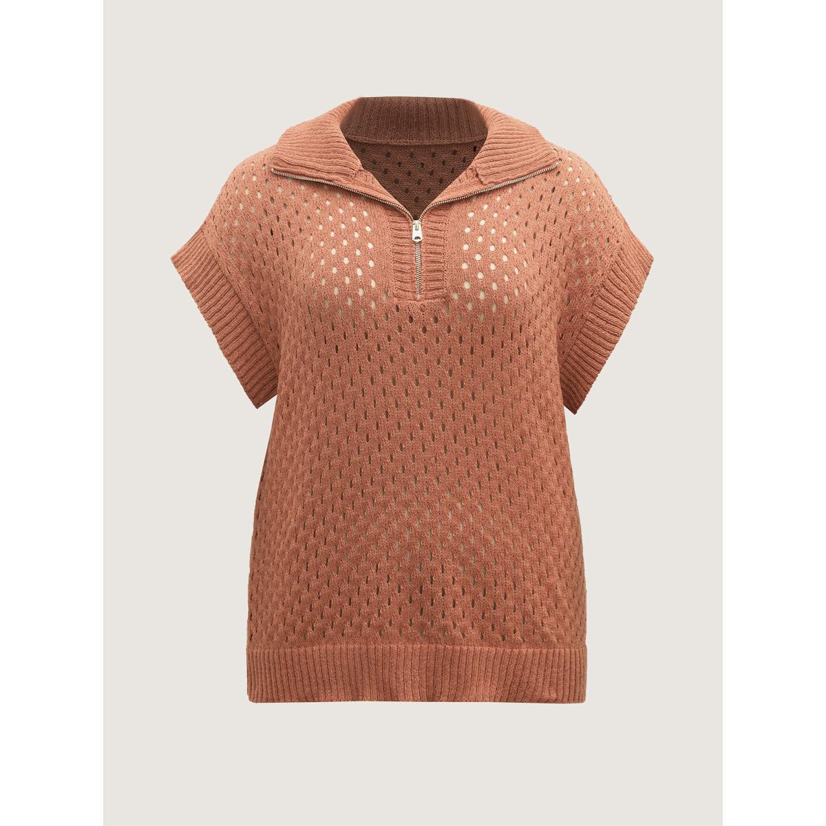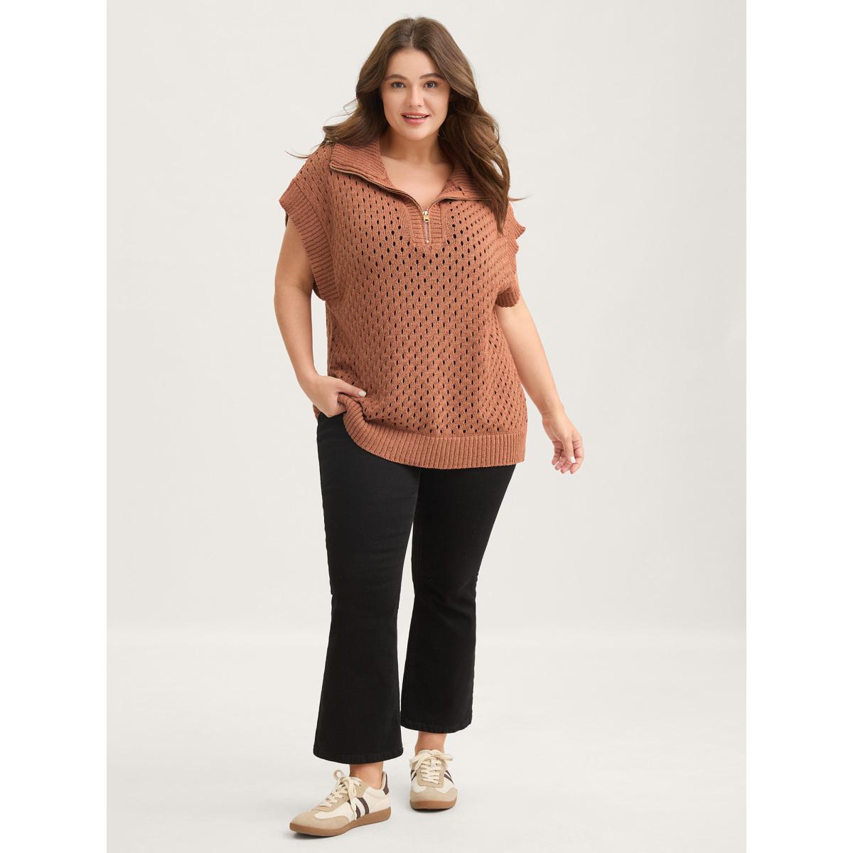 Plus Size Half-Zipper Sheer Textured Sleeveless Pullover Crepe Women Leisure Loose Sleeveless Polo Casual Pullovers BloomChic 30/6X