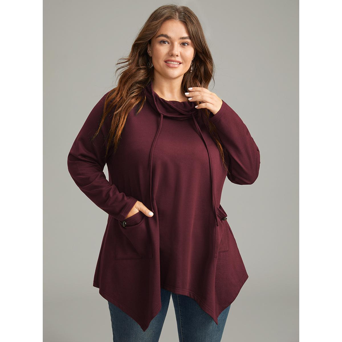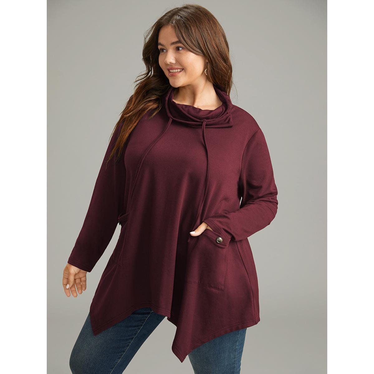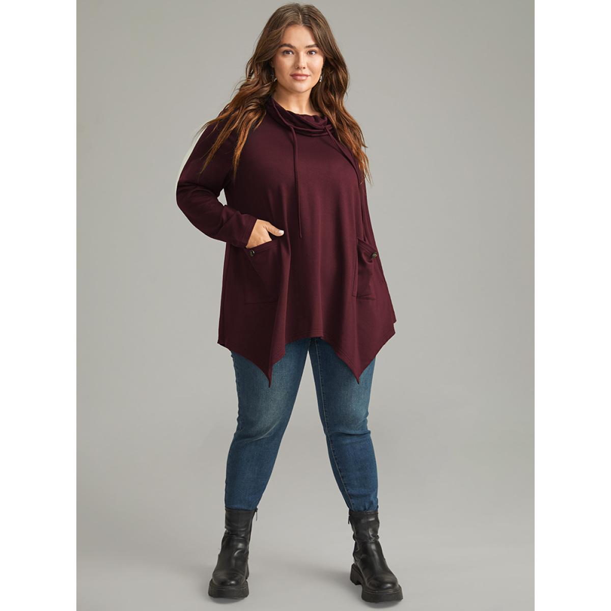 Plus Size Halloween Asymmetrical Pocket Lapel Collar Sweatshirt Women Burgundy Casual Plain Lapel Collar Festival-Halloween Sweatshirts BloomChic 10/M