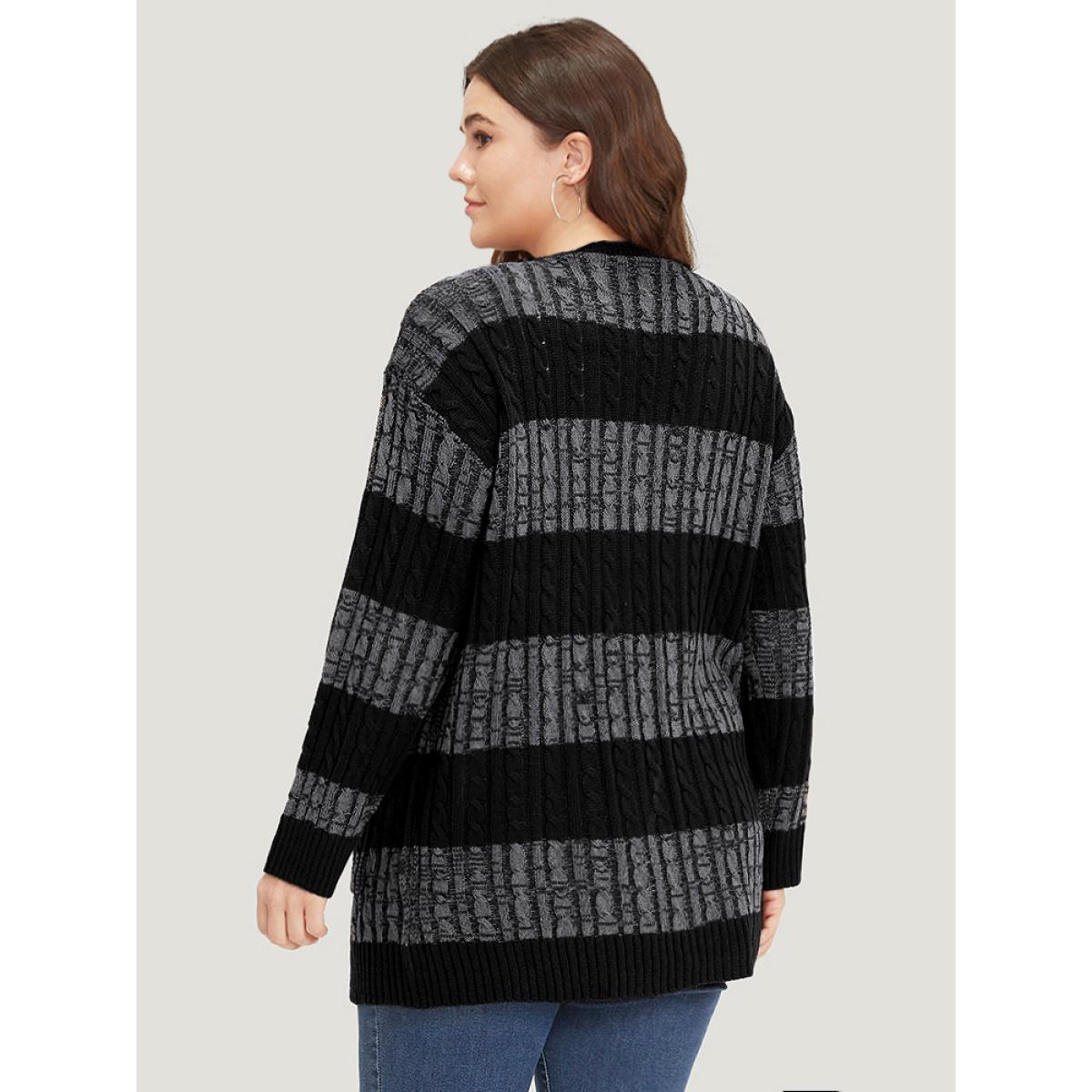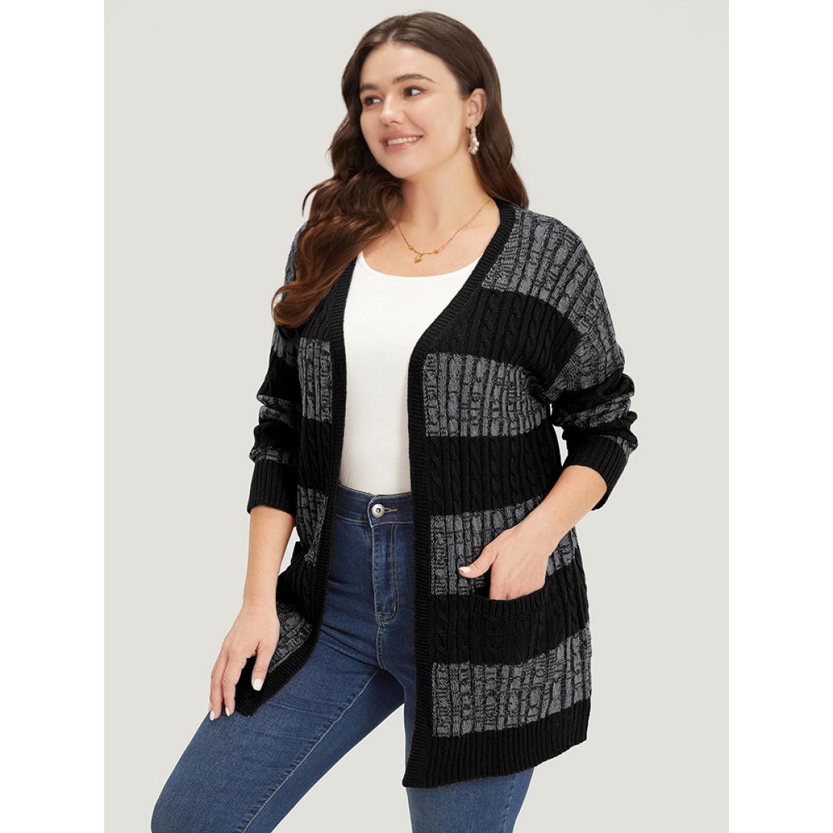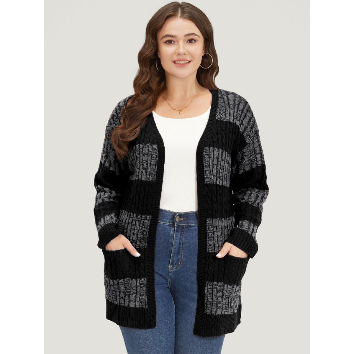 Plus Size Halloween Colorblock Cable Knit Patched Pocket Cardigan Gray Women Casual Loose Long Sleeve Festival-Halloween Cardigans BloomChic 12/L