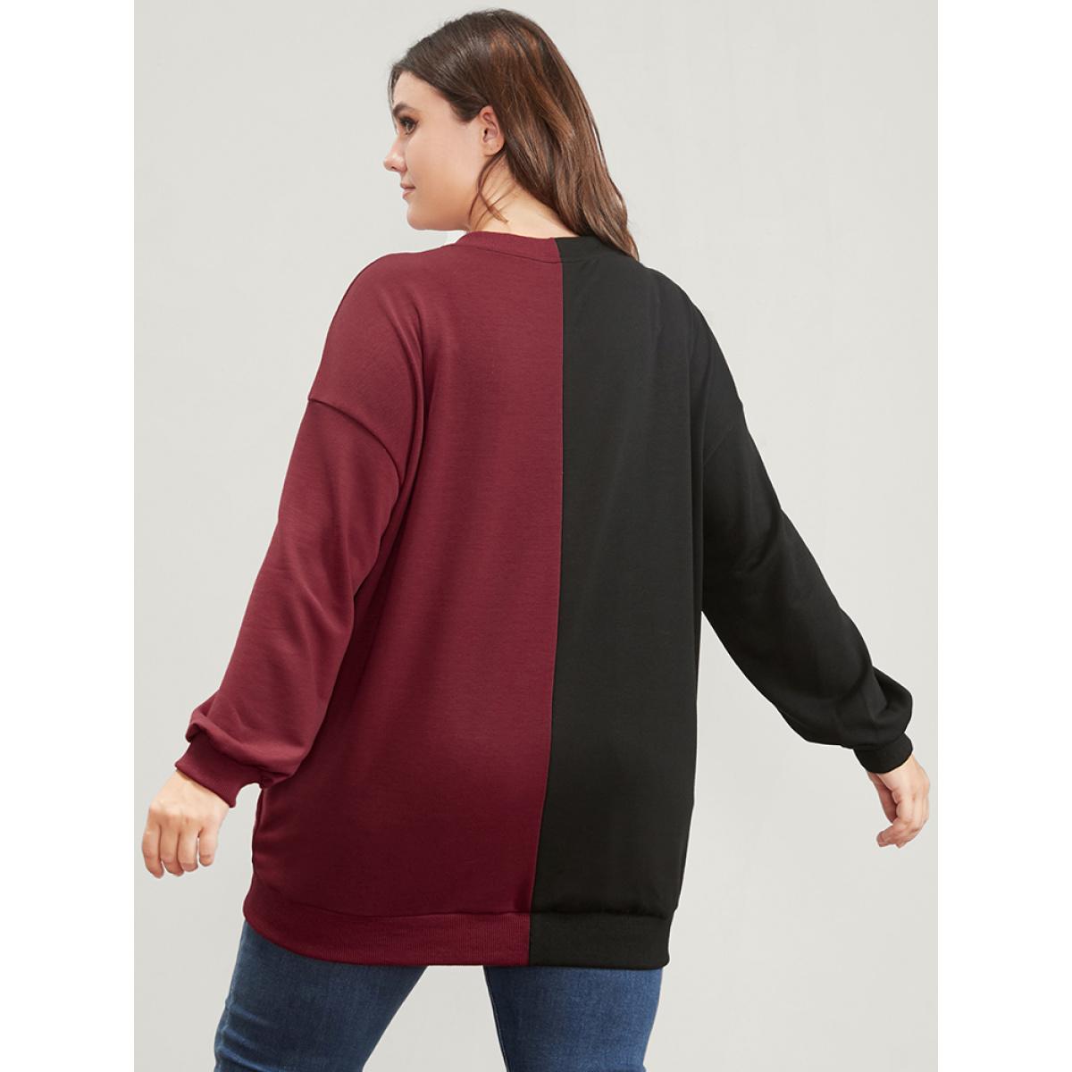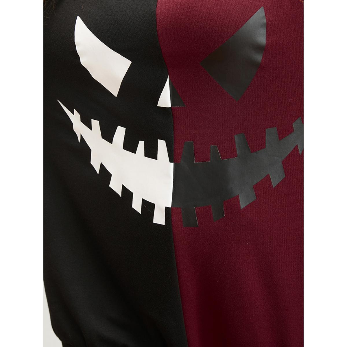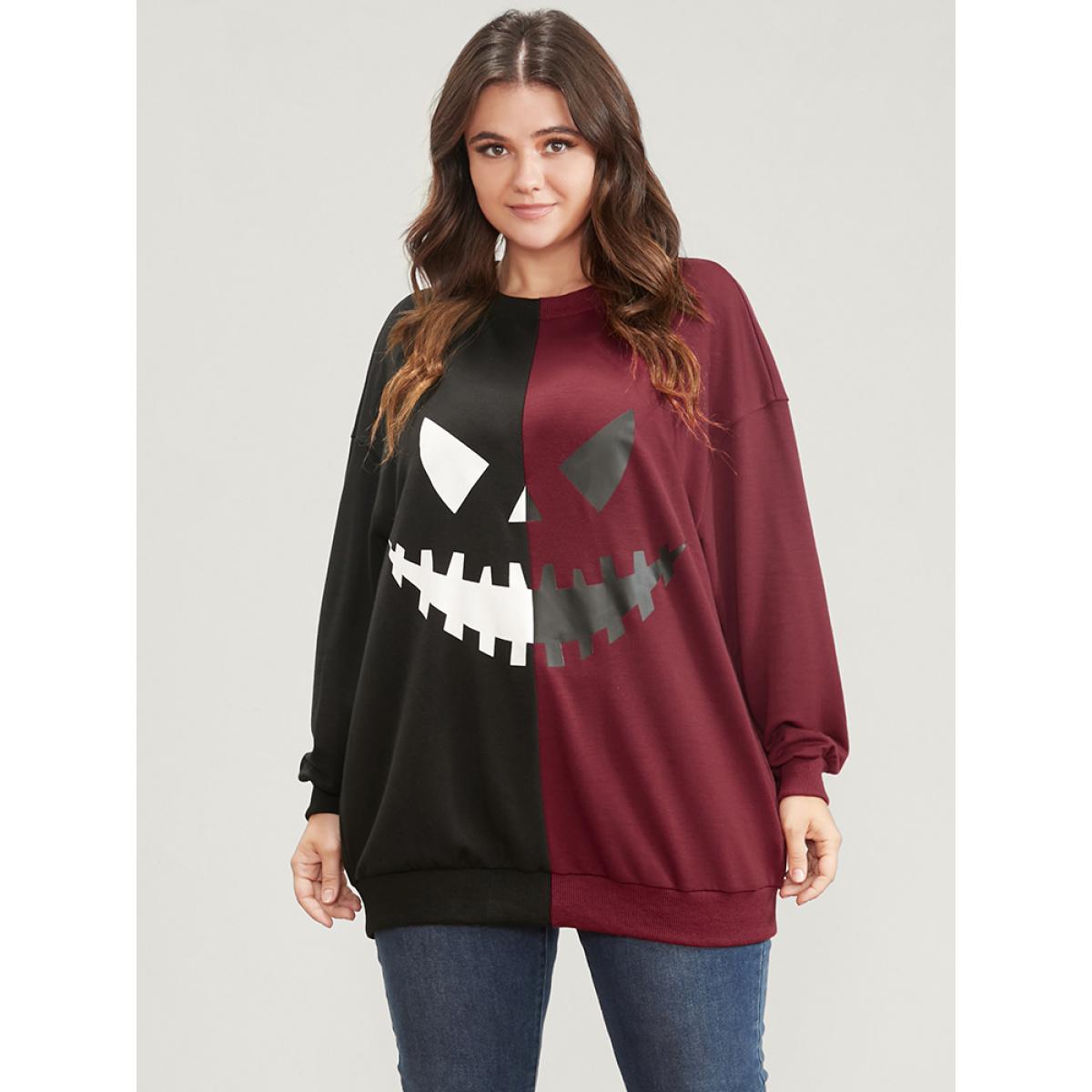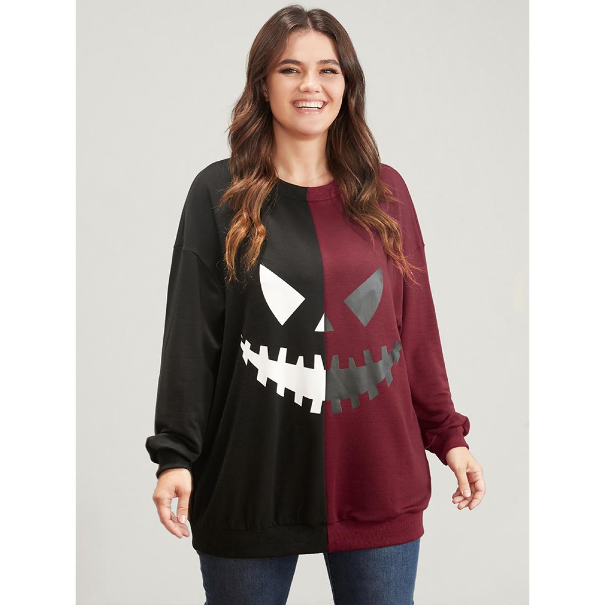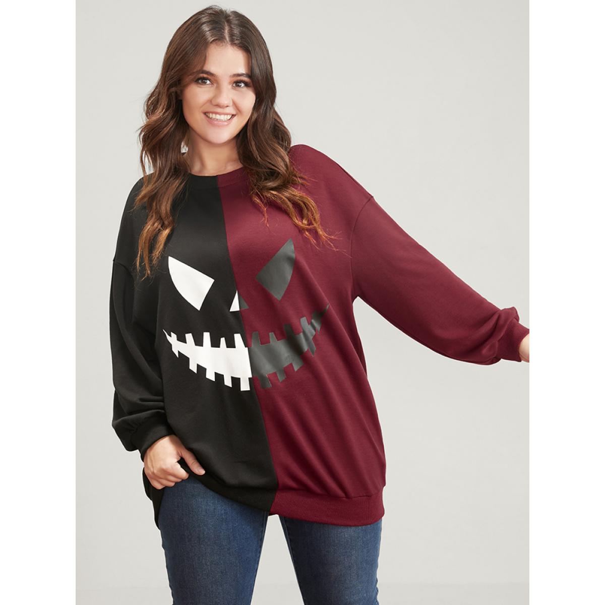 Plus Size Halloween Contrast Drop Shoulder Sweatshirt Women Scarlet Party Contrast Round Neck Festival-Halloween Sweatshirts BloomChic 18-20/2X