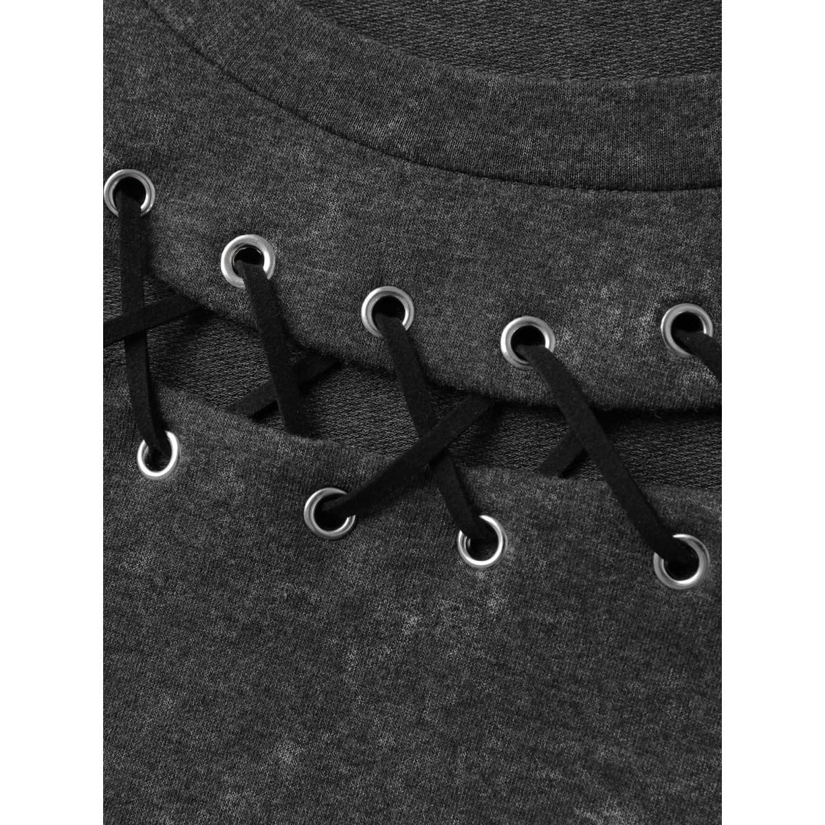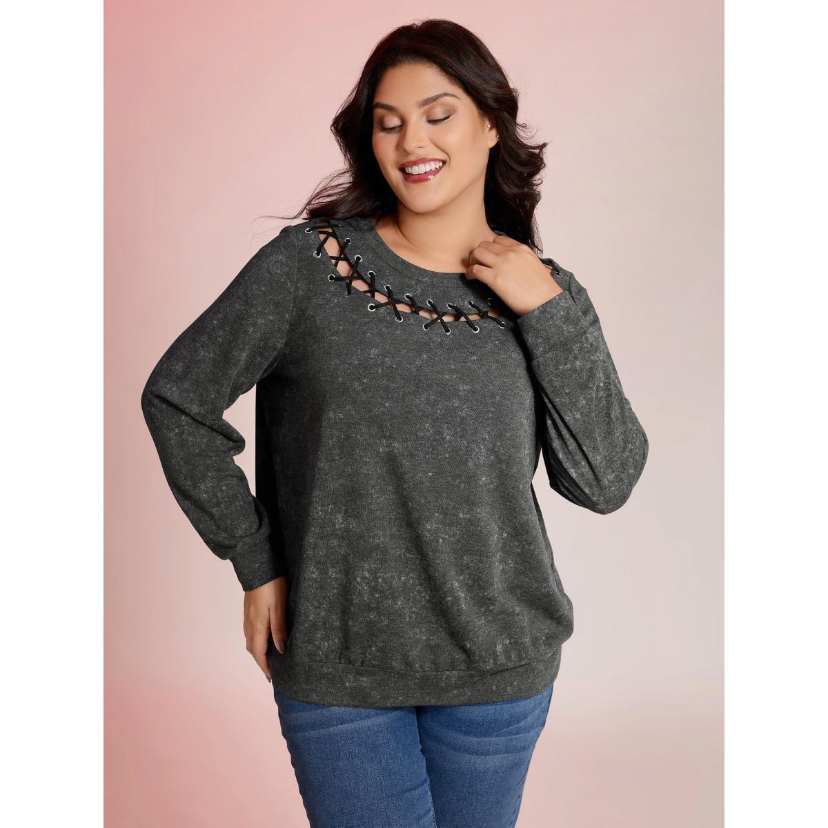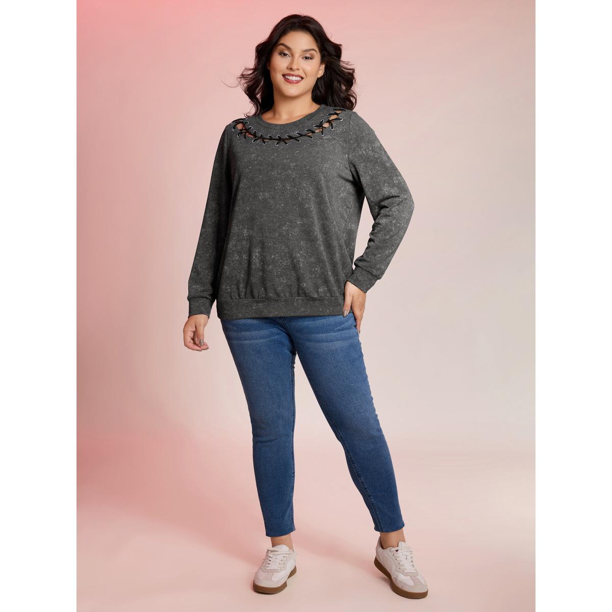 Plus Size Halloween Cut-Out Neck Snowflake Effect Sweatshirt Women DimGray Leisure Eyelet Round Neck Casual Sweatshirts BloomChic 14-16/1X
