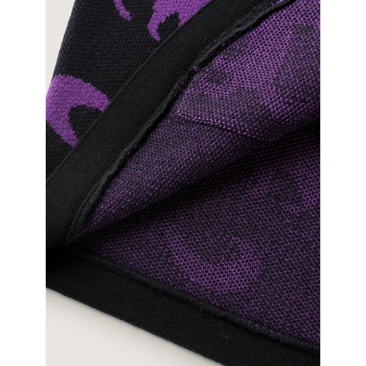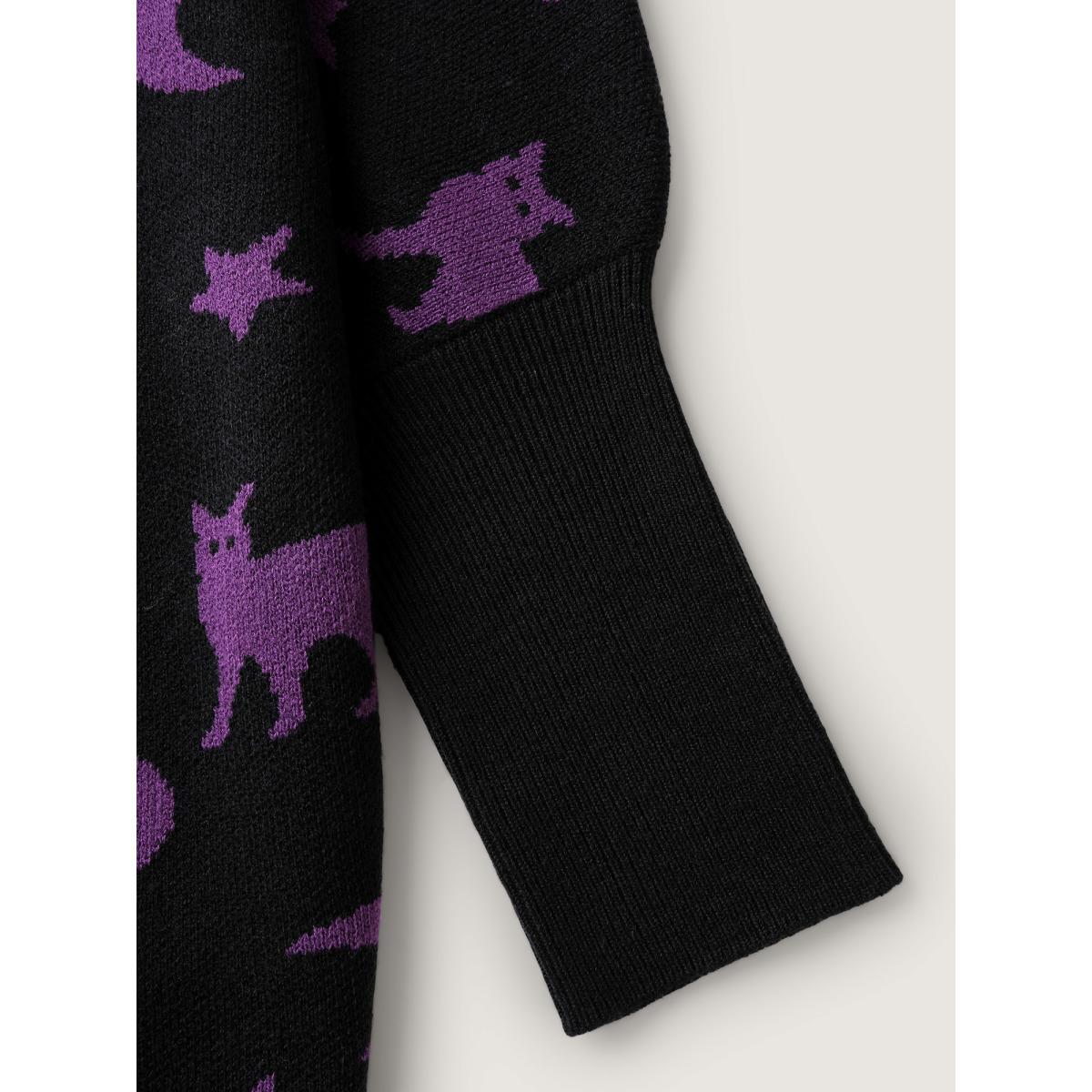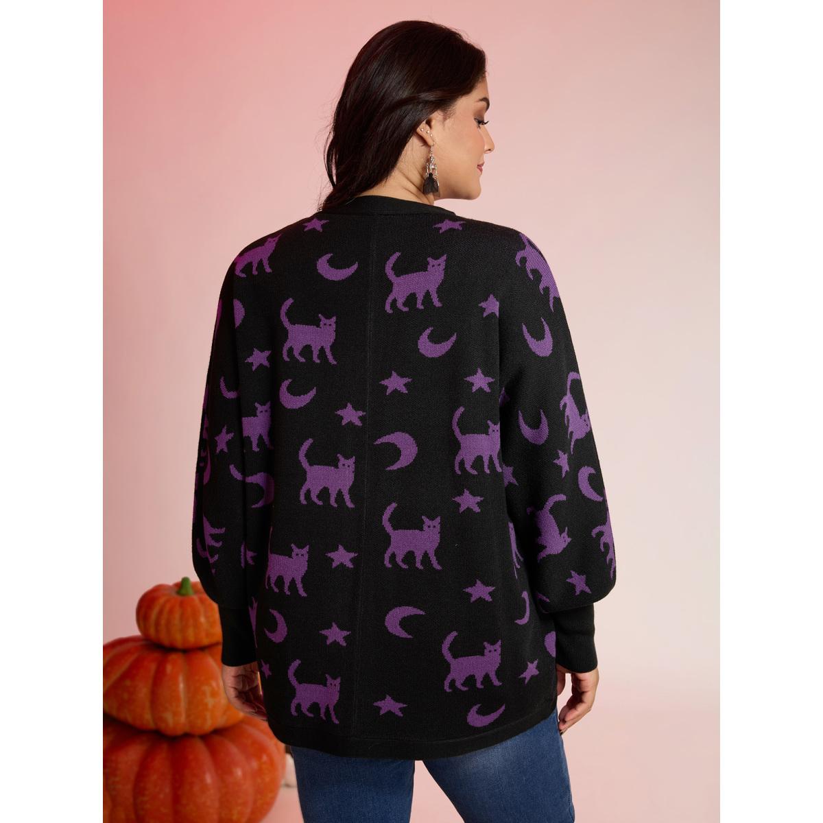 Plus Size Halloween Jacquard Print Pockets Knit Cardigan Black Women Playful Loose Long Sleeve Casual Cardigans BloomChic 30/6X
