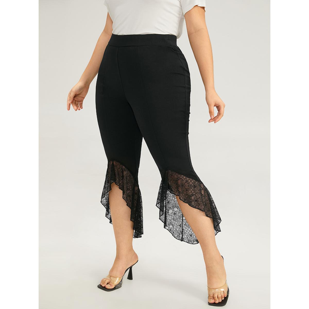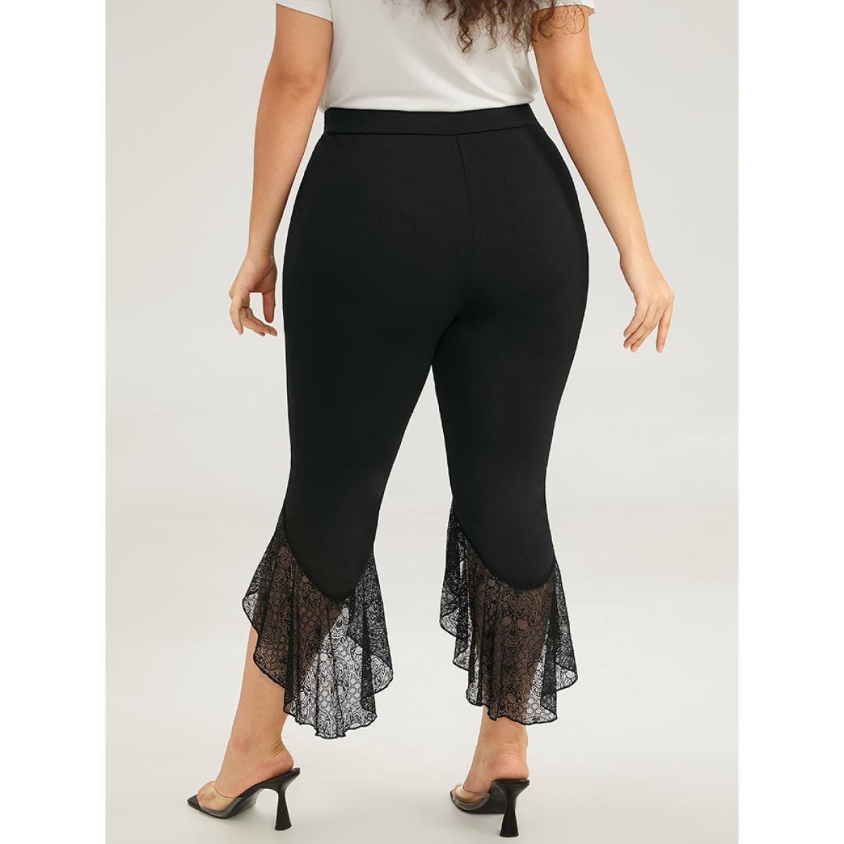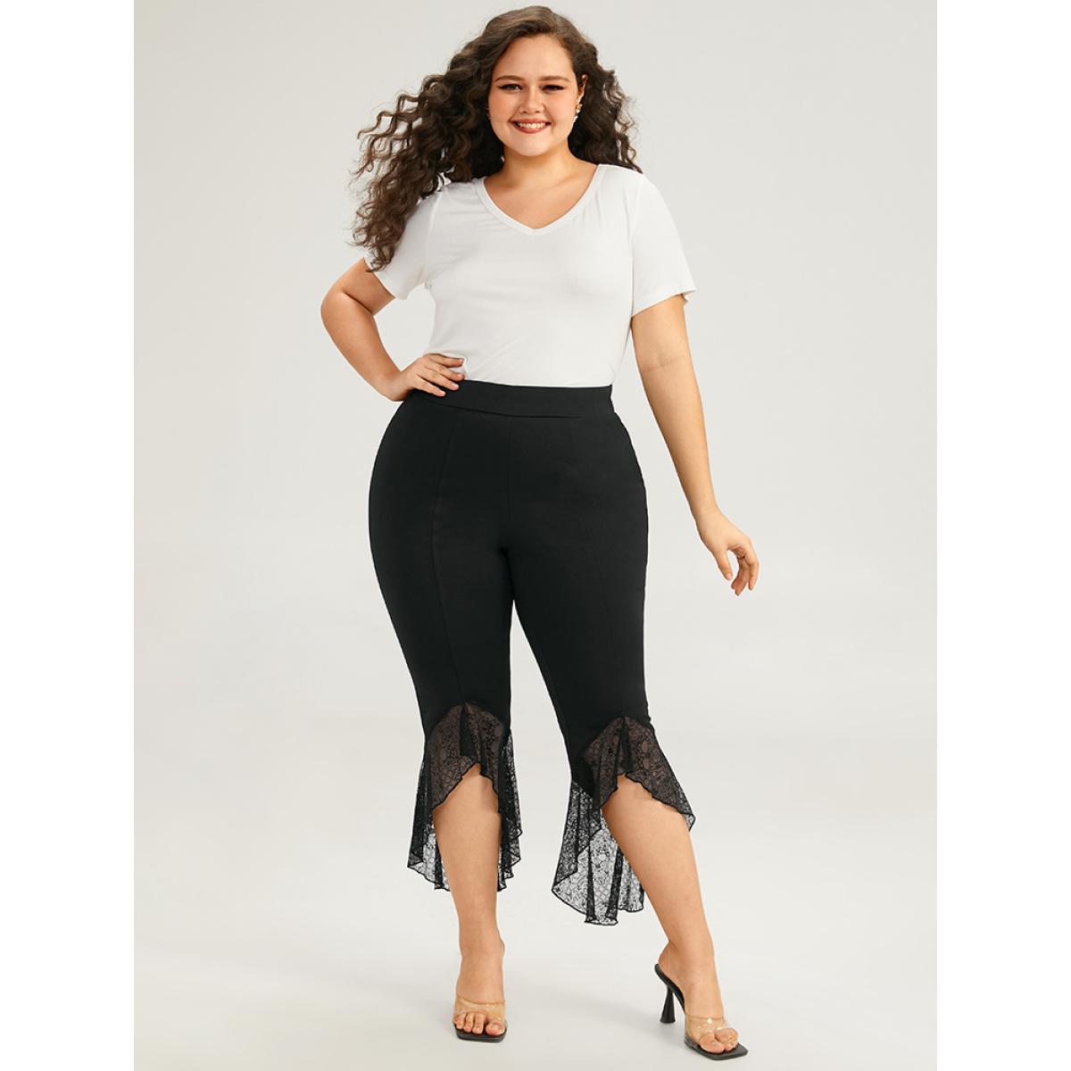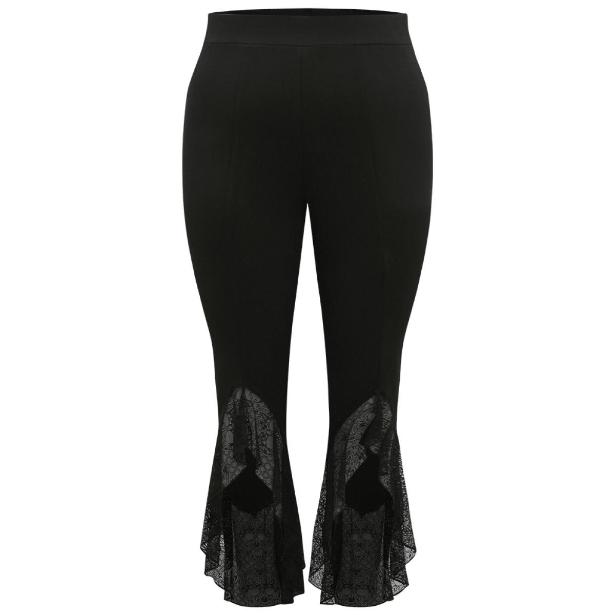 Plus Size Halloween Lace Patchwork Arc Hem Bootcut Pants Women Black Elegant Bootcut High Rise Festival-Halloween Pants BloomChic 26/4X