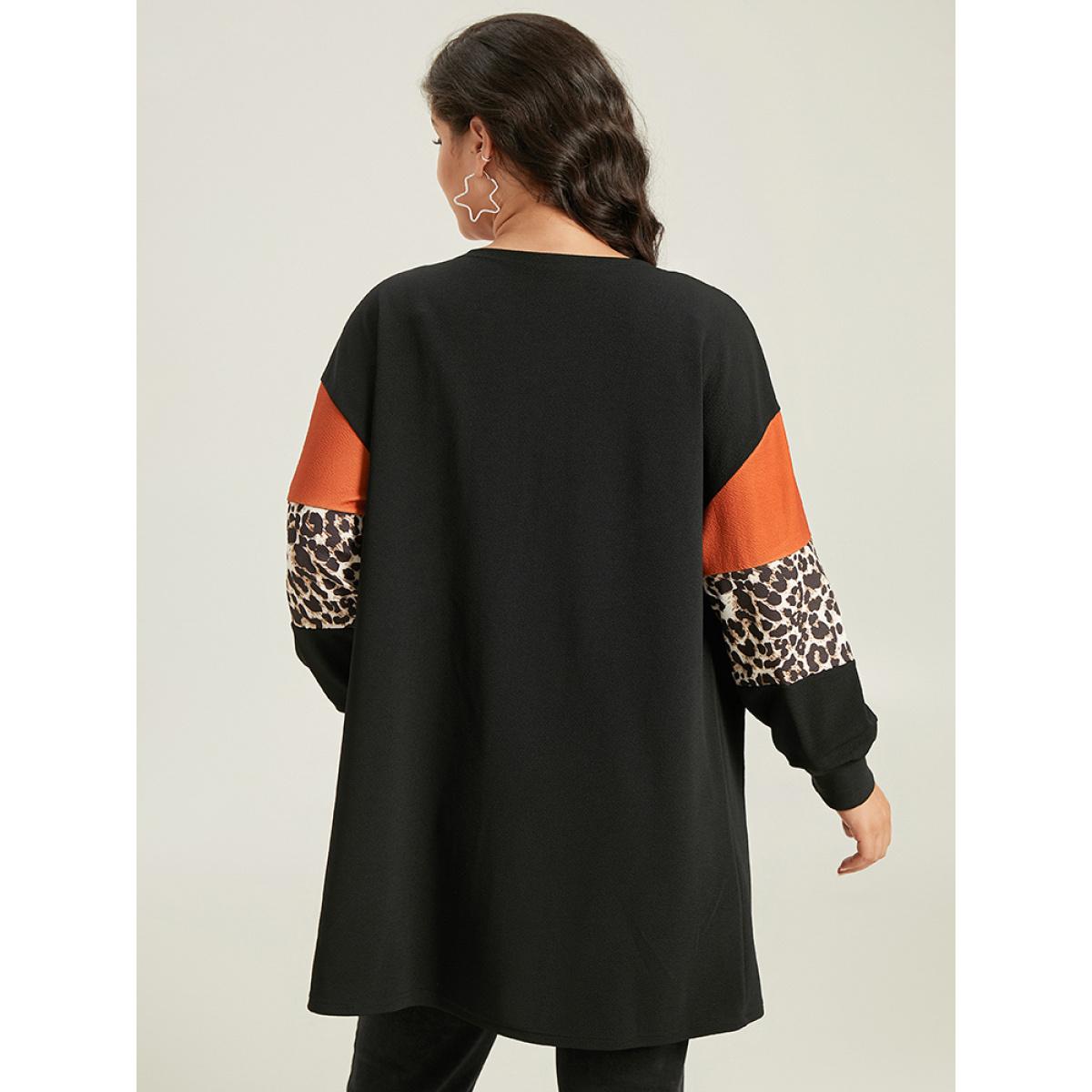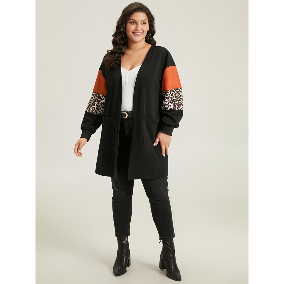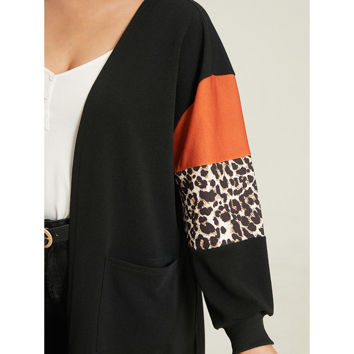 Plus Size Halloween Leopard Patchwork Rib Knit Patched Pocket Kimono Women Multicolor Casual Elastic cuffs Pocket Dailywear Kimonos BloomChic 26/4X