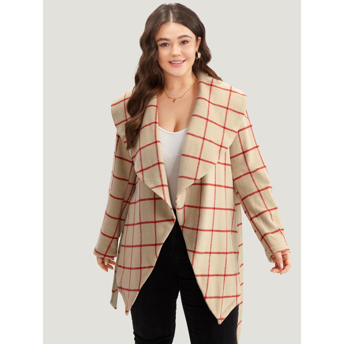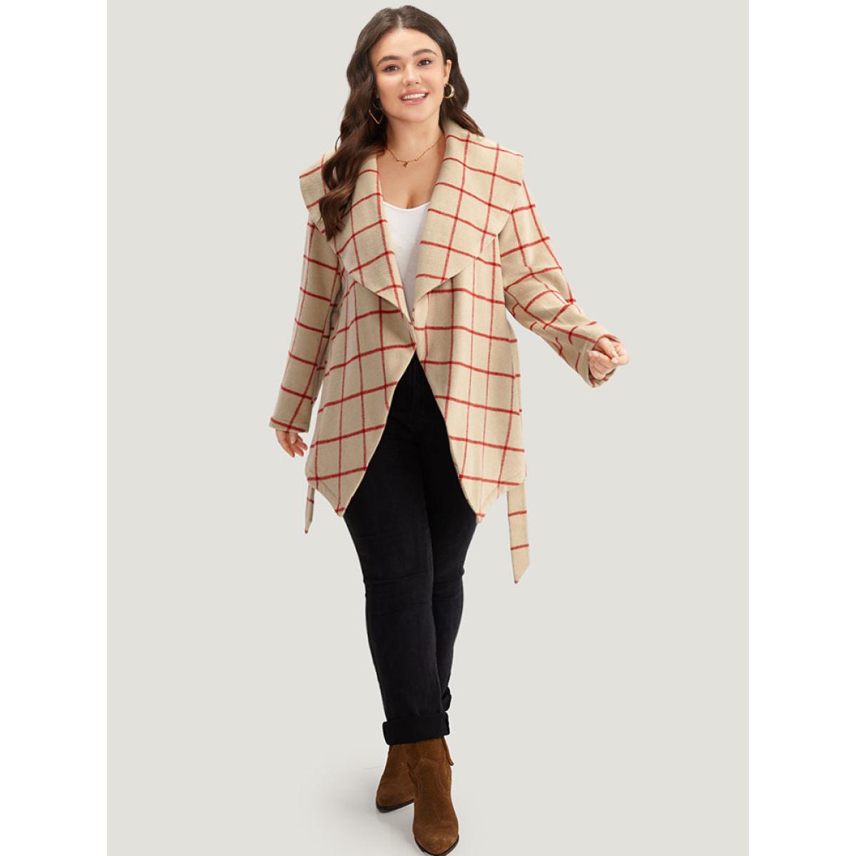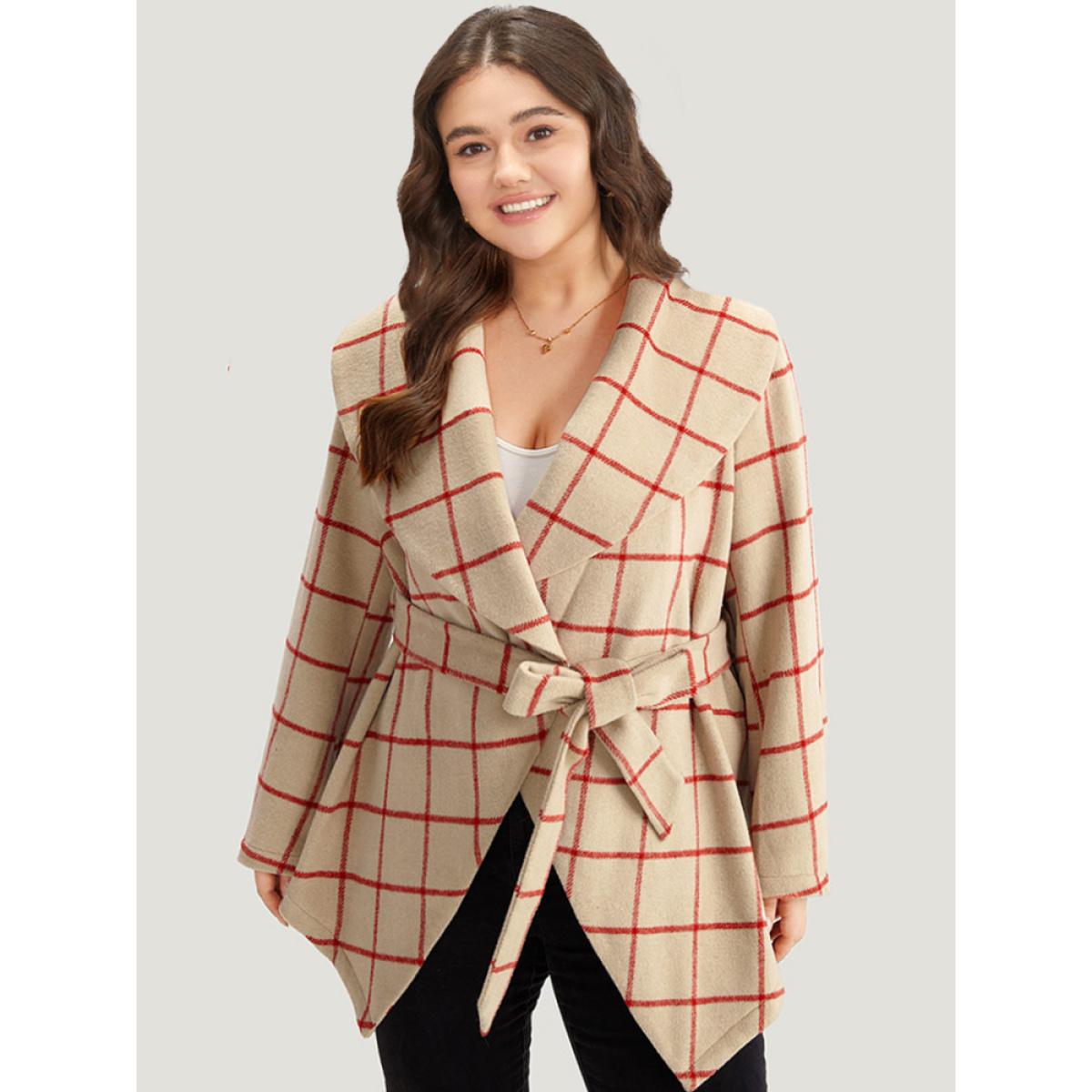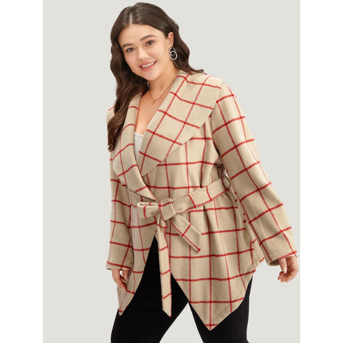 Plus Size Halloween Plaid Belted Asymmetrical Hem Lapel Collar Coat Women Red Casual Belted Ladies Dailywear Winter Coats BloomChic 12/L