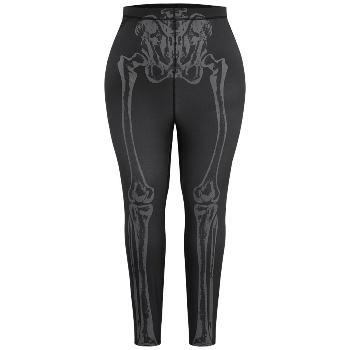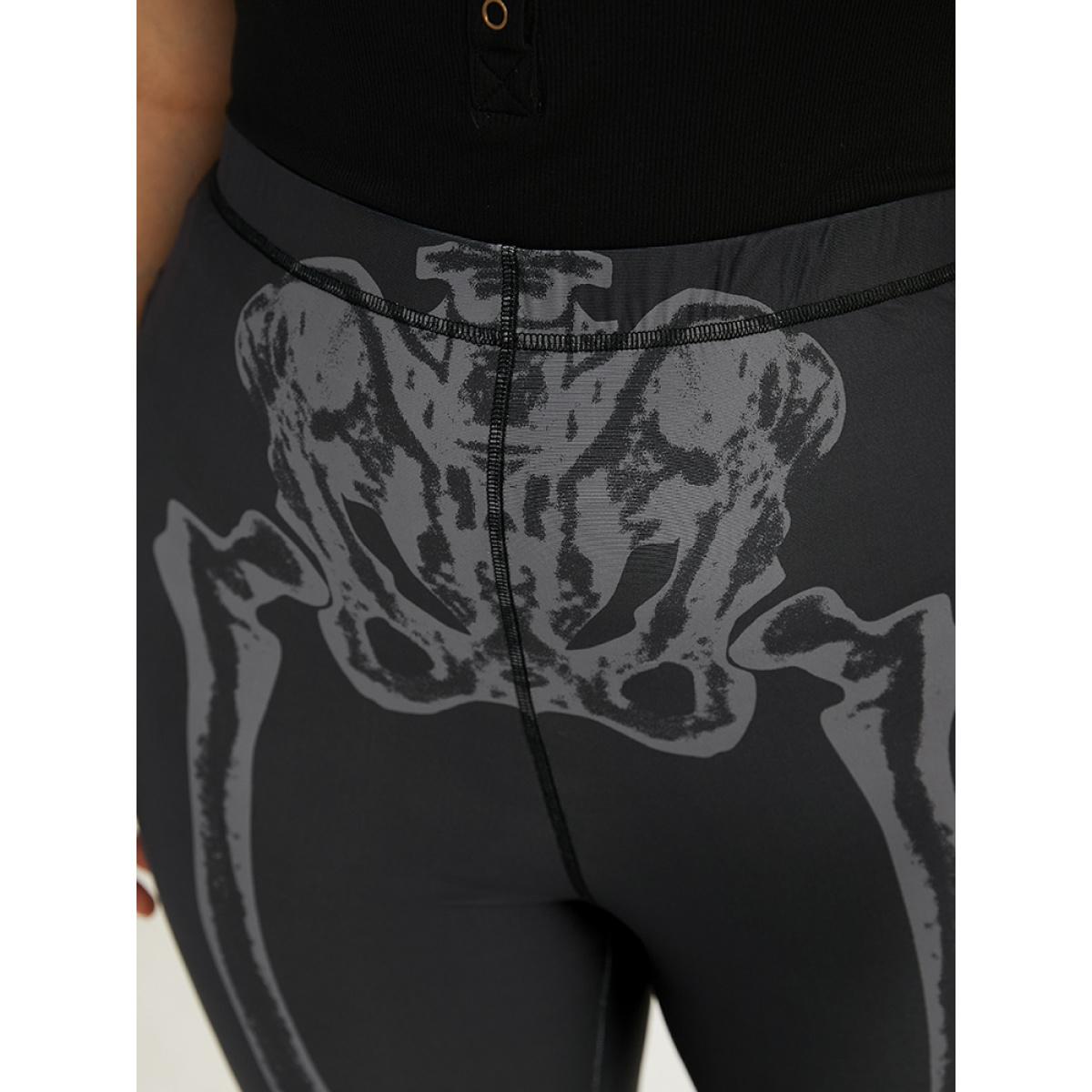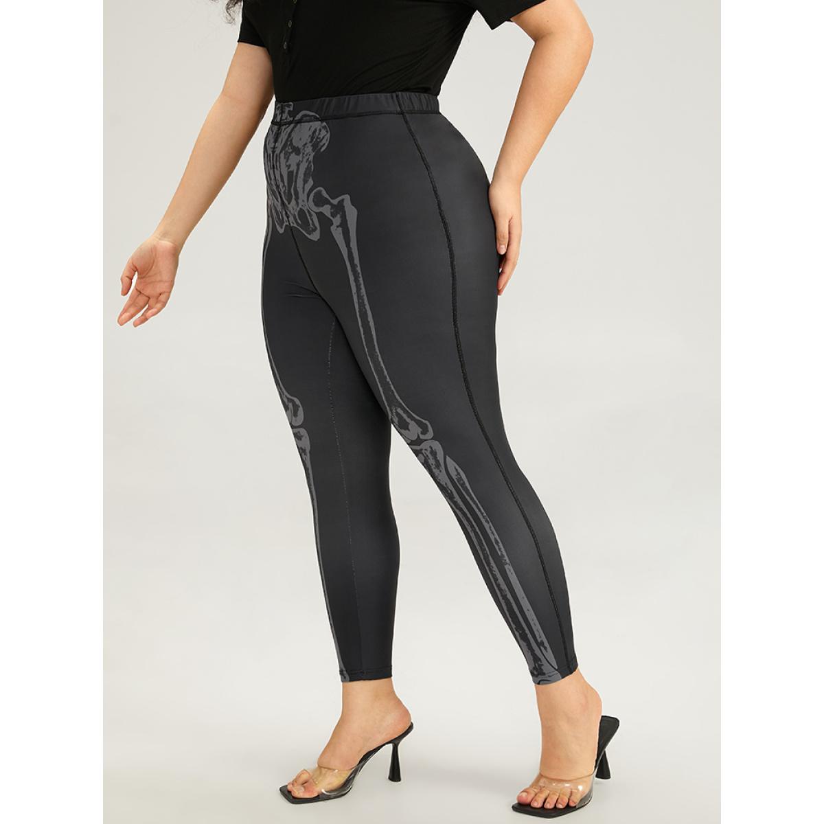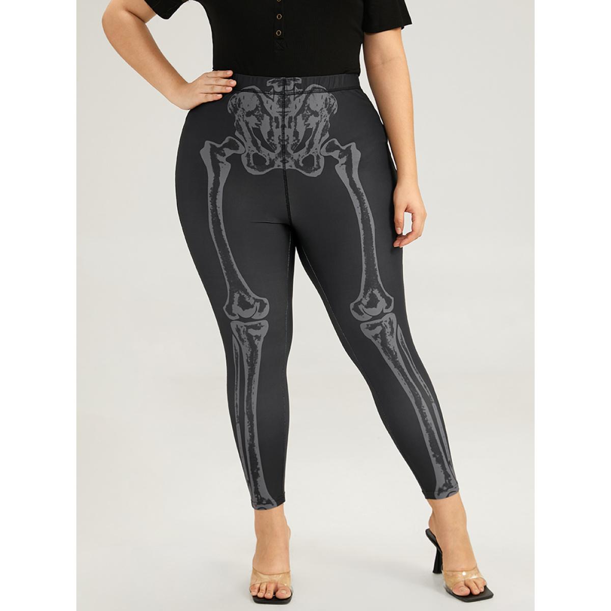 Plus Size Halloween Skull Print High Rise Skinny Leggings Women Black Elegant High stretch Skinny High Rise Festival-Halloween Leggings BloomChic 28/5X