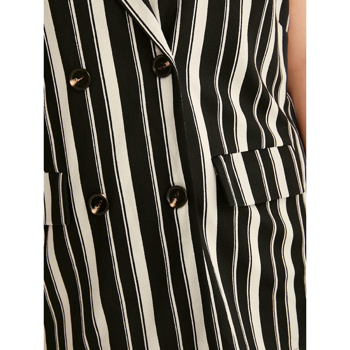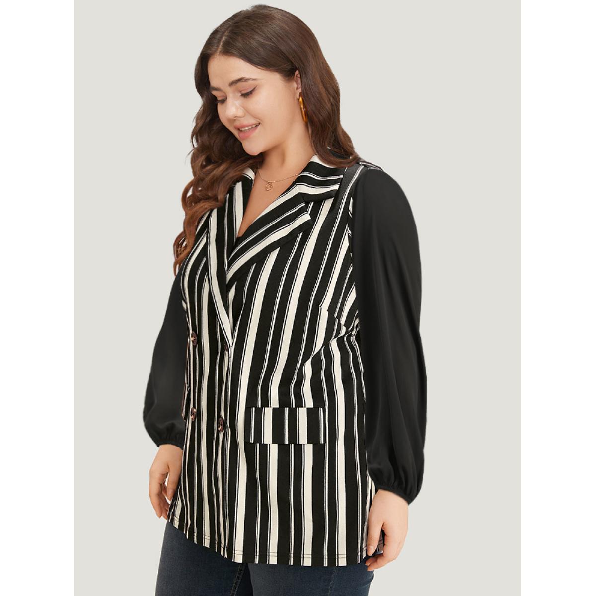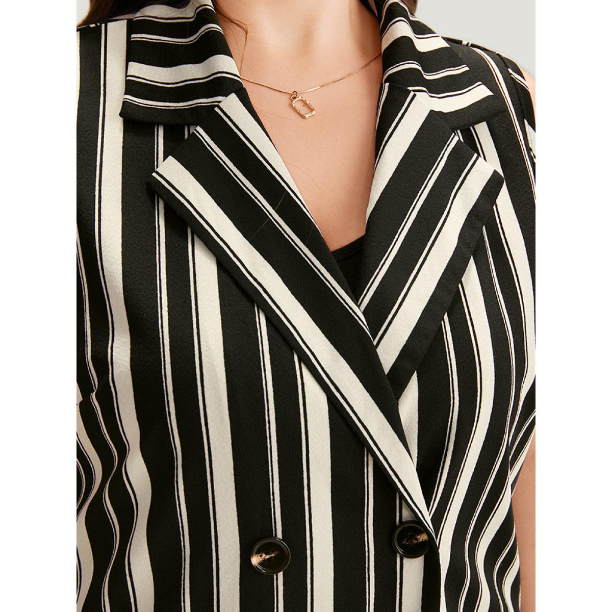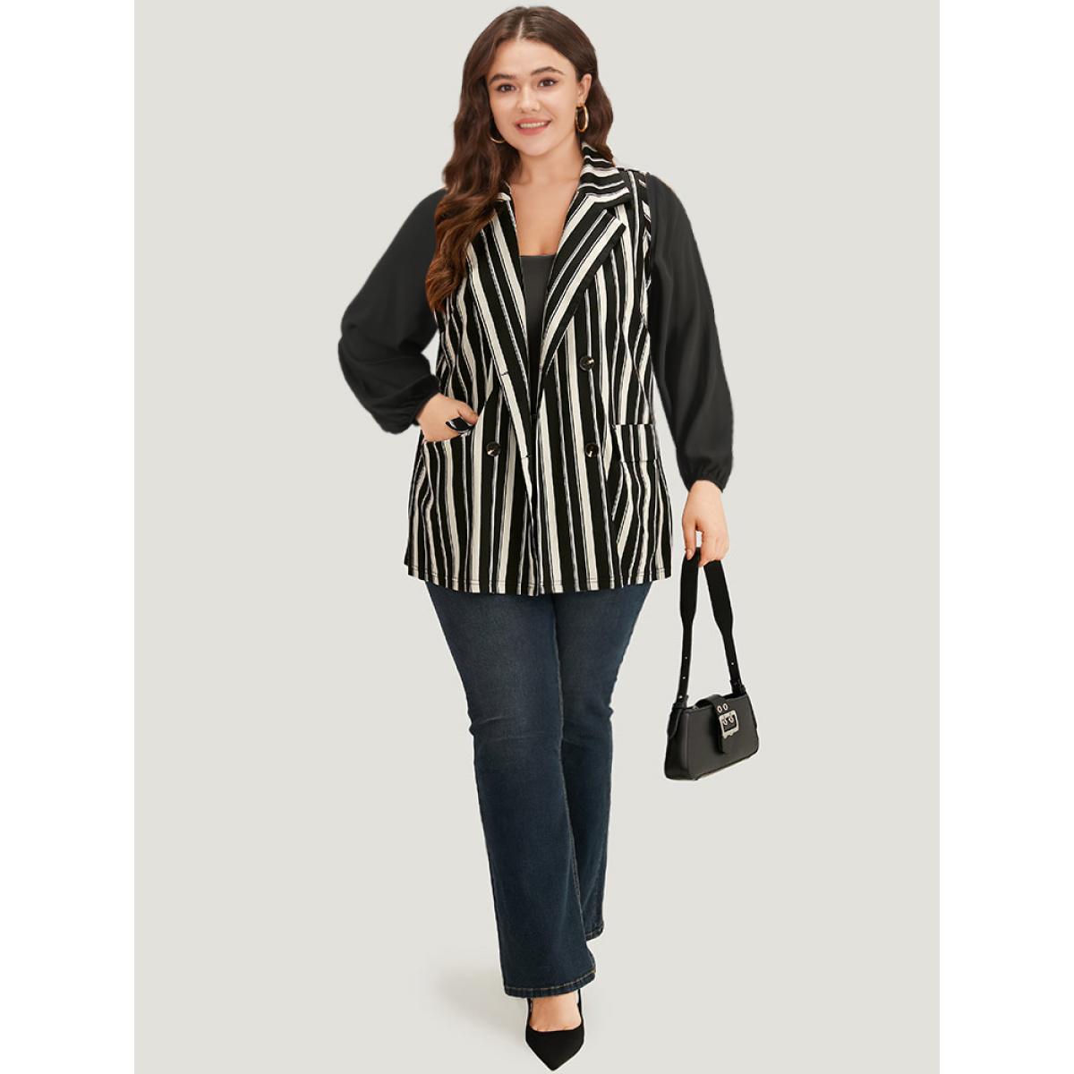 Plus Size Halloween Striped Pocket Double Breasted Lapel Collar Sleeveless Blazer Black Women Office Striped Contrast Sleeveless Sleeveless Lapel Collar 26/4X Pocket Office Blazers BloomChic