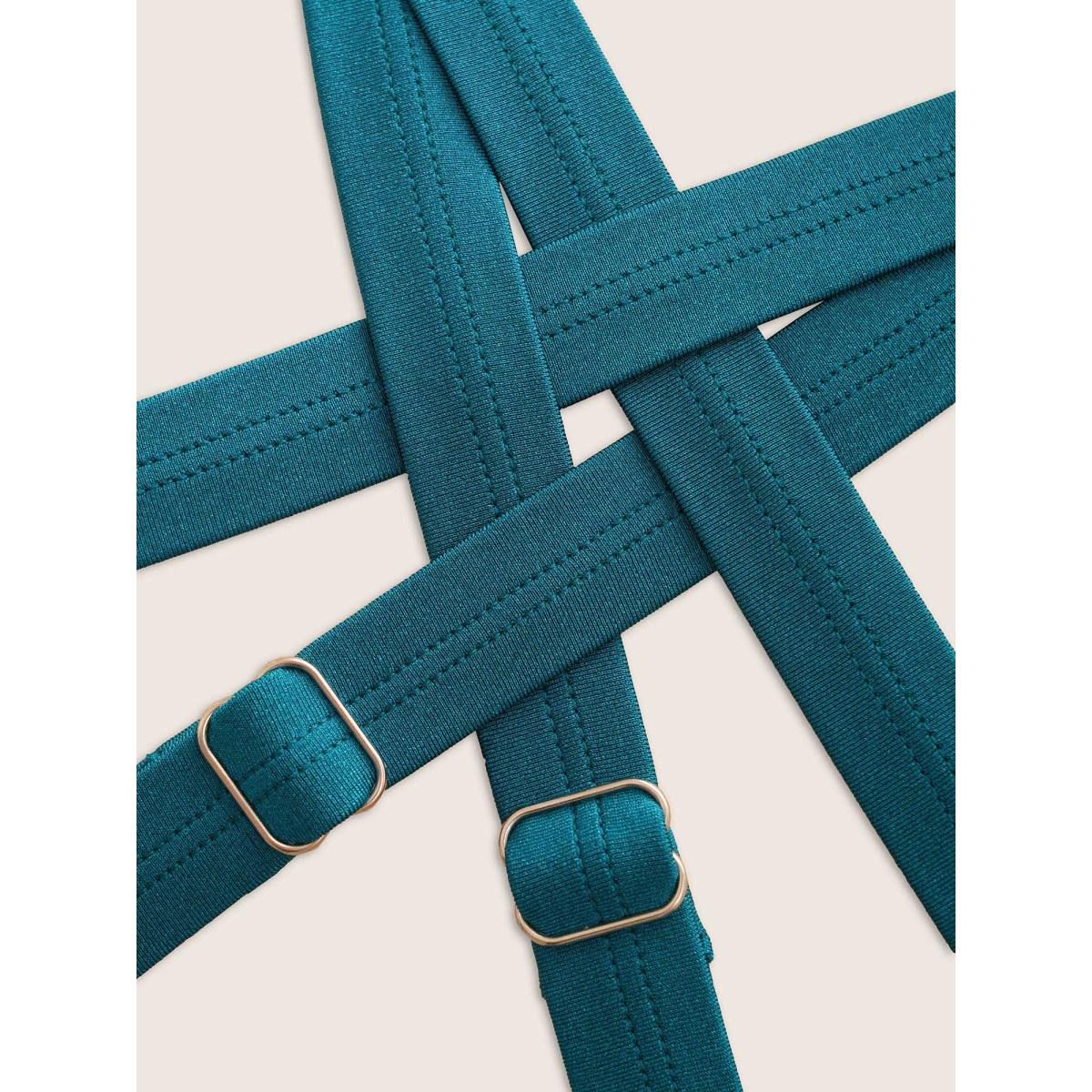 Plus Size Halter Back Crisscross Pleated Swim Dress Women's Swimwear Cyan Beach Bodycon Halter neck High stretch Curve Swim Dresses BloomChic 22-24/3X