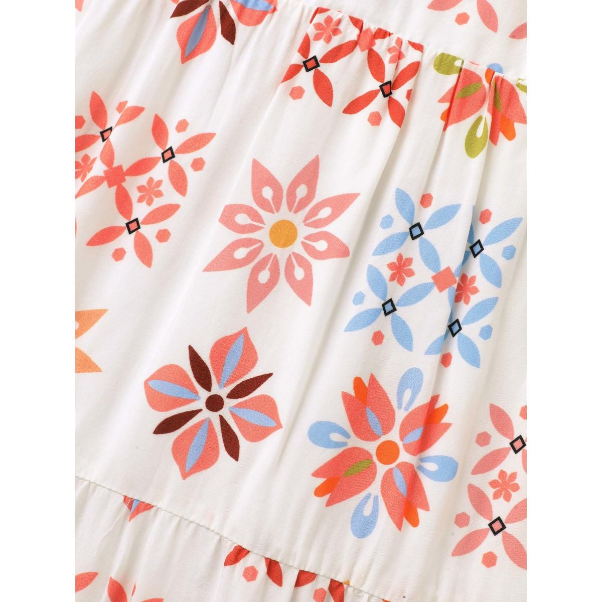 Plus Size Shirred Neck Floral Print Midi Dress Brightorange Women V-neck Cap Sleeve Curvy BloomChic 26/4X