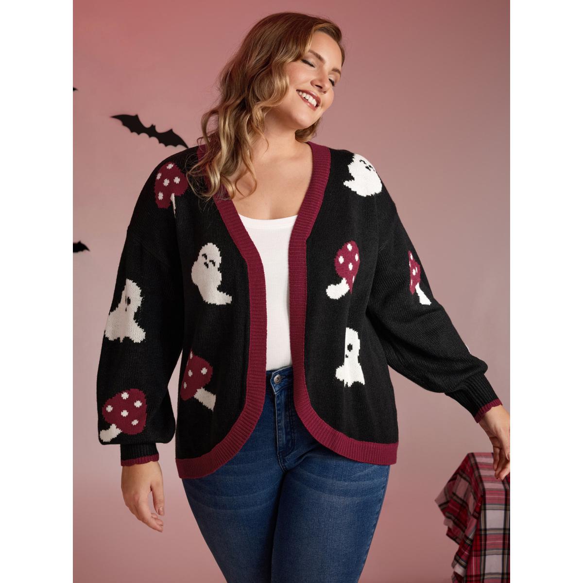 Plus Size Happy Ghost Curvy Hem Open-Front Cardigan Black Women Playful Loose Long Sleeve Casual Cardigans BloomChic 14-16/1X
