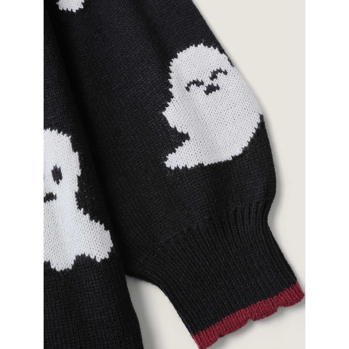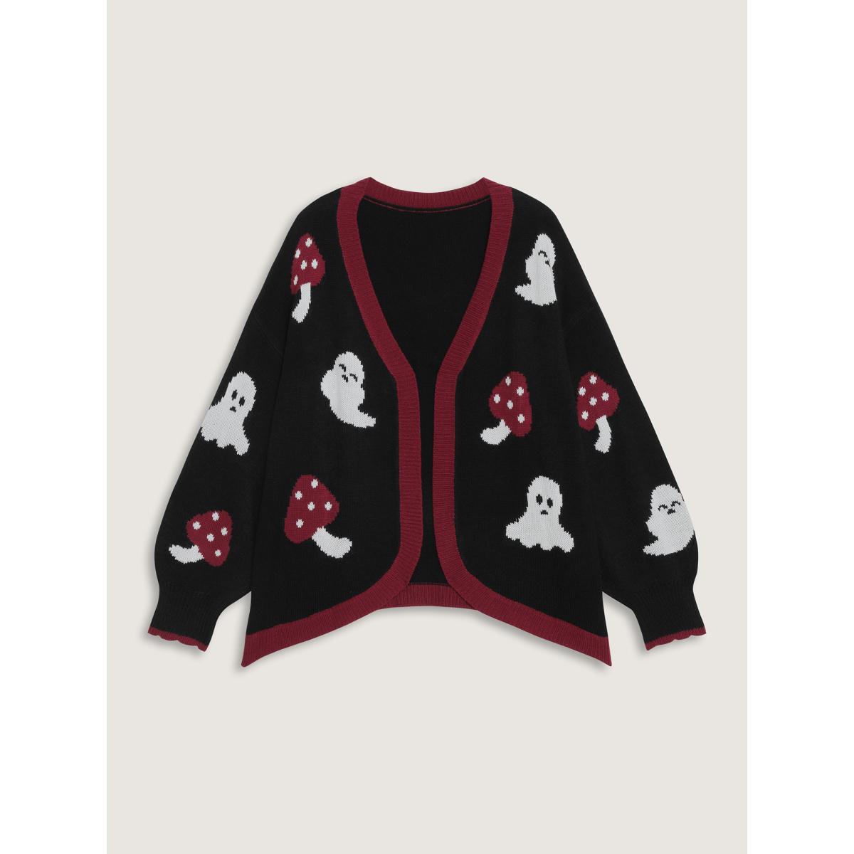 Plus Size Happy Ghost Jacquard Arc Cardigan Black Women Playful Loose Long Sleeve Casual Cardigans BloomChic 22-24/3X
