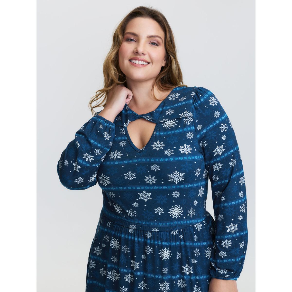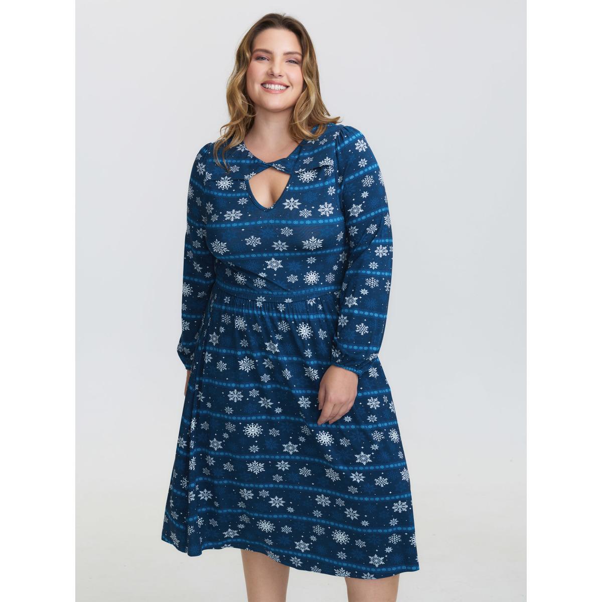 Plus Size Happy Holidays Neck Cut-Out Midi Dress DarkSlateGray Women Leisure Twist Knit Dresses Bloomchic 30/6X