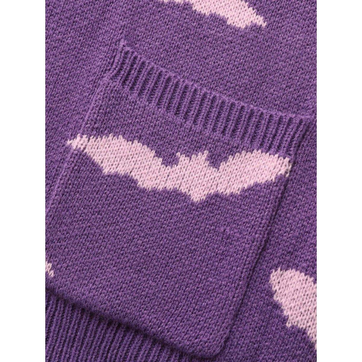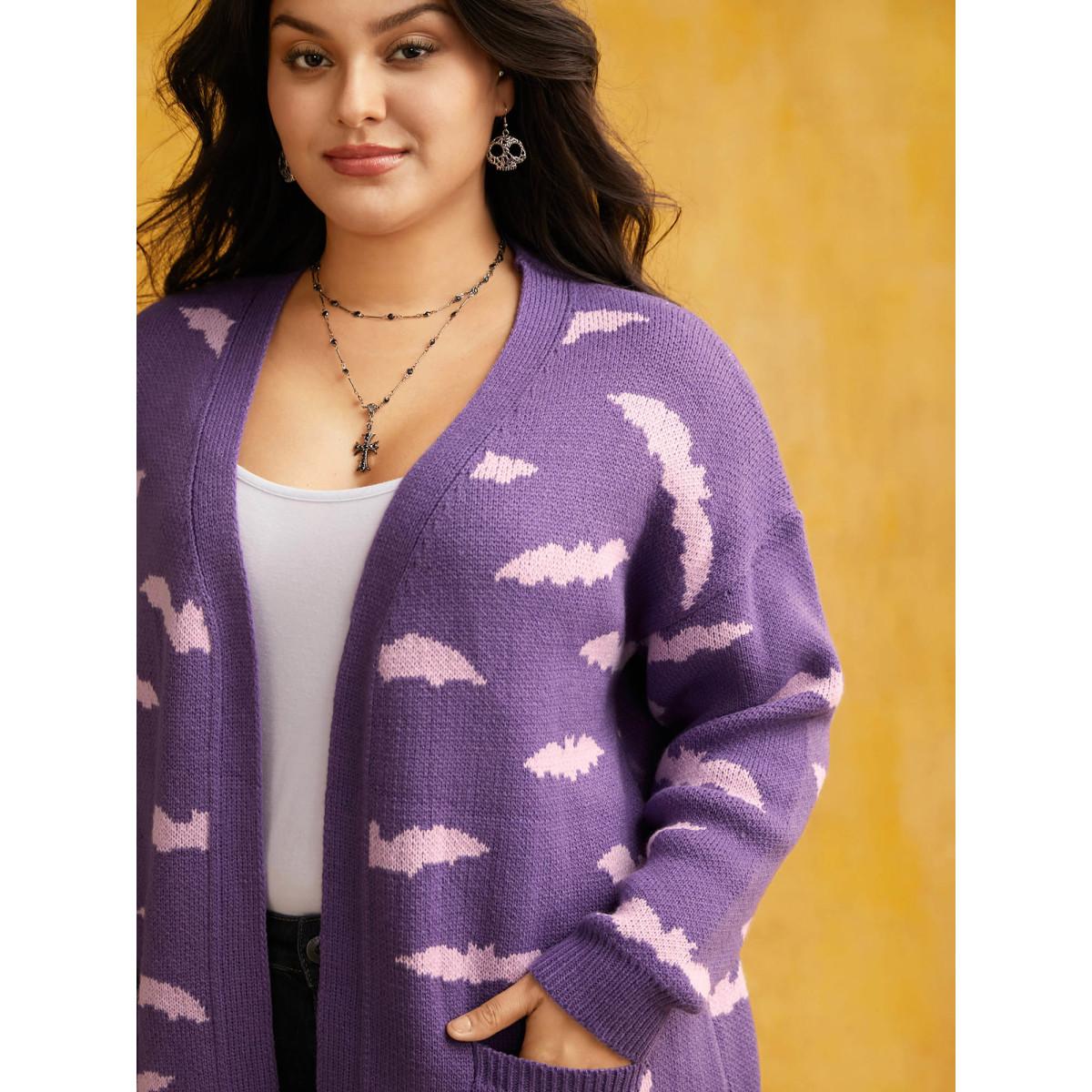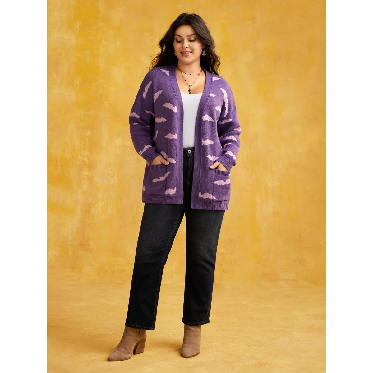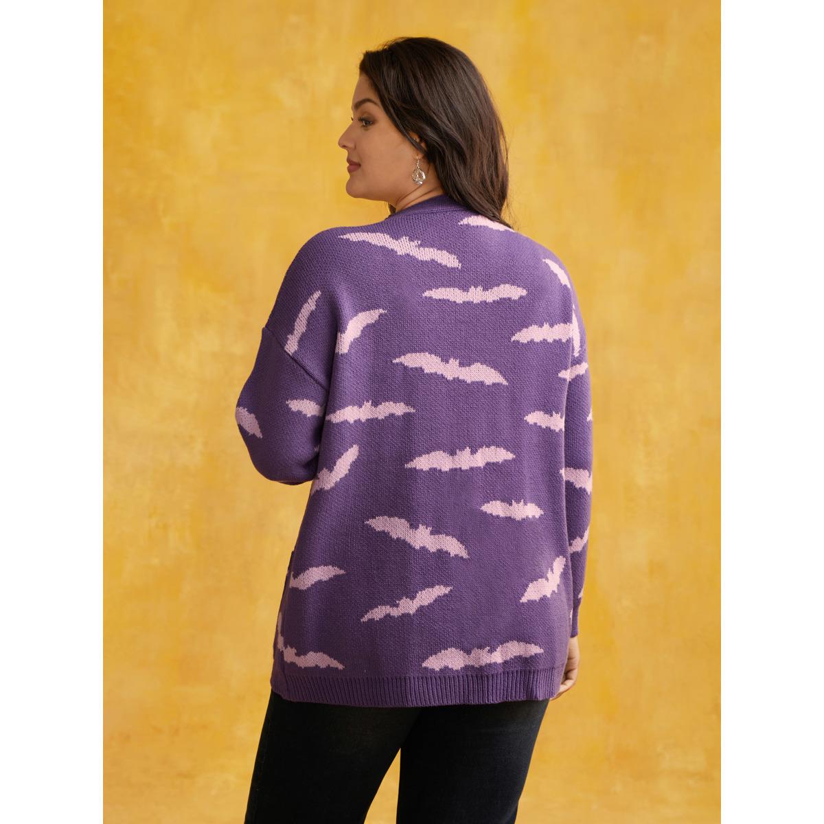Plus Size Haunted Bats Printed Jacquard Cardigan - For Halloween Lilac Women Casual Loose Long Sleeve Everyday Cardigans BloomChic 10/M