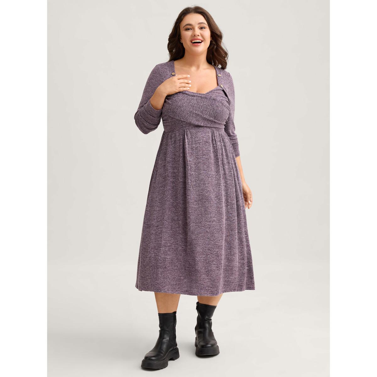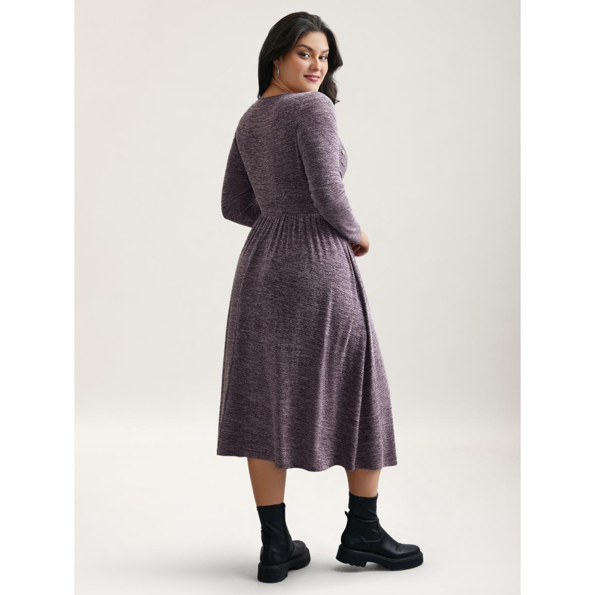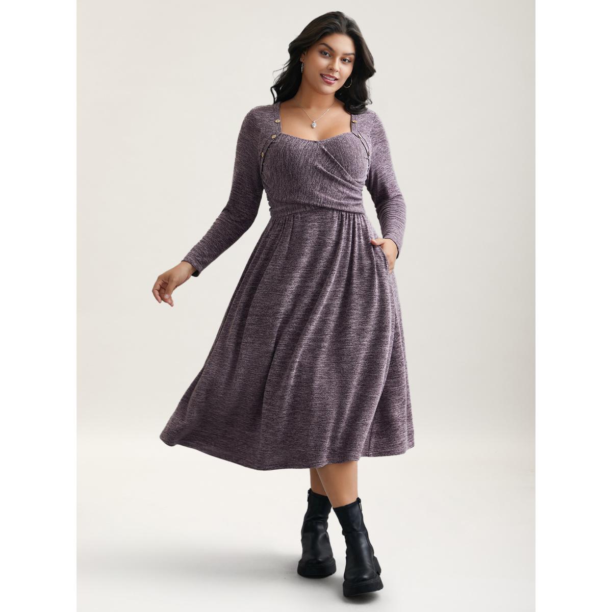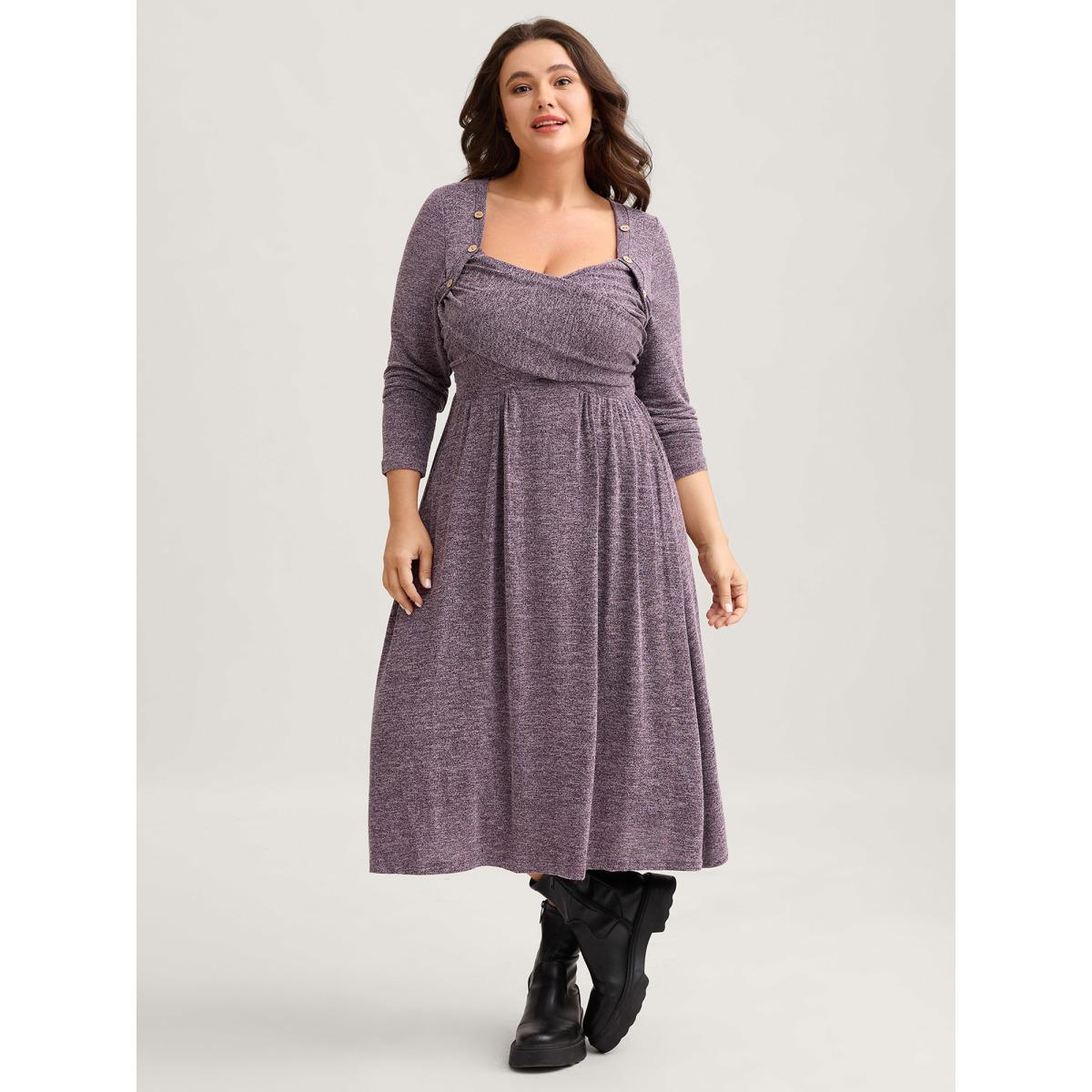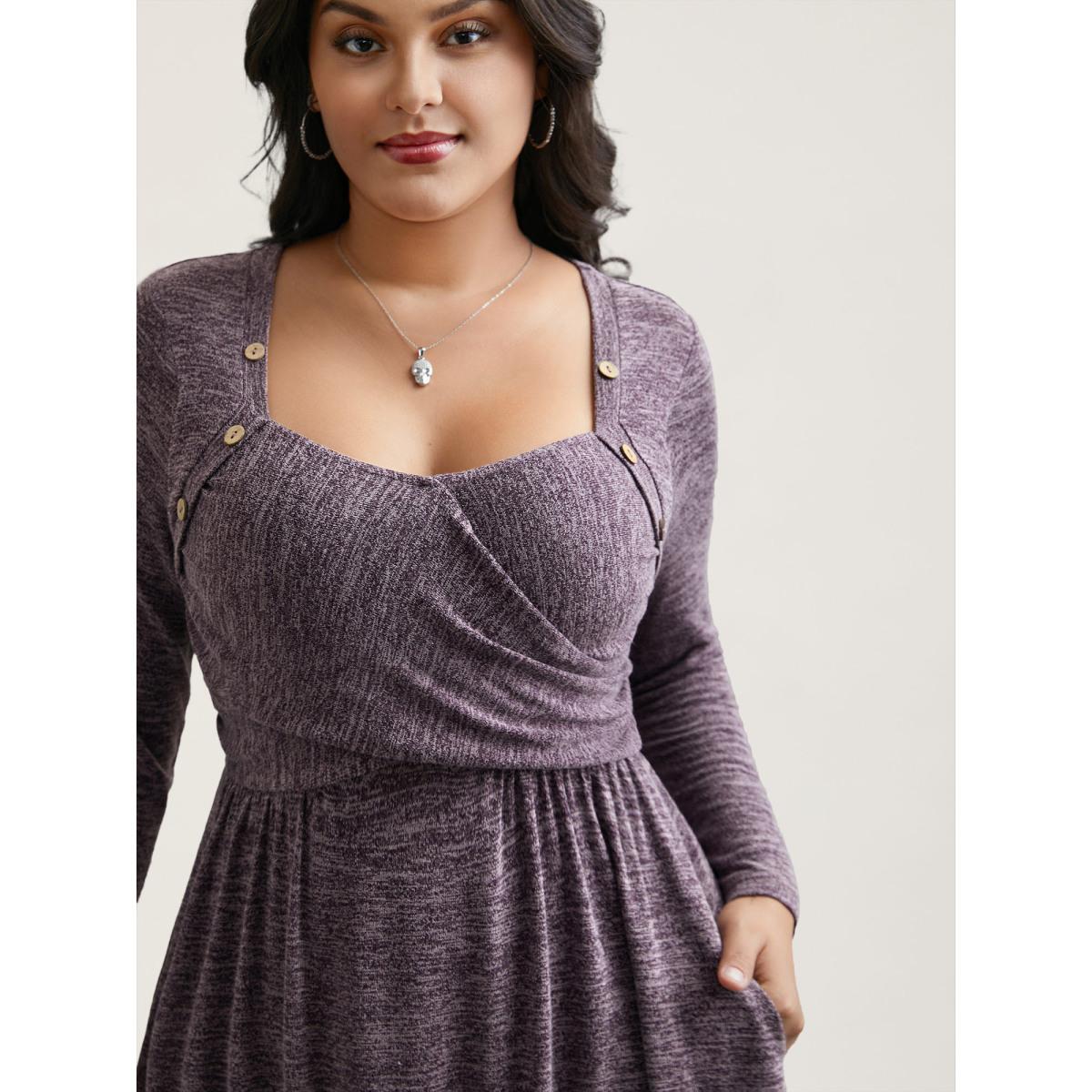 Plus Size Heart Neckline Button Detailing Crossover Fit Dress Mauve Women Casual Gathered Knit Dresses Bloomchic 14-16/1X