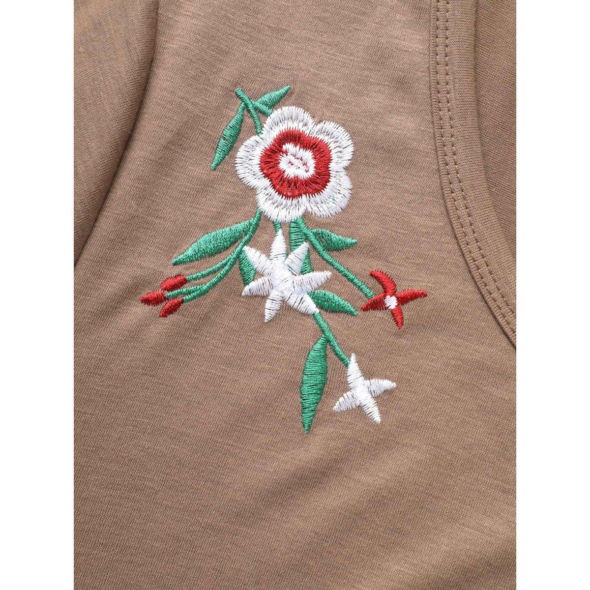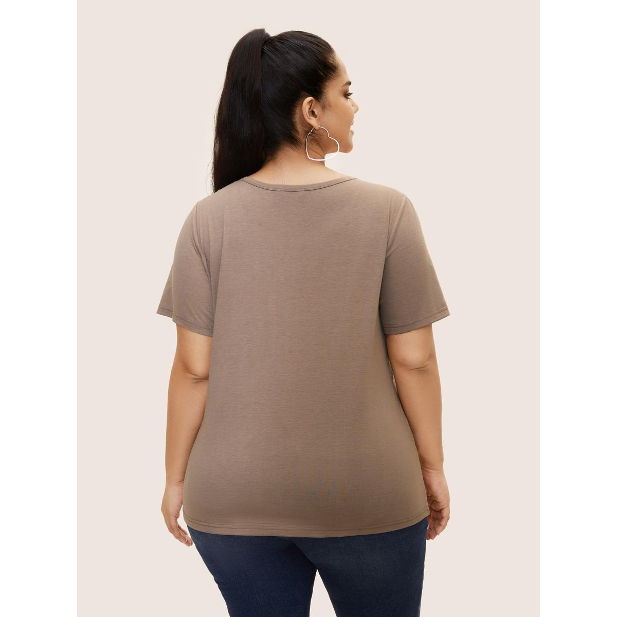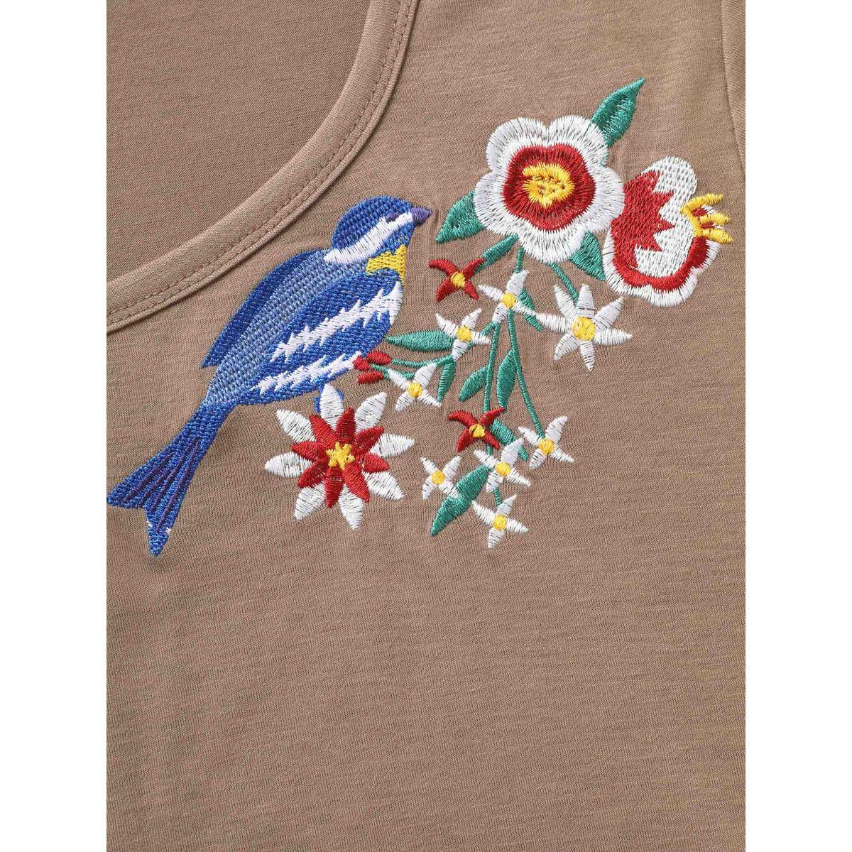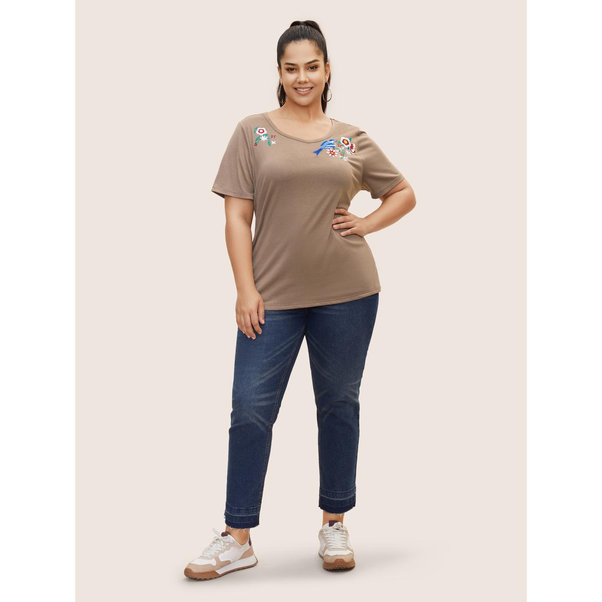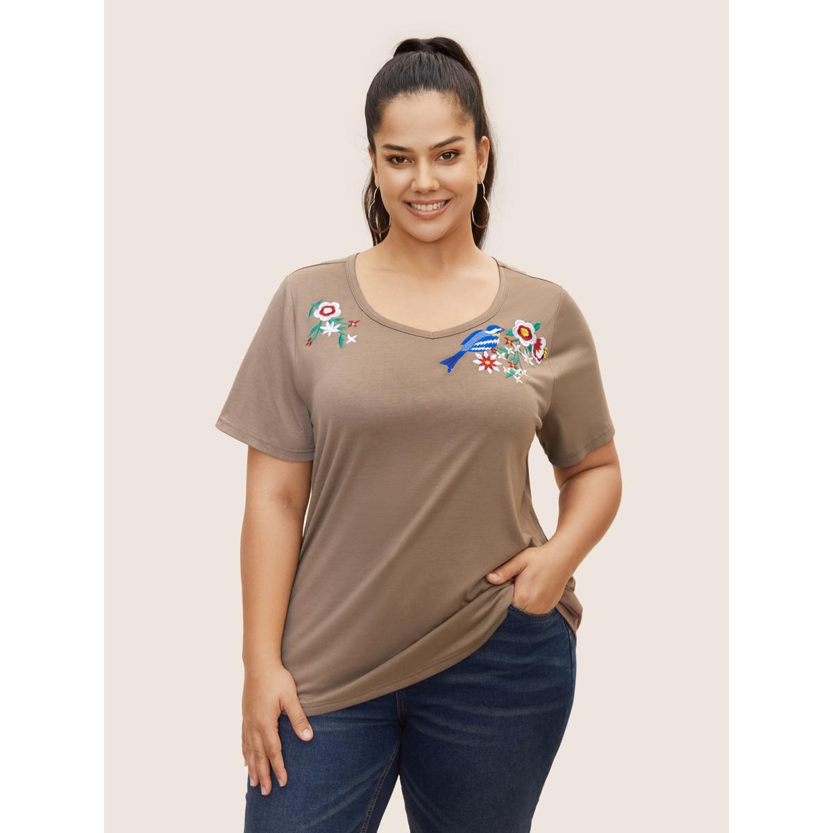 Plus Size Heart Neckline Natural Floral Embroidered T-shirt LightBrown Women Casual Contrast Natural Flowers Heart neckline Everyday T-shirts BloomChic 14-16/1X