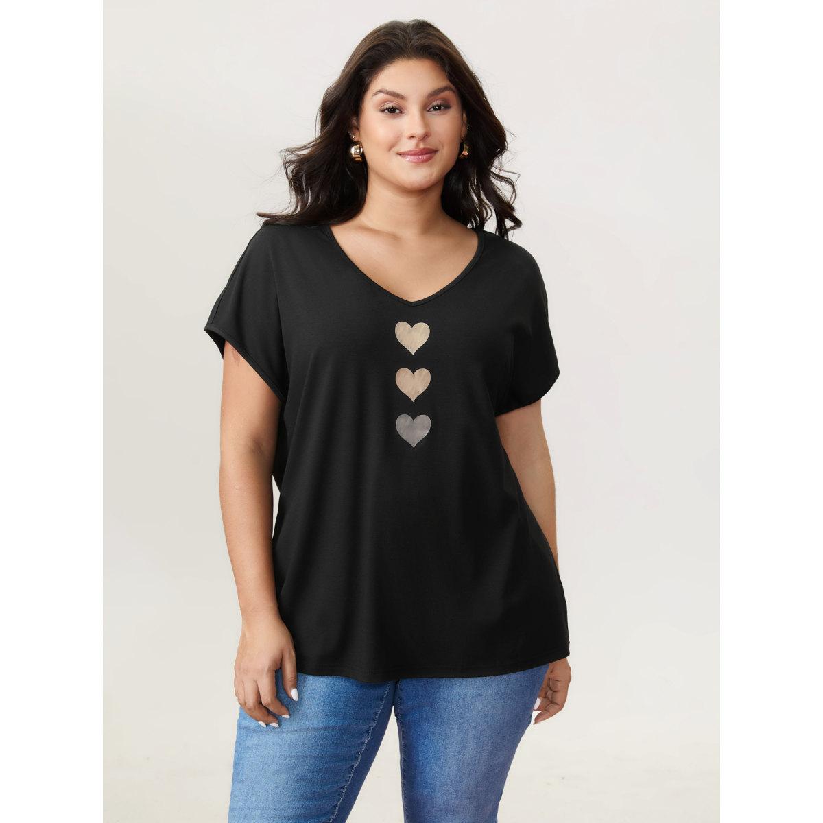 Plus Size Every Heart Printed V-Neck T-Shirt Pureblack Women Non Art&design V-neck Everyday-Casual T-shirts BloomChic 26/4X