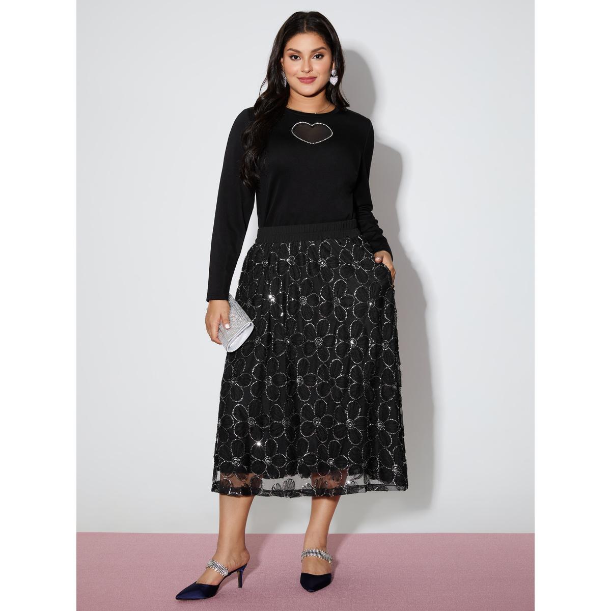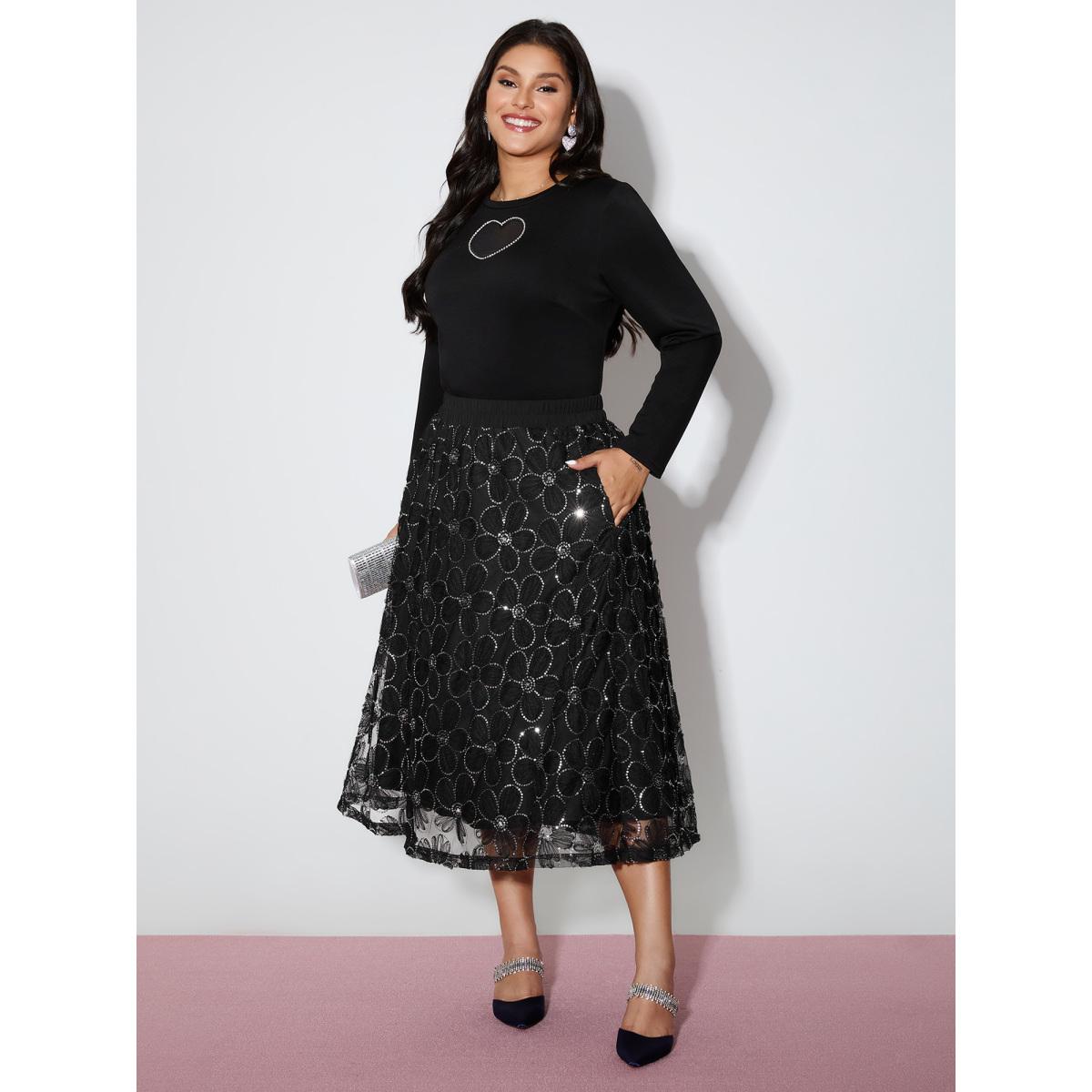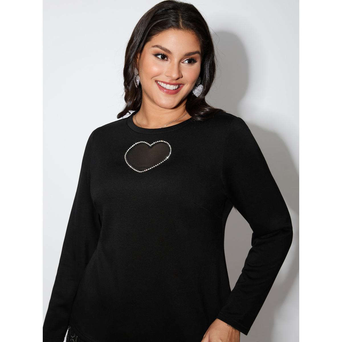 Plus Size Heart-Shaped Cut-Out Diamond T-Shirt Black Women Party&Cocktail Round Neck Bodycon Party T-shirts BloomChic 10/M