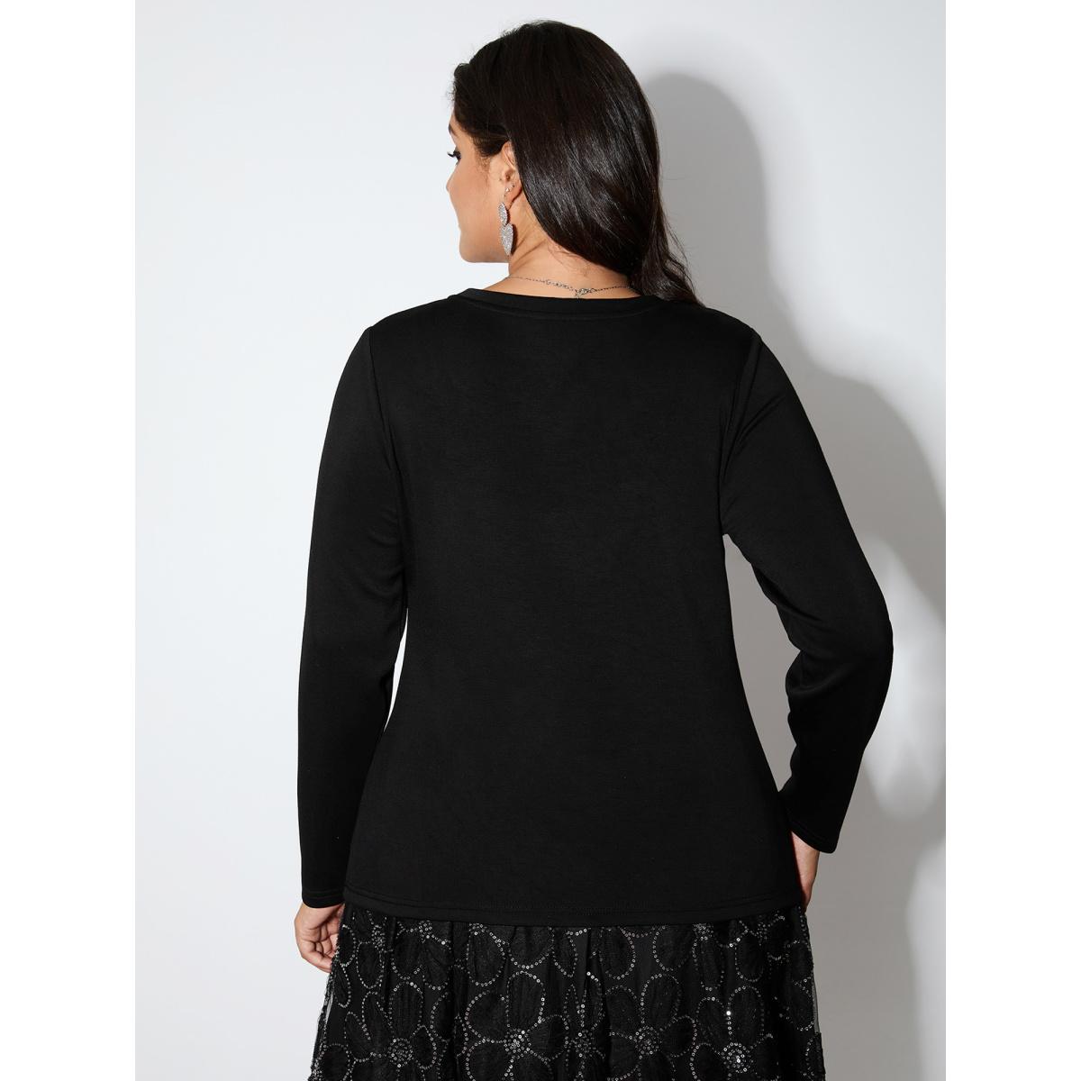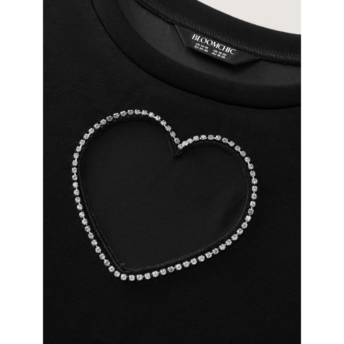 Plus Size Heart-Shaped Cut-Out Diamond T-Shirt Black Women Party&Cocktail Round Neck Bodycon Party T-shirts BloomChic 10/M Product Image