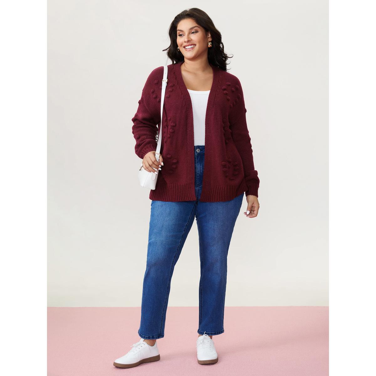 Plus Size Heart Textured Lantern Sleeve Knit Cardigan Burgundy Women Leisure Loose Long Sleeve Casual Cardigans BloomChic 26/4X