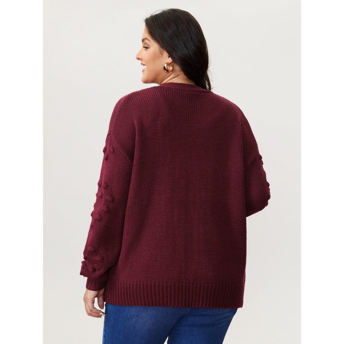 Plus Size Heart Textured Lantern Sleeve Knit Cardigan Burgundy Women Leisure Loose Long Sleeve Casual Cardigans BloomChic 26/4X Product Image