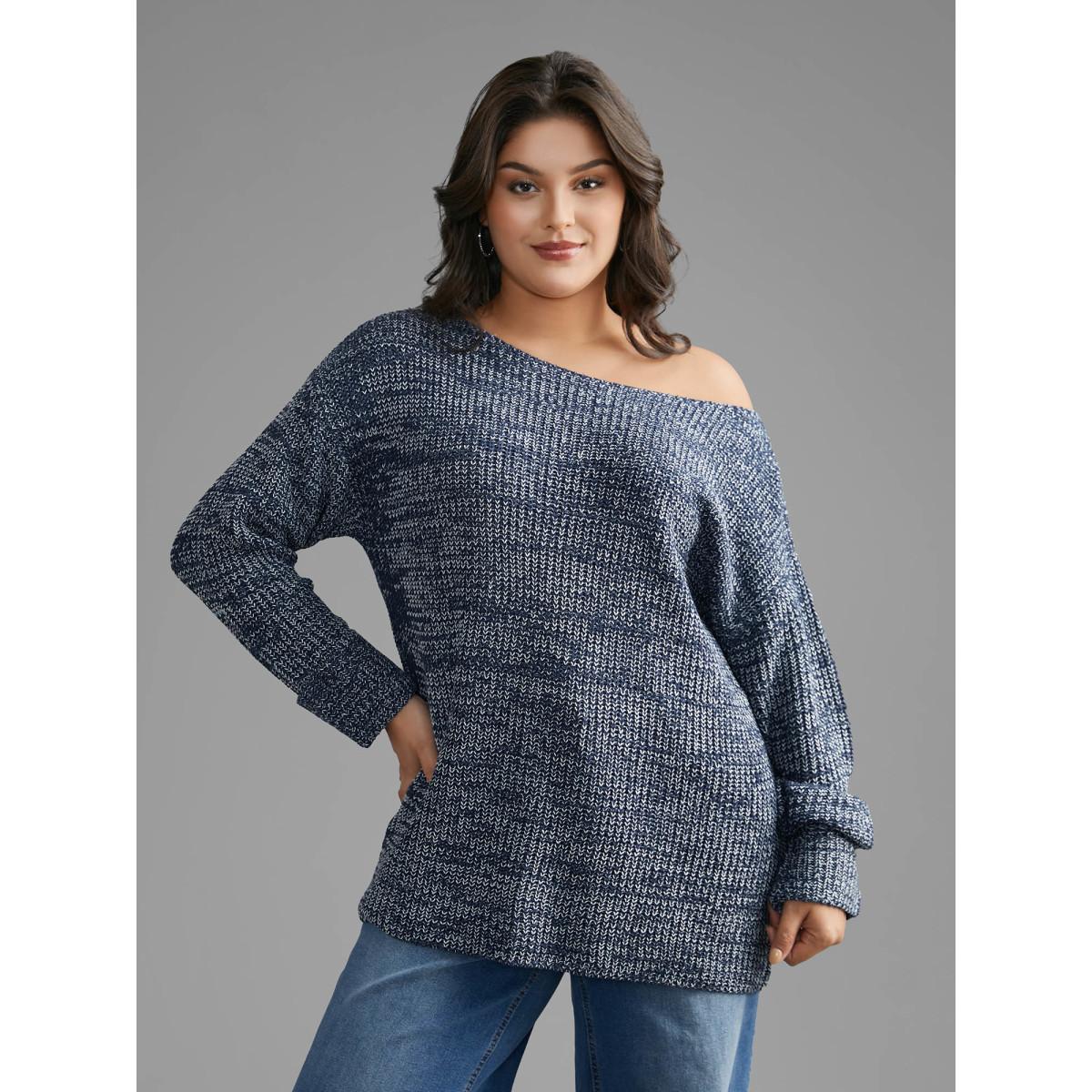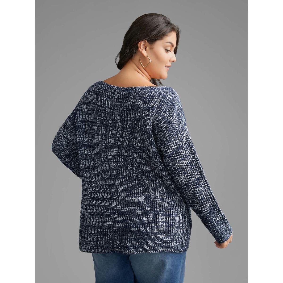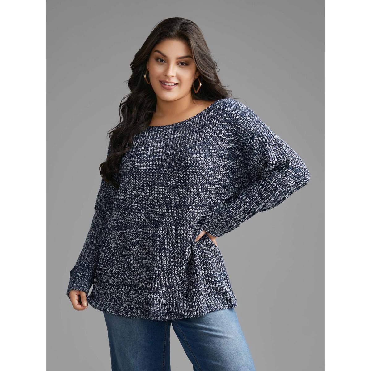 Plus Size Heather Boat Neck Drop Shoulder Sleeve Pullover Indigo Women Casual Loose Extra Long Sleeve Boat Neck Everyday Pullovers BloomChic 22-24/3X