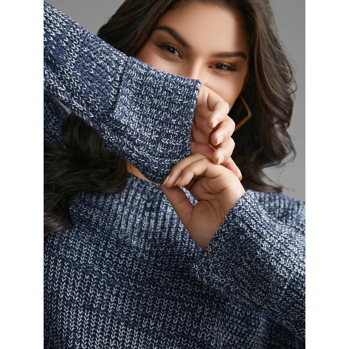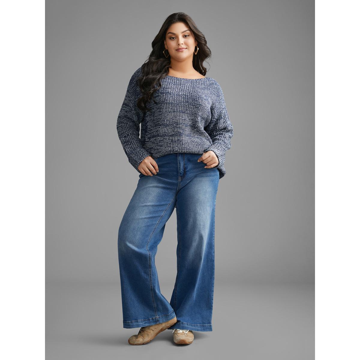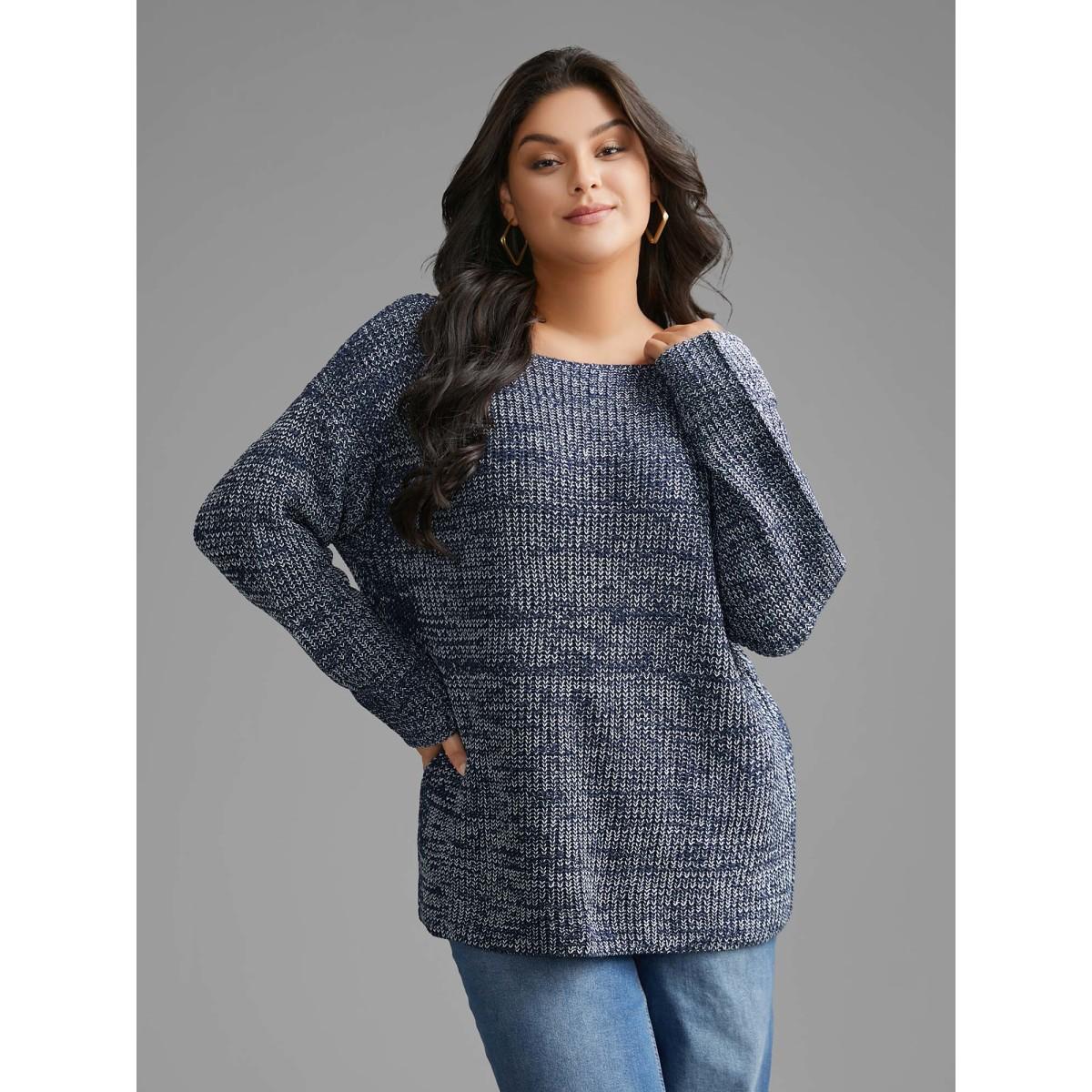 Plus Size Heather Boat Neck Drop Shoulder Sleeve Pullover Indigo Women Casual Loose Extra Long Sleeve Boat Neck Everyday Pullovers BloomChic 22-24/3X