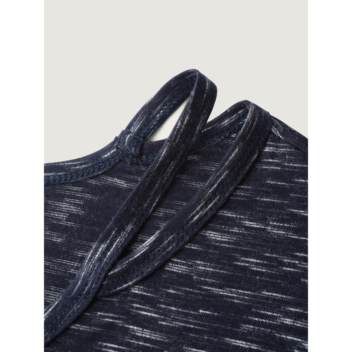 Plus Size Heather Plicated Detail V Neck Button Detail T-shirt Blue Women Casual Plain Plain V-neck Dailywear T-shirts BloomChic 10/M