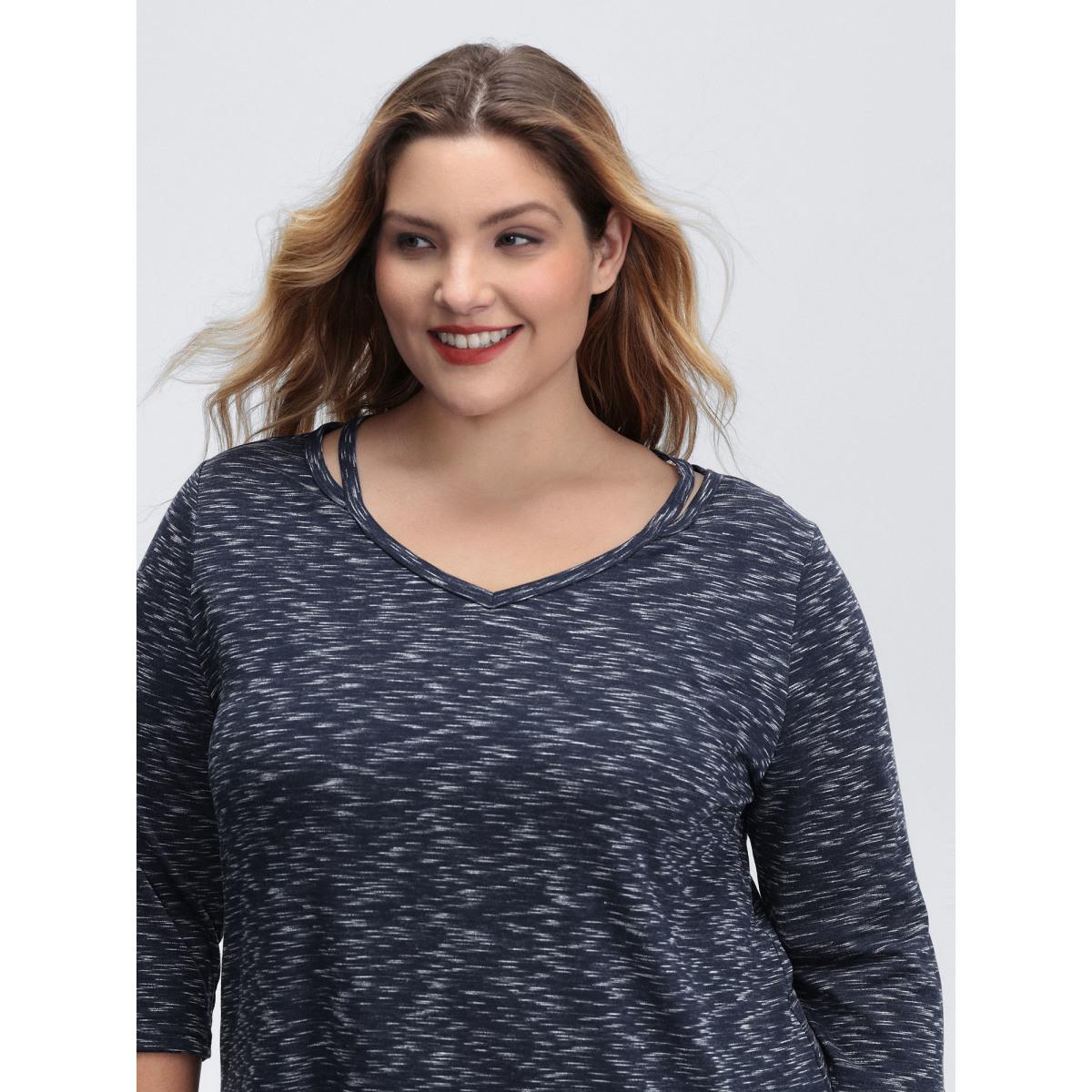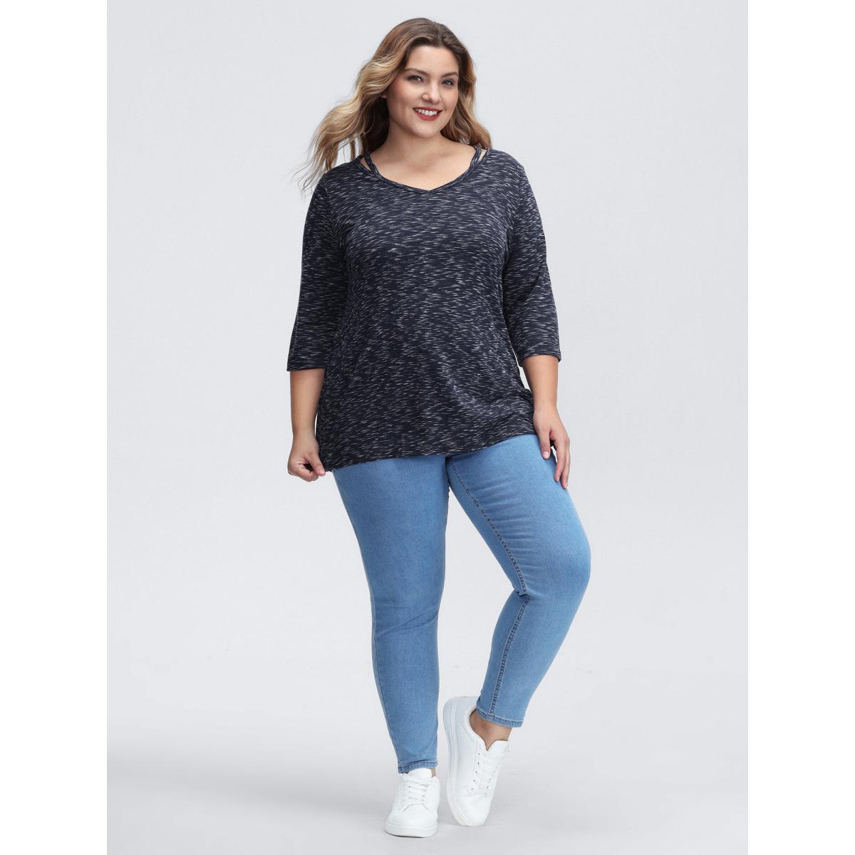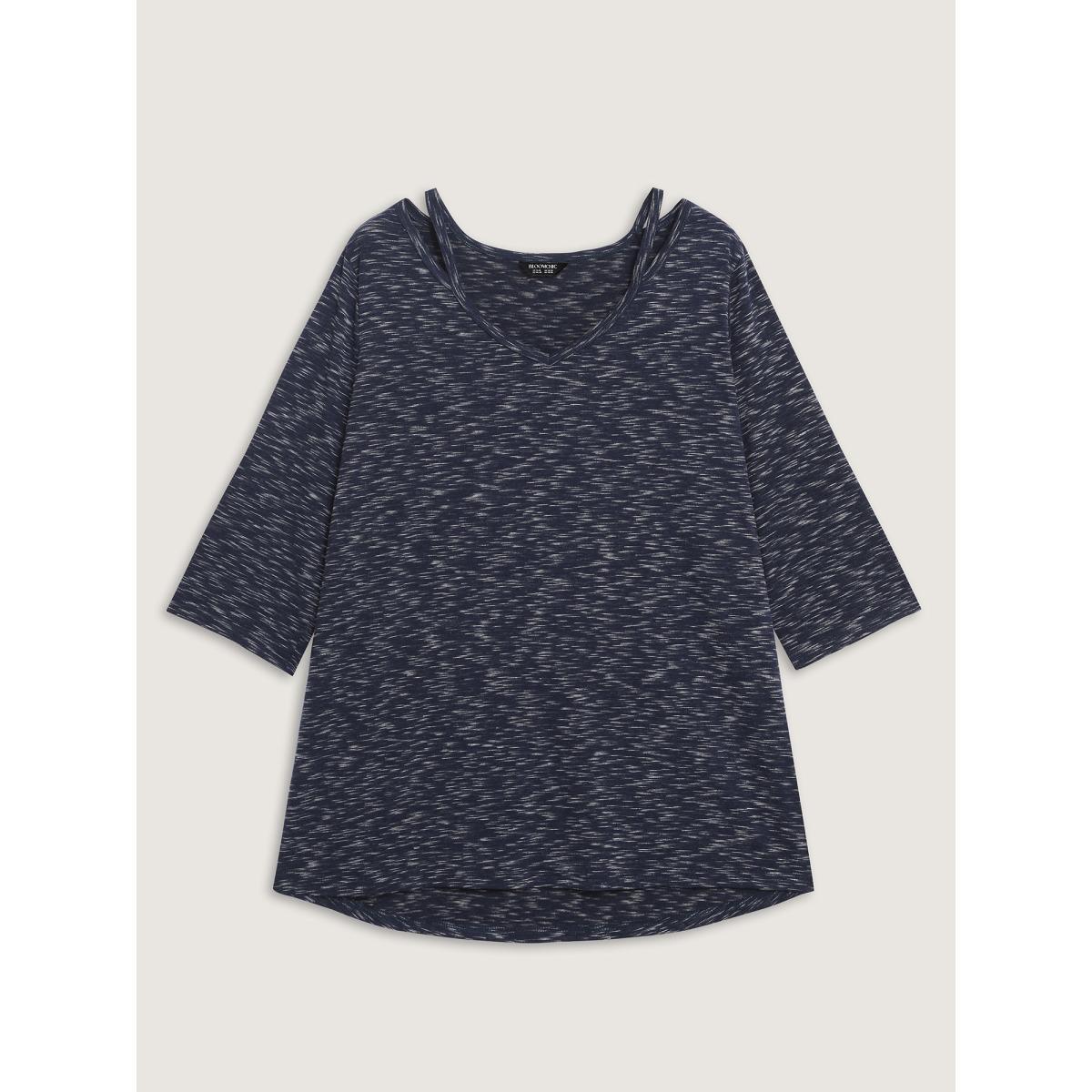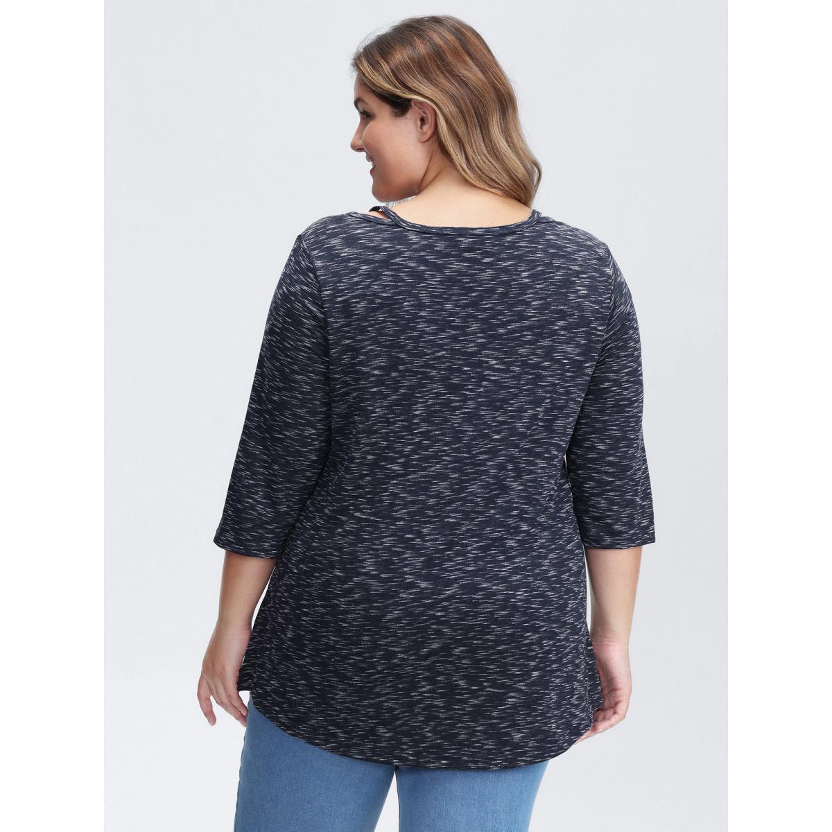 Plus Size Heather Cut-Out Neckline T-Shirt Navy Women Leisure Non V-neck Casual T-shirts BloomChic 30/6X