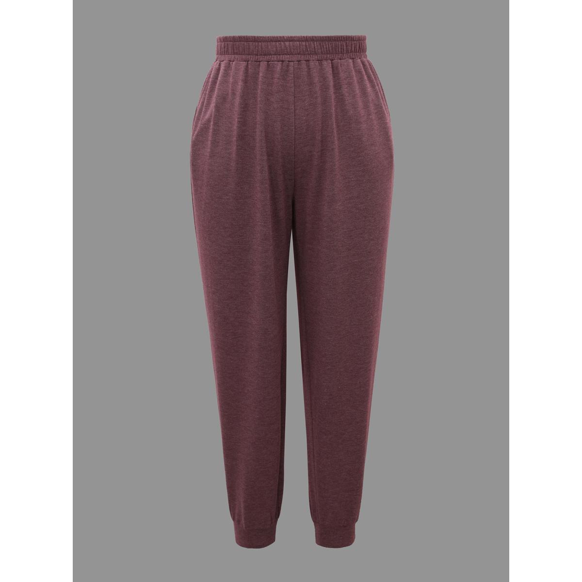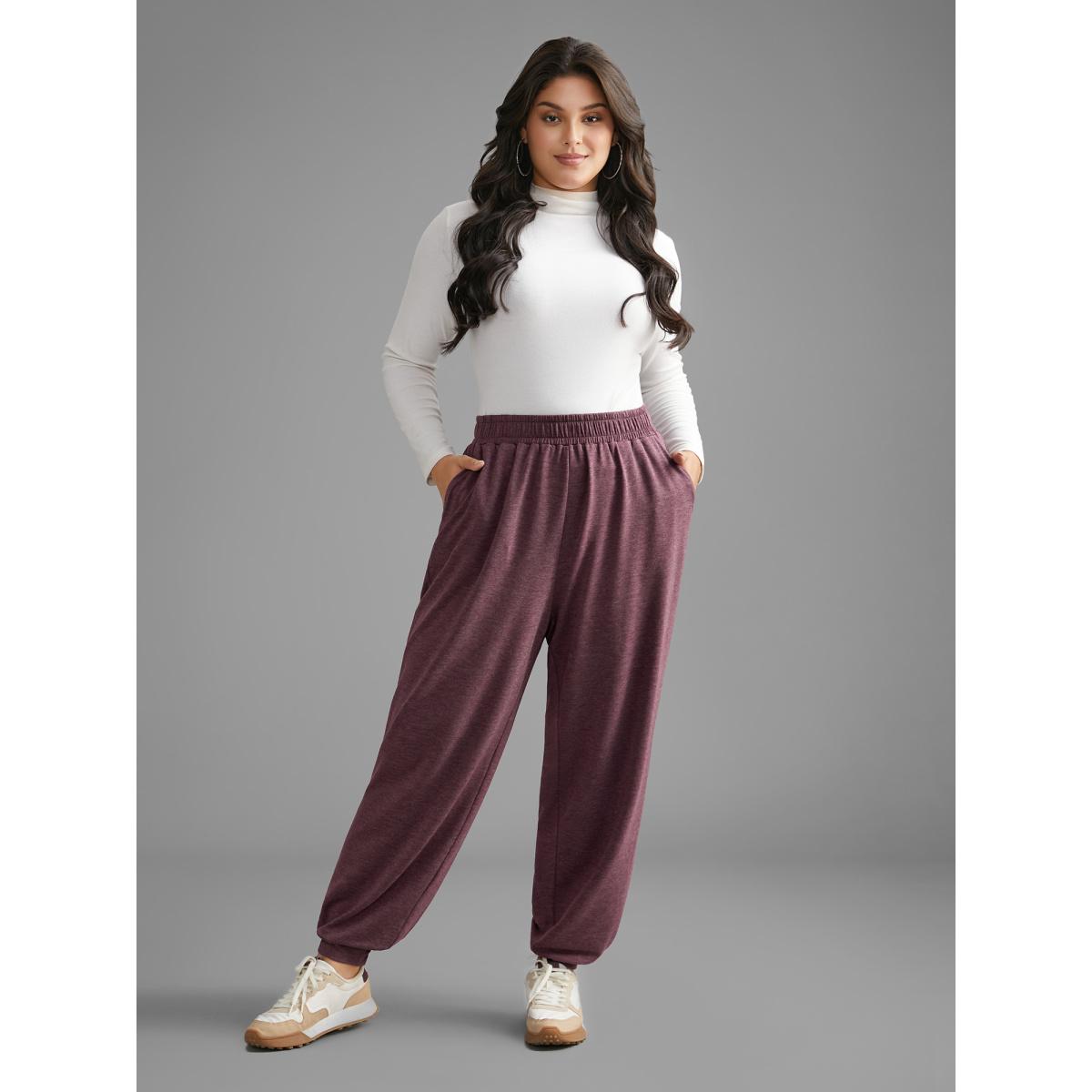 Plus Size Heather Elastic Waist Mid Rise Pants Women Eggplant Casual Mid Rise Everyday Pants BloomChic 14-16/1X