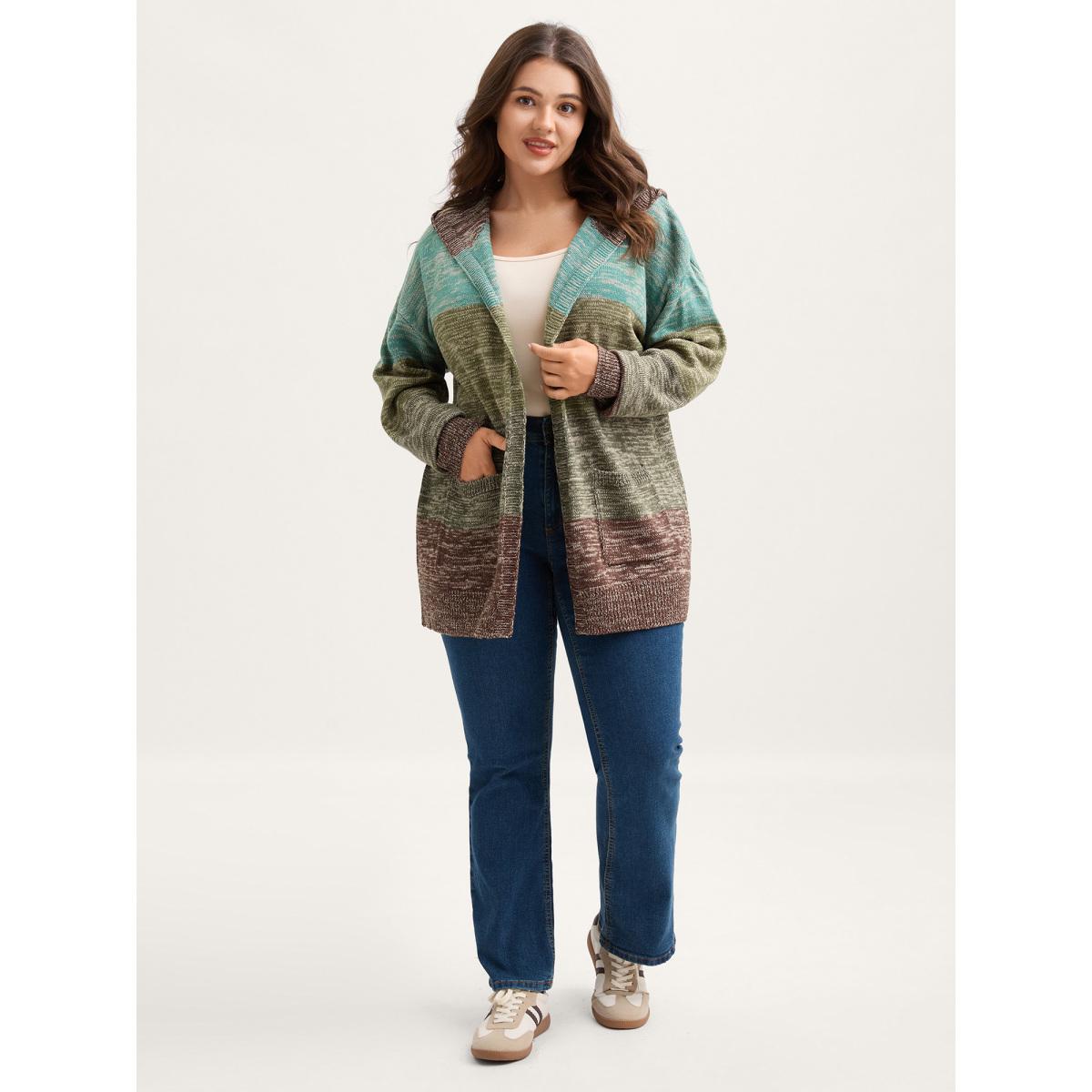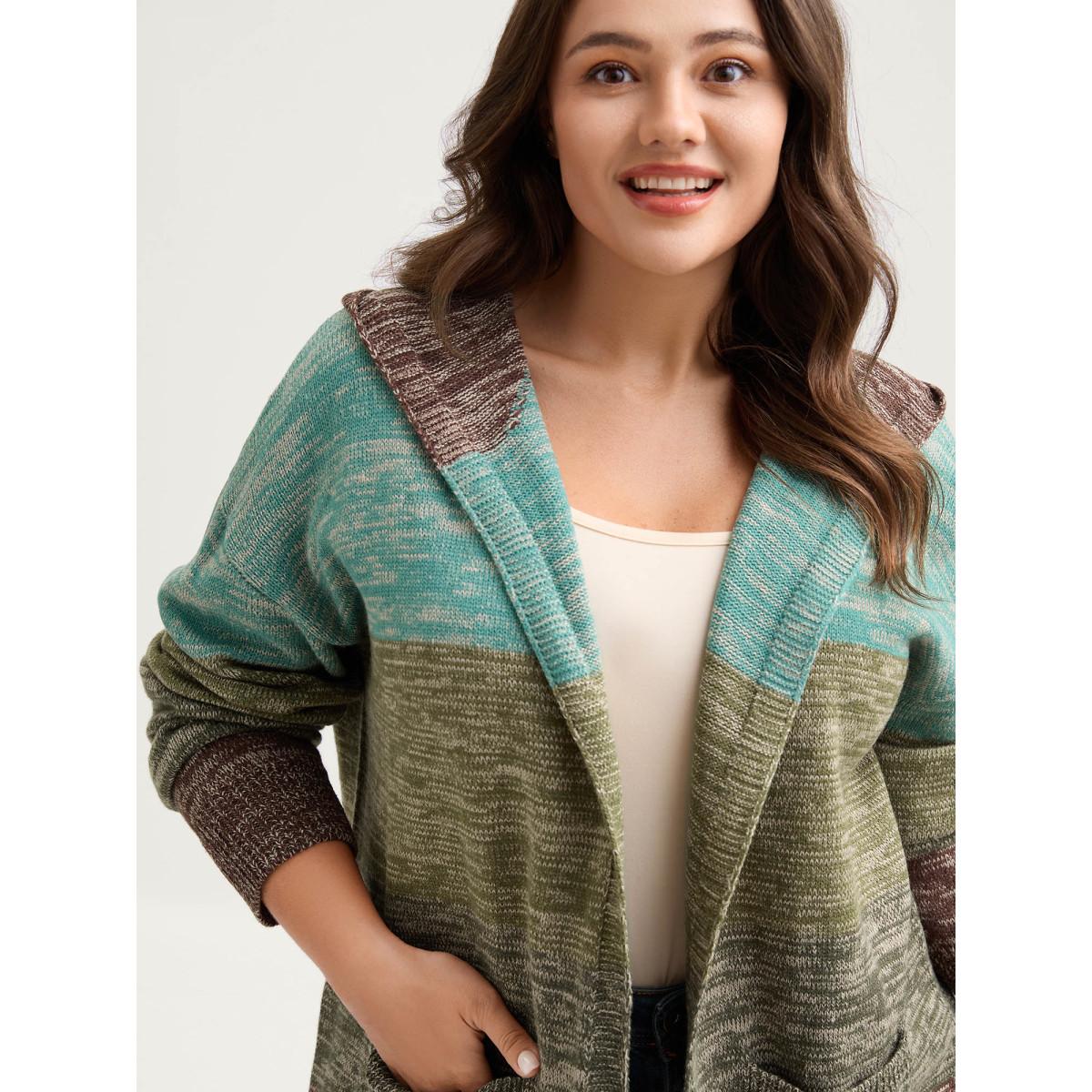 Plus Size Heather Little Stretchy Hooded Cardigan Browncoffeecolor Women Leisure Loose Long Sleeve Casual Cardigans BloomChic 12/L