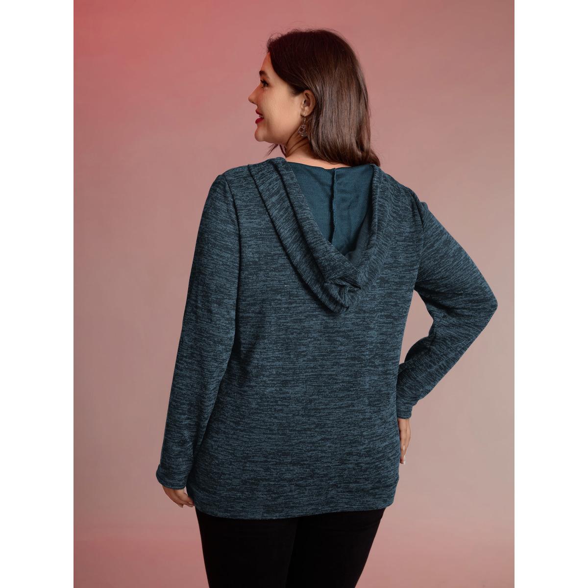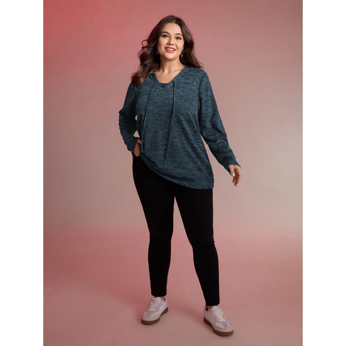 Plus Size Heather Neck Cross-Tie Hoodie Women Aegean Leisure Eyelet Hooded Casual Sweatshirts BloomChic 10/M Product Image