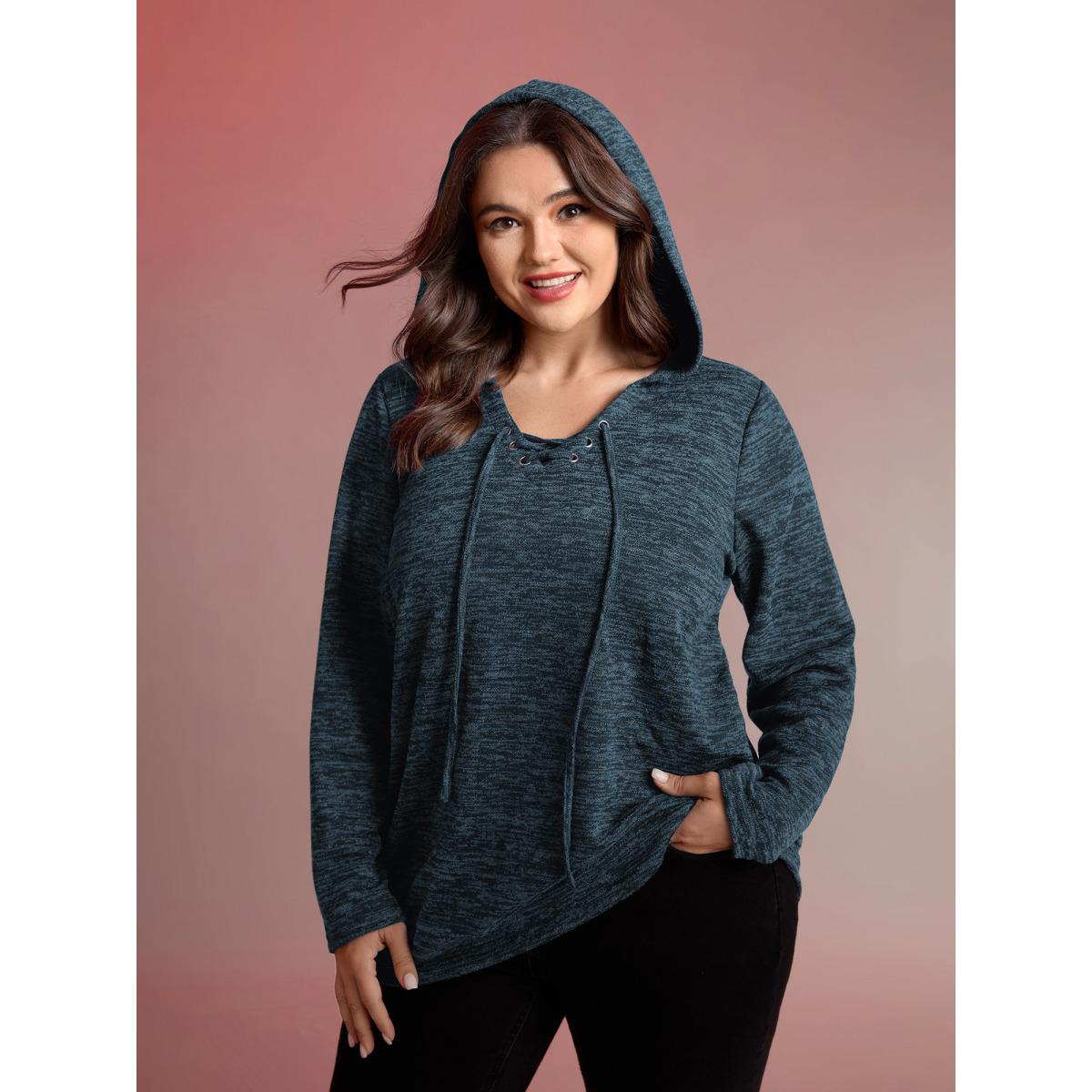 Plus Size Heather Neck Cross-Tie Hoodie Women Aegean Leisure Eyelet Hooded Casual Sweatshirts BloomChic 10/M