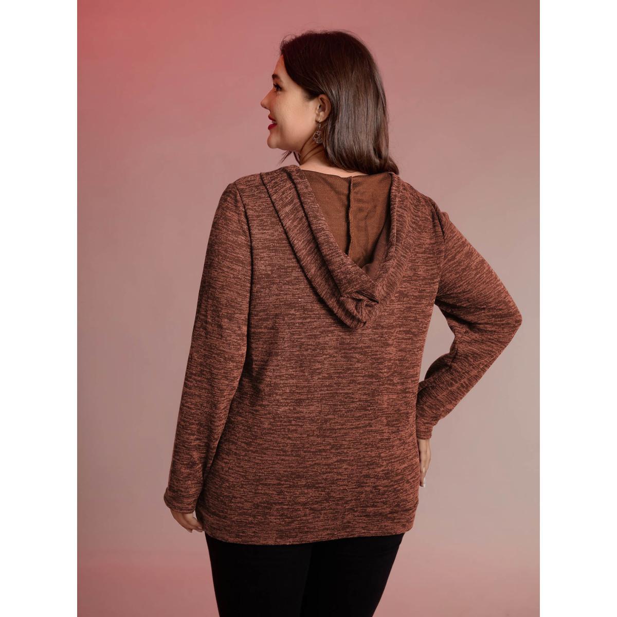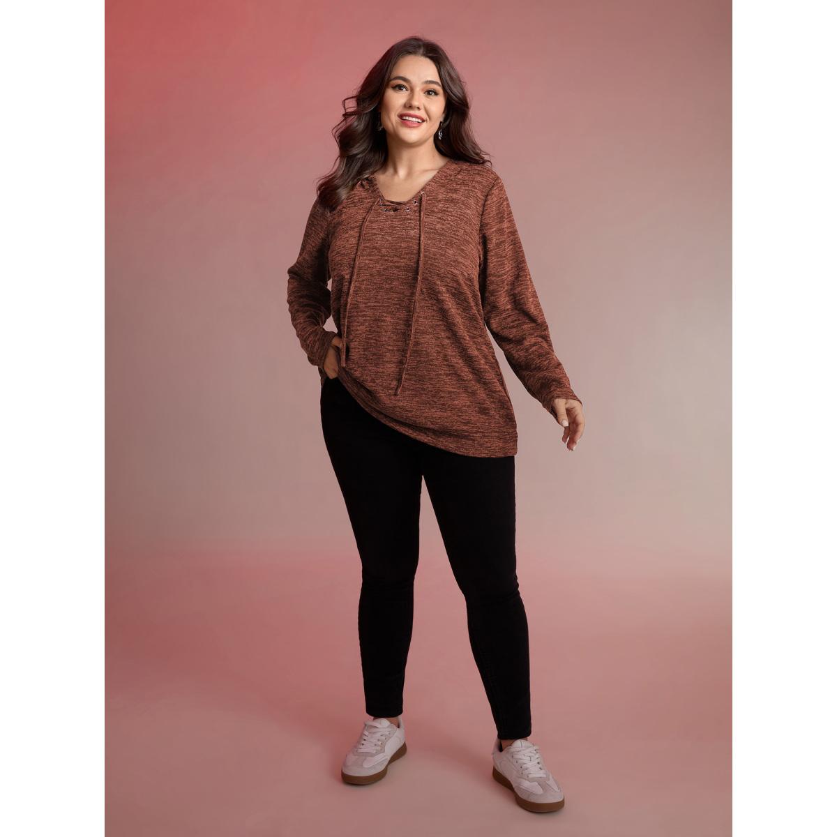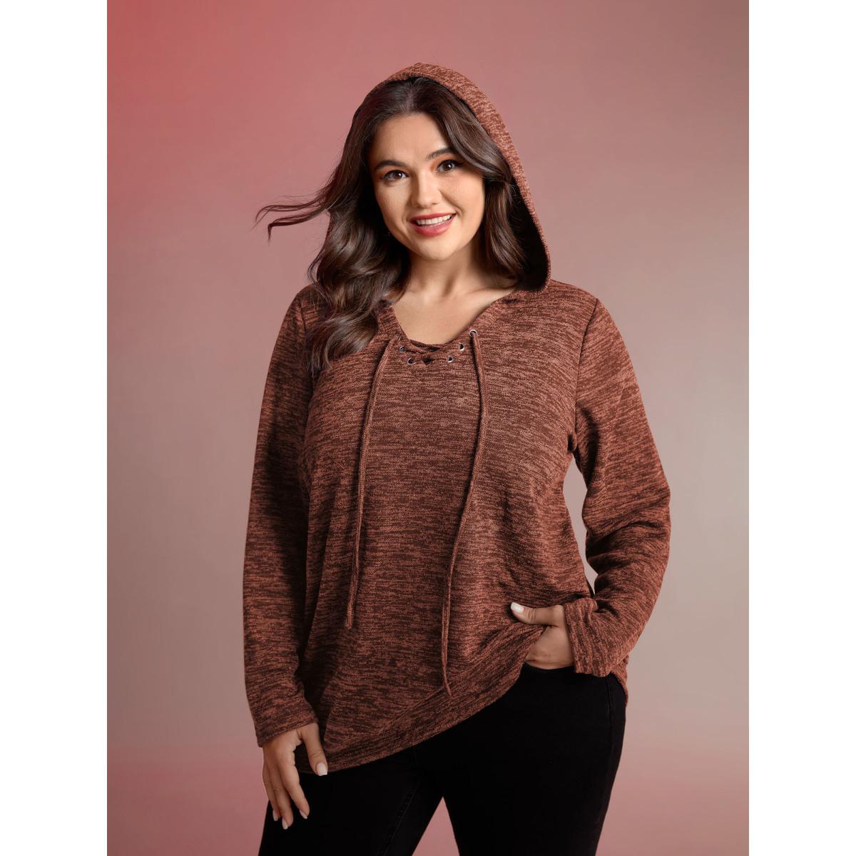 Plus Size Heather Neck Cross-Tie Hoodie Women Rust Leisure Eyelet Hooded Casual Sweatshirts BloomChic 26/4X