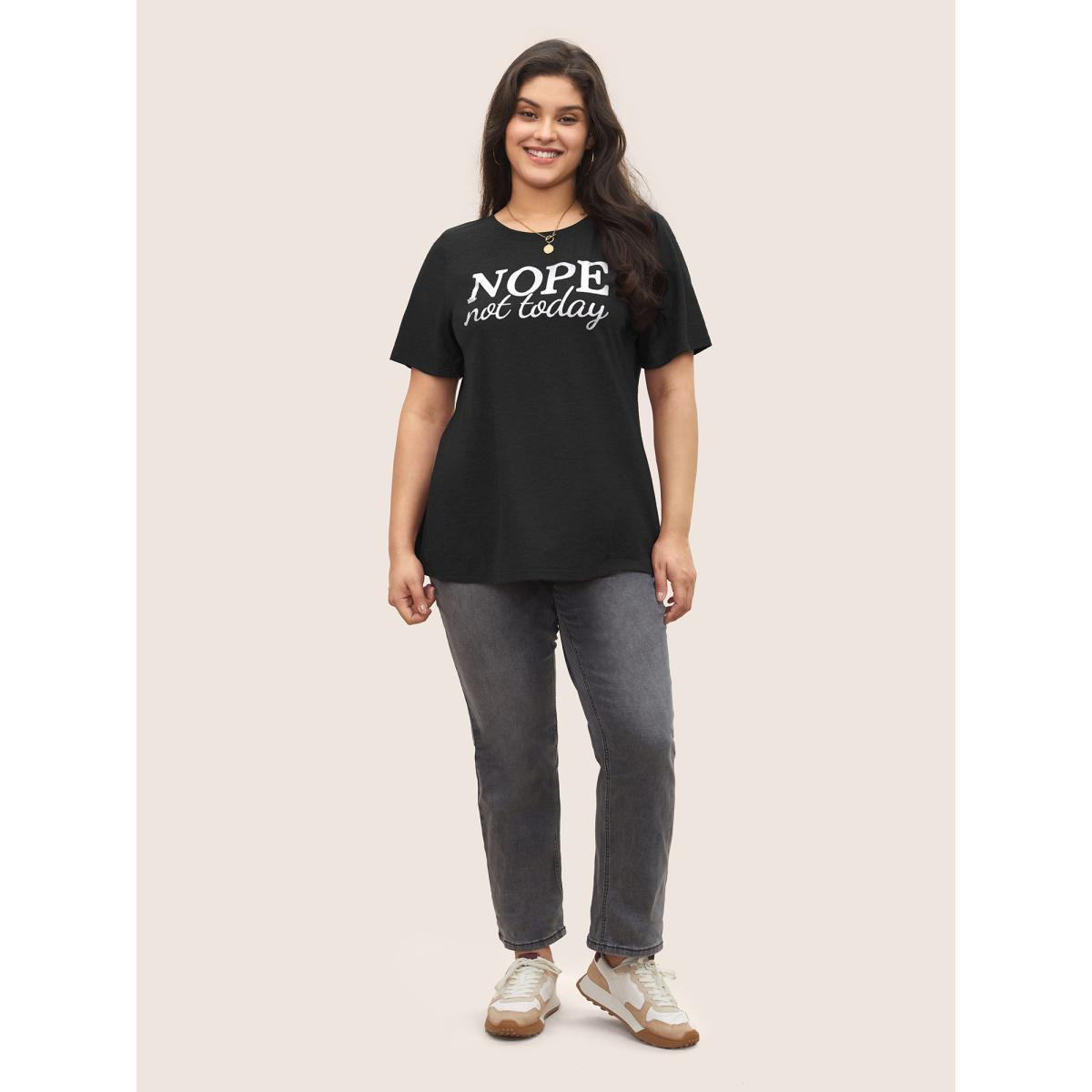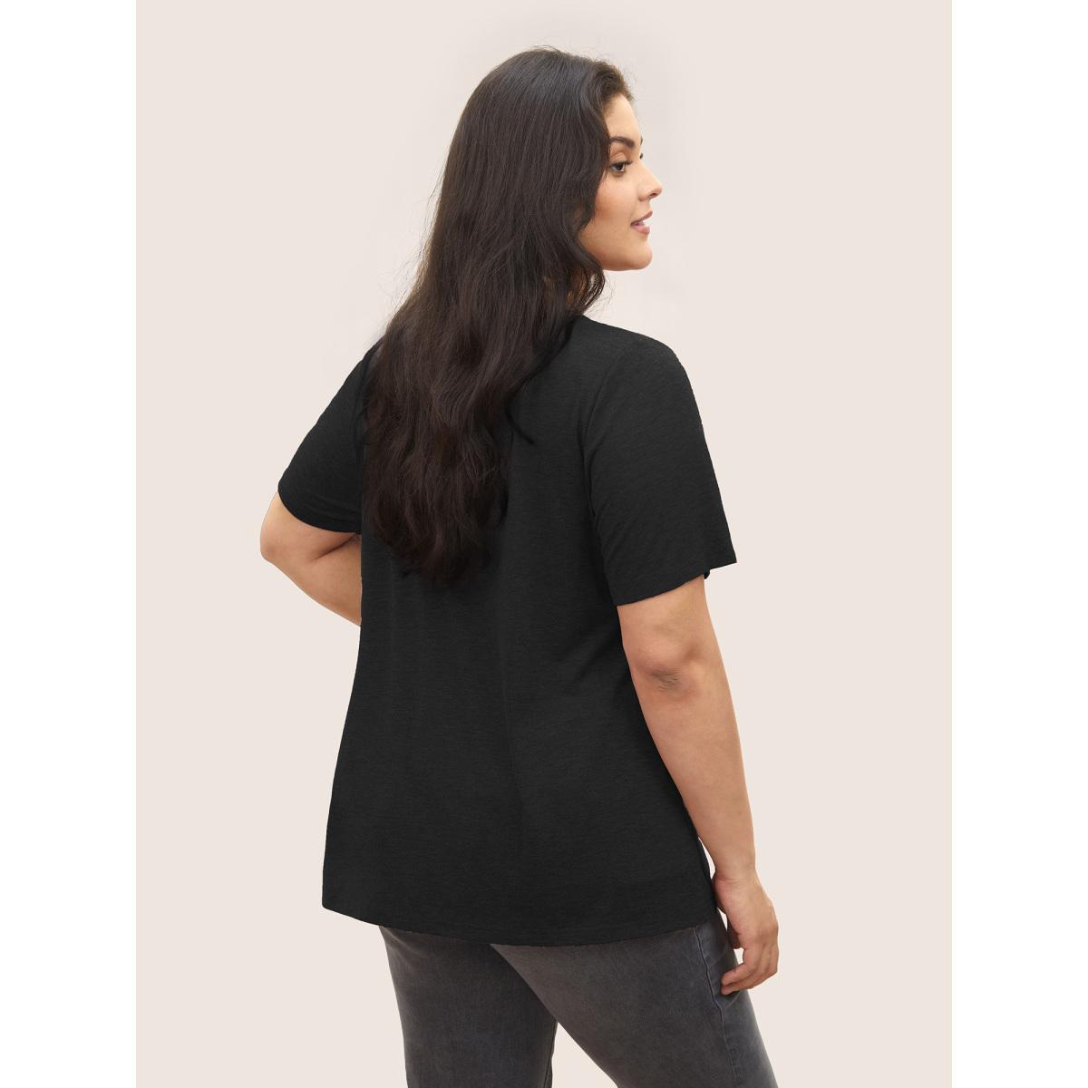 Plus Size Heather Positive Slogan Crew Neck T-shirt Black Women Casual Positive slogan Round Neck Everyday T-shirts BloomChic 14-16/1X