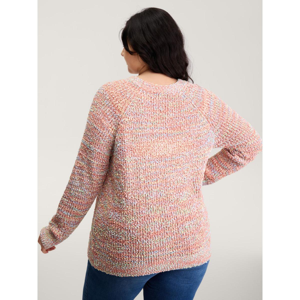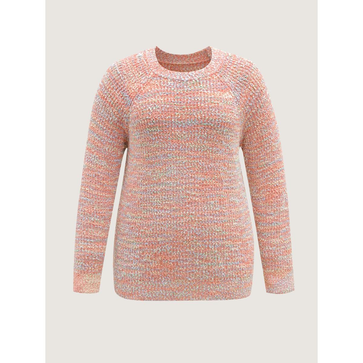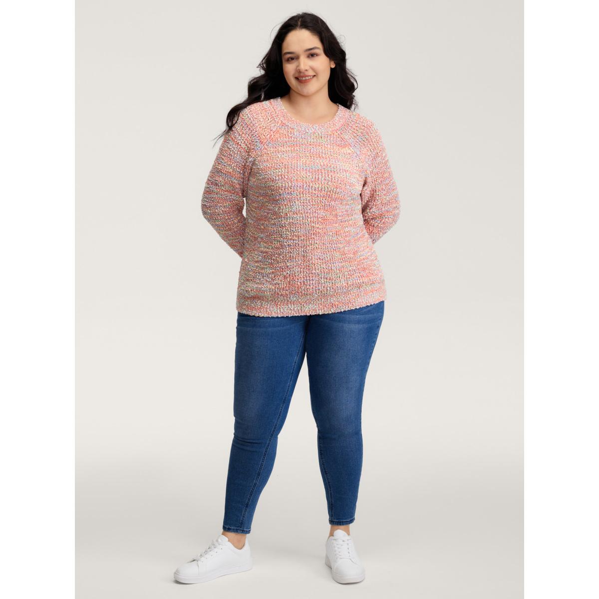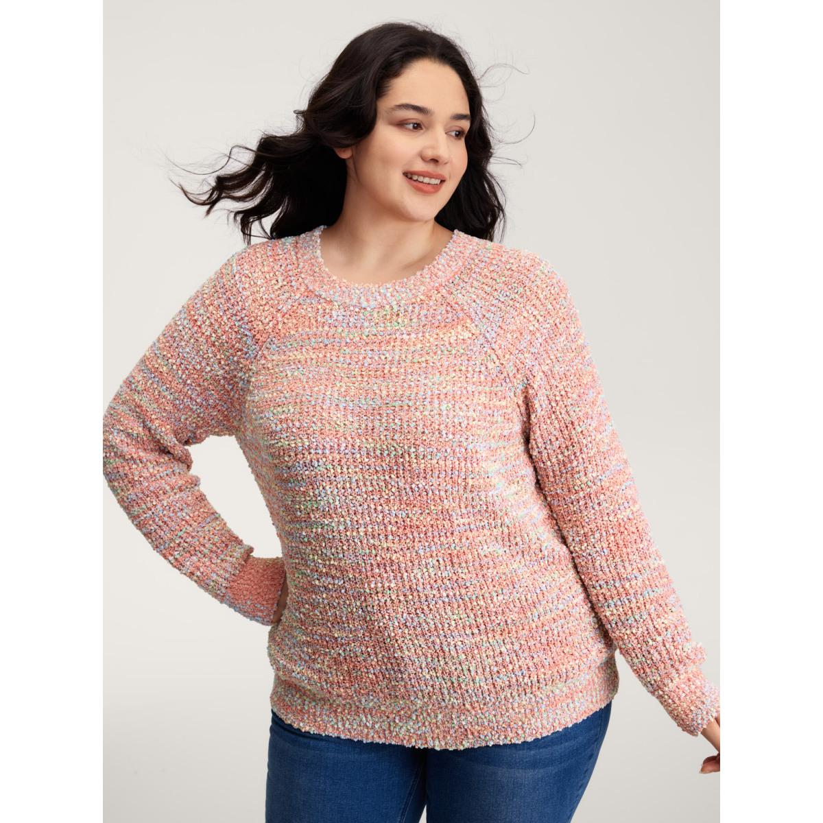 Plus Size Heather Raglan Sleeve Contrast Pullover Russet Women Playful Loose Long Sleeve Round Neck Casual Pullovers BloomChic 30/6X