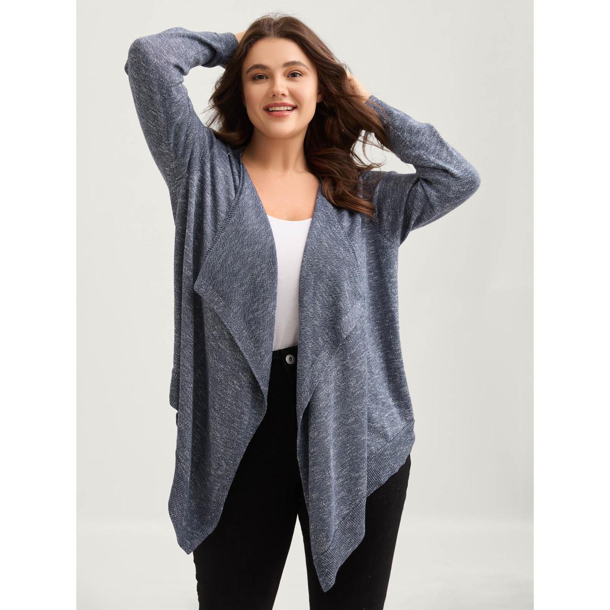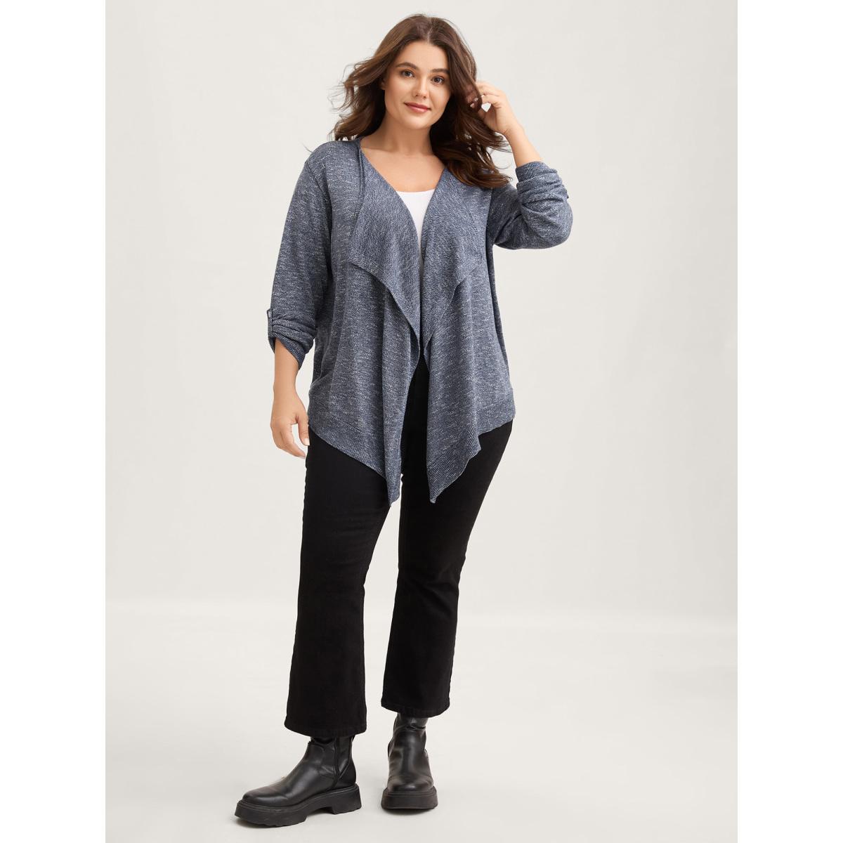 Plus Size Heather Tab Sleeve Irregular Hem Knit Cardigan Stone Women Leisure Loose Long Sleeve Casual Cardigans BloomChic 14-16/1X