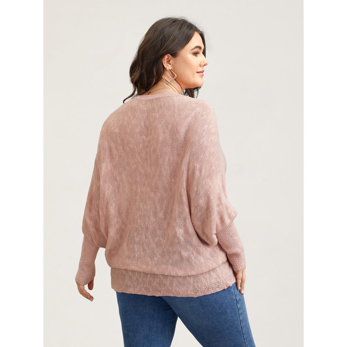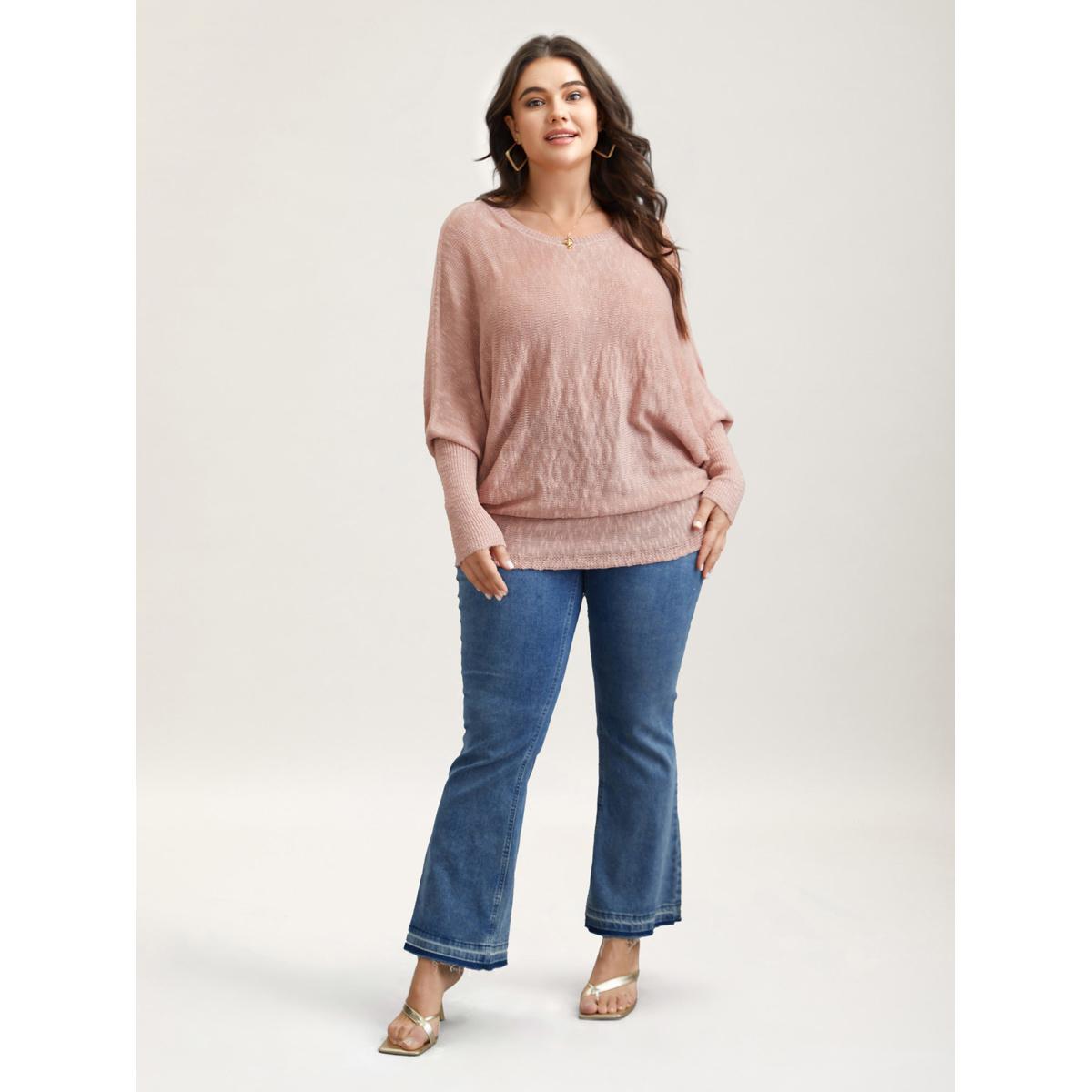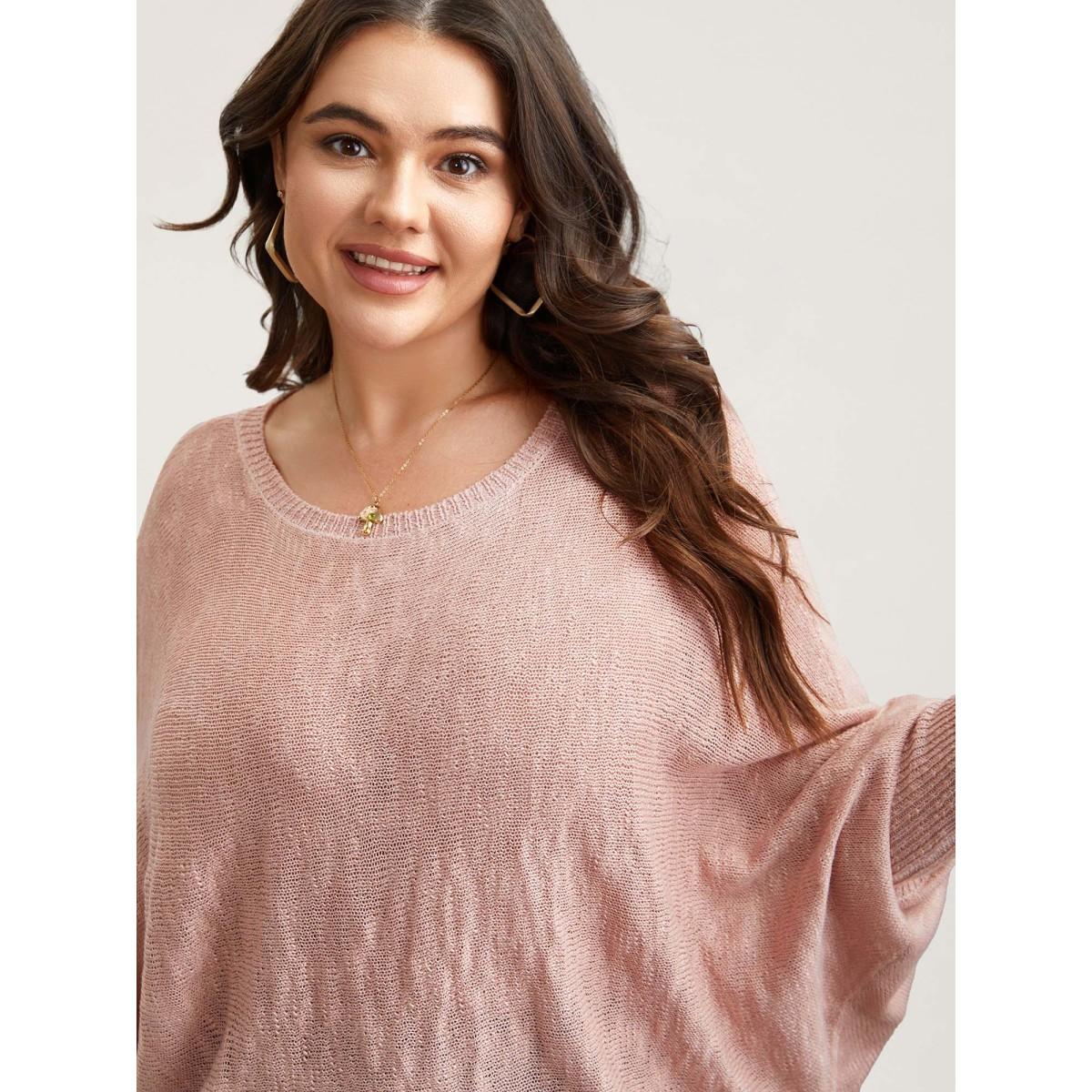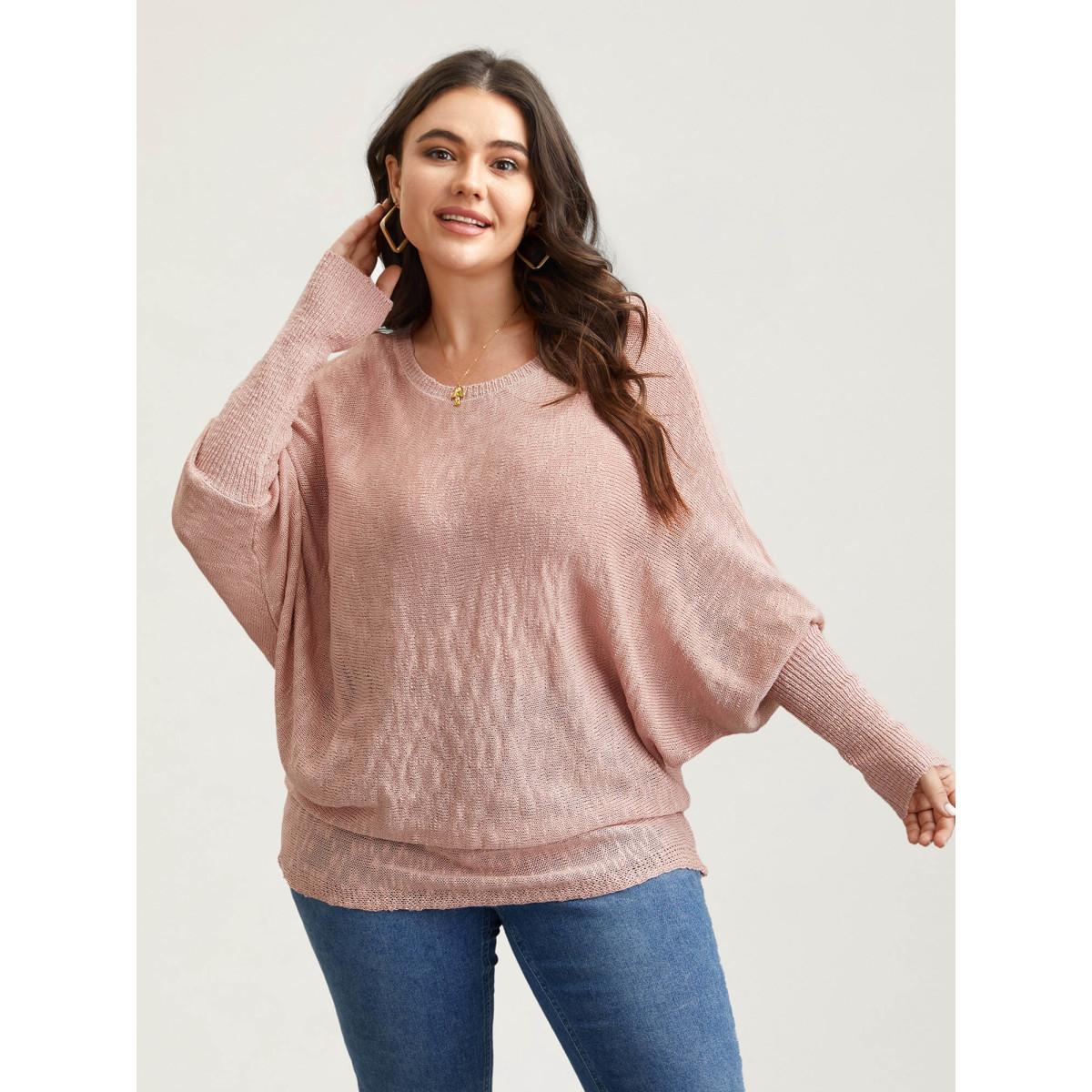 Plus Size Heather Textured Dolman Sleeve Ribbed Pullover Salmon Women Casual Loose Long Sleeve Round Neck Everyday Pullovers BloomChic 12/L