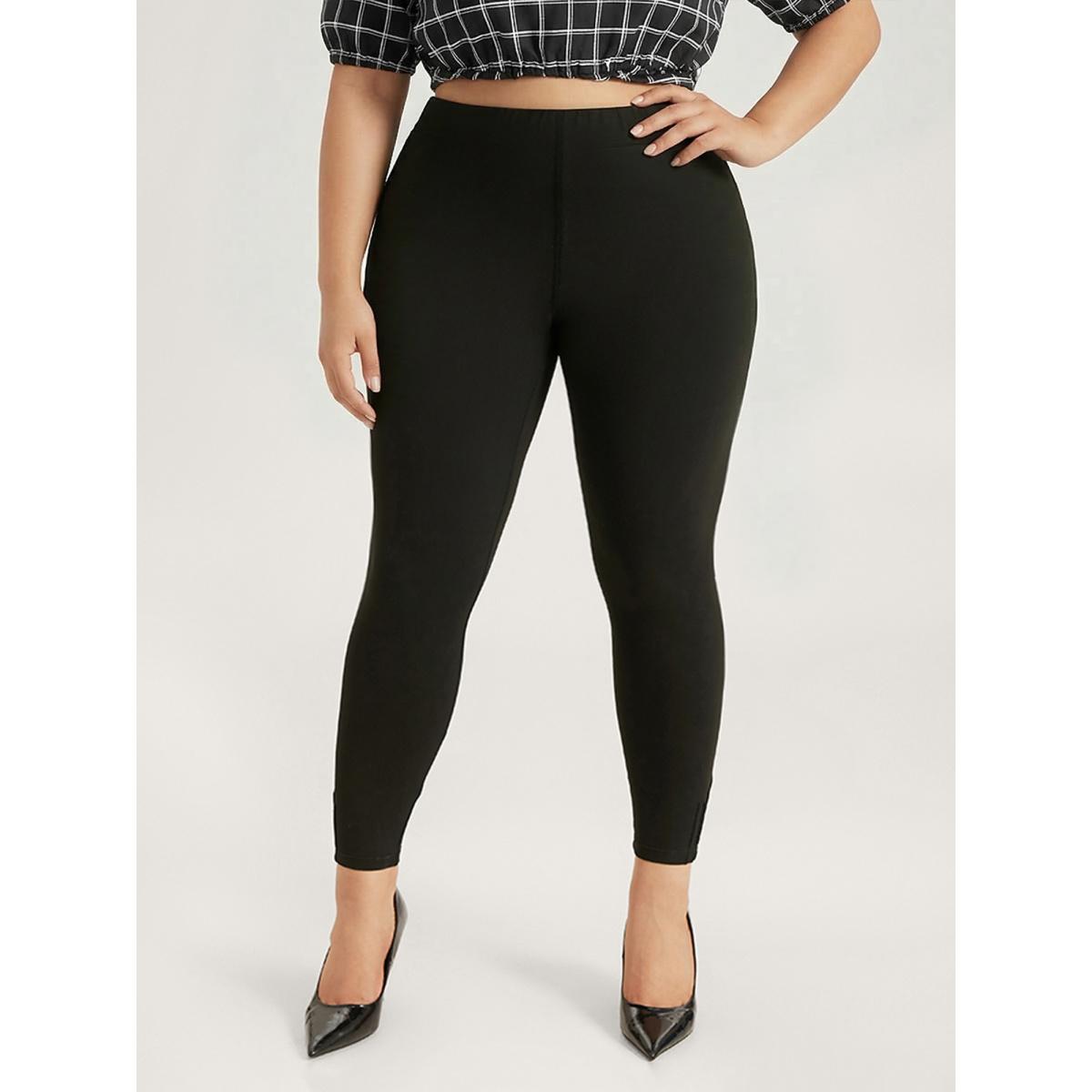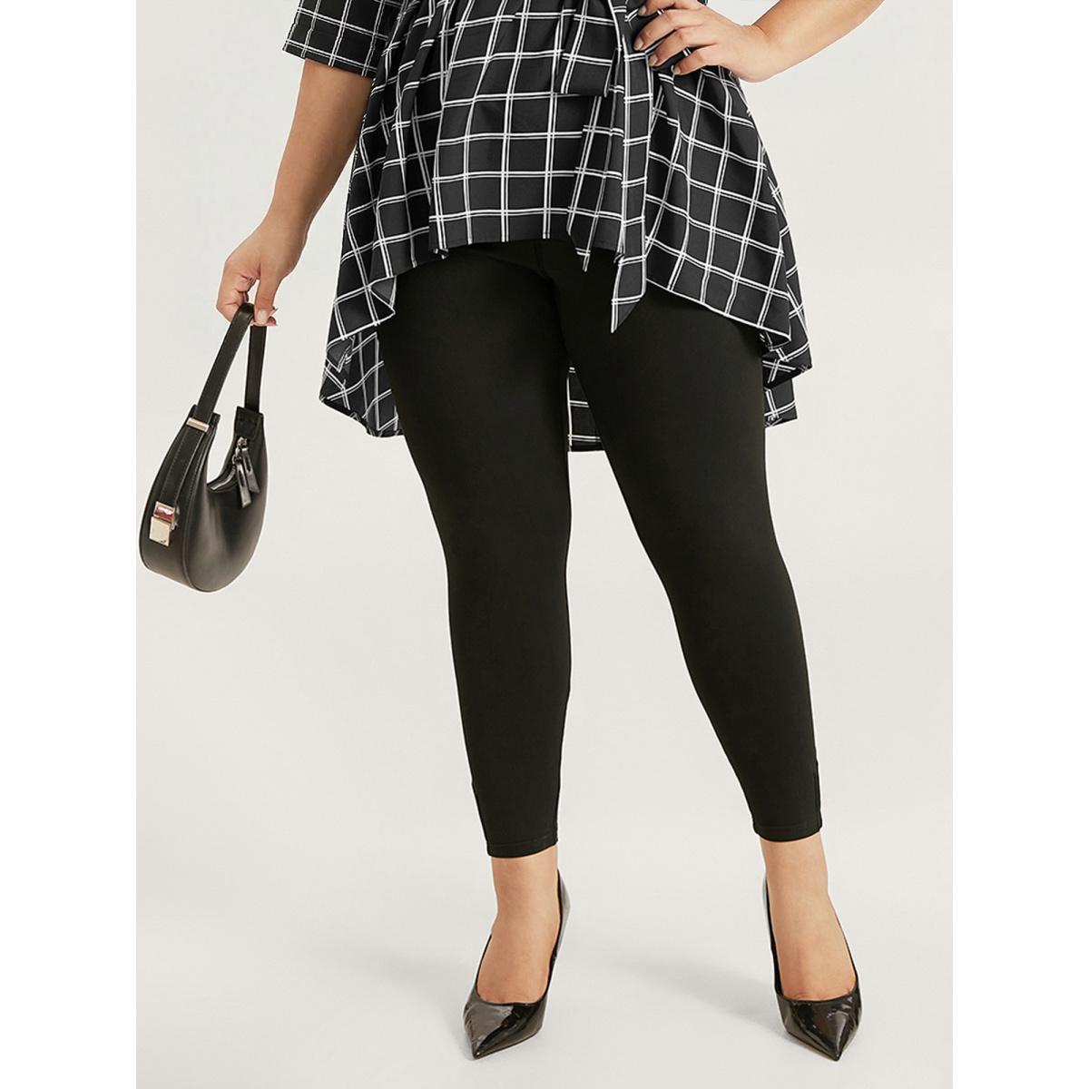 Plus Size High Rise Pleated Elastic Waist Skinny Leggings Women Black Leisure High stretch Skinny High Rise Casual Leggings BloomChic 26/4X