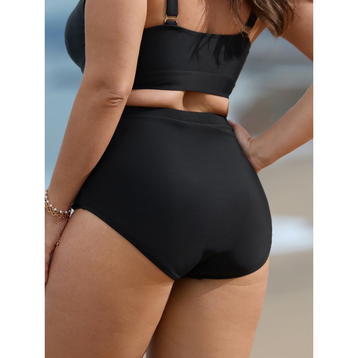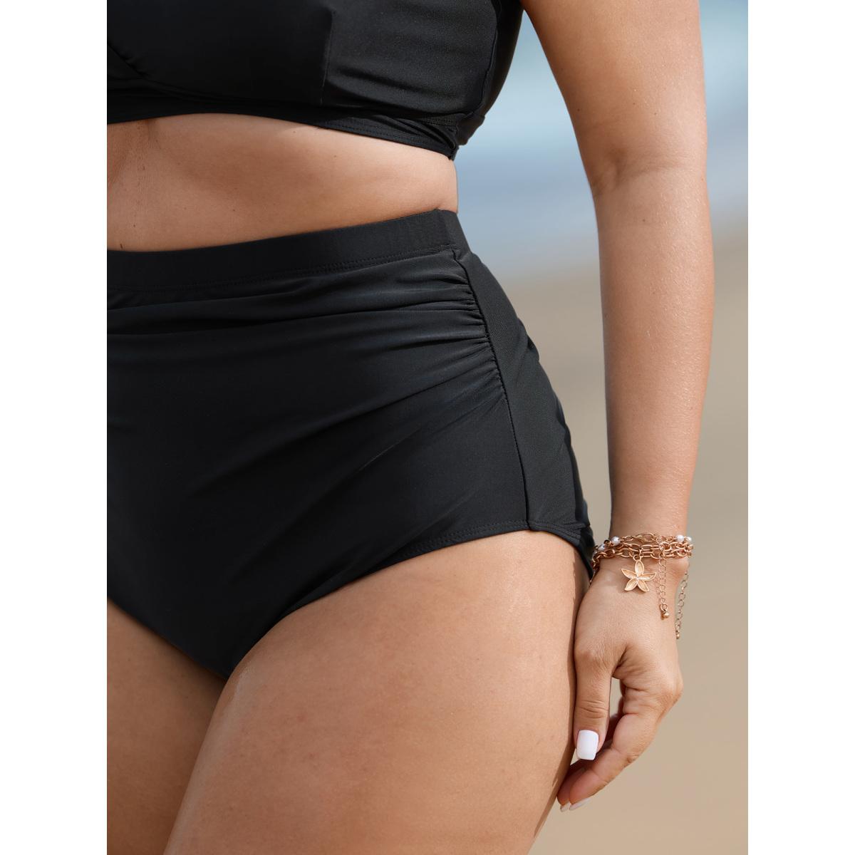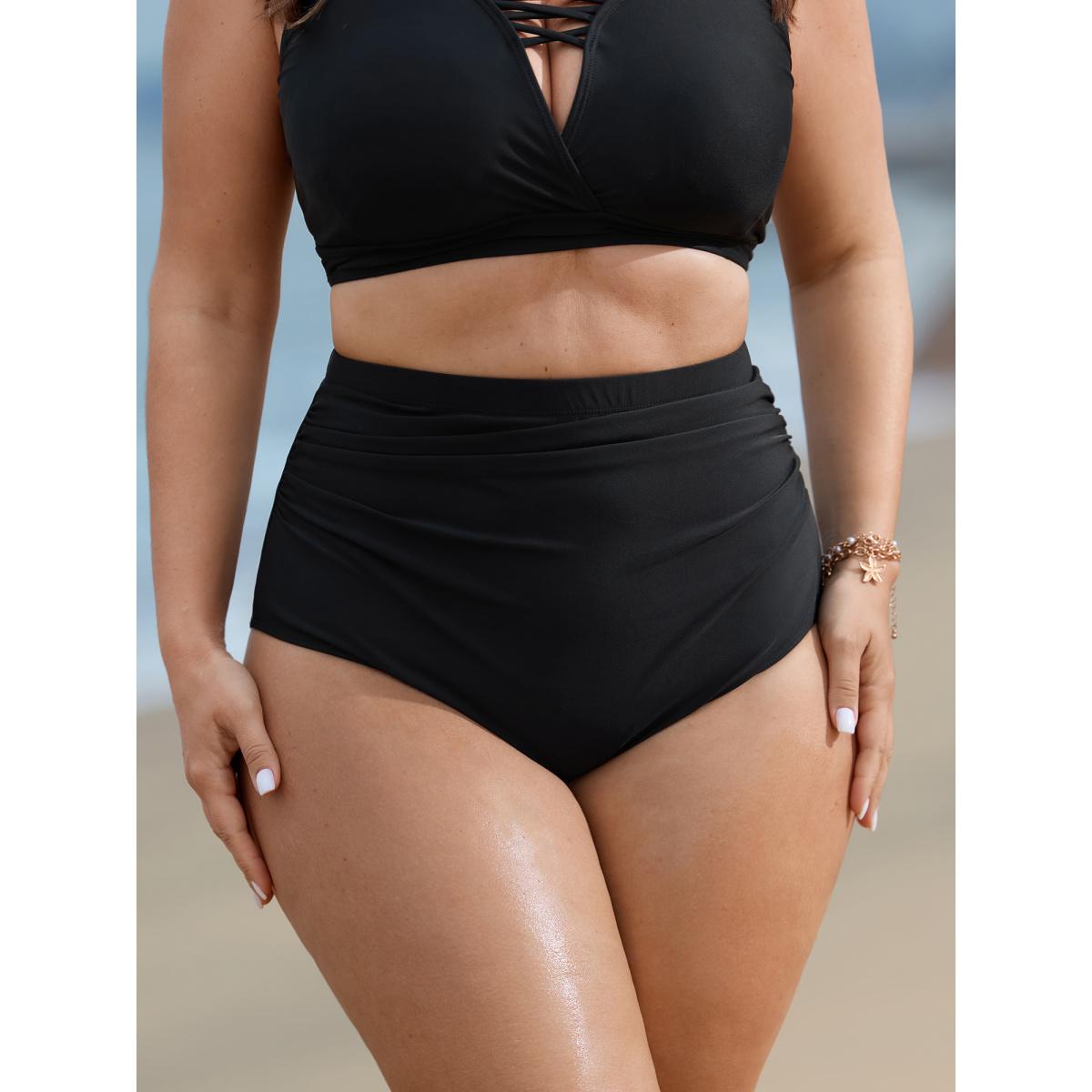 Plus Size High Rise Ruched Plain Swim Bottoms Women's Swimwear Black Resort Gathered High stretch Skinny High Rise Curve Swim Bottoms BloomChic 14-16/1X
