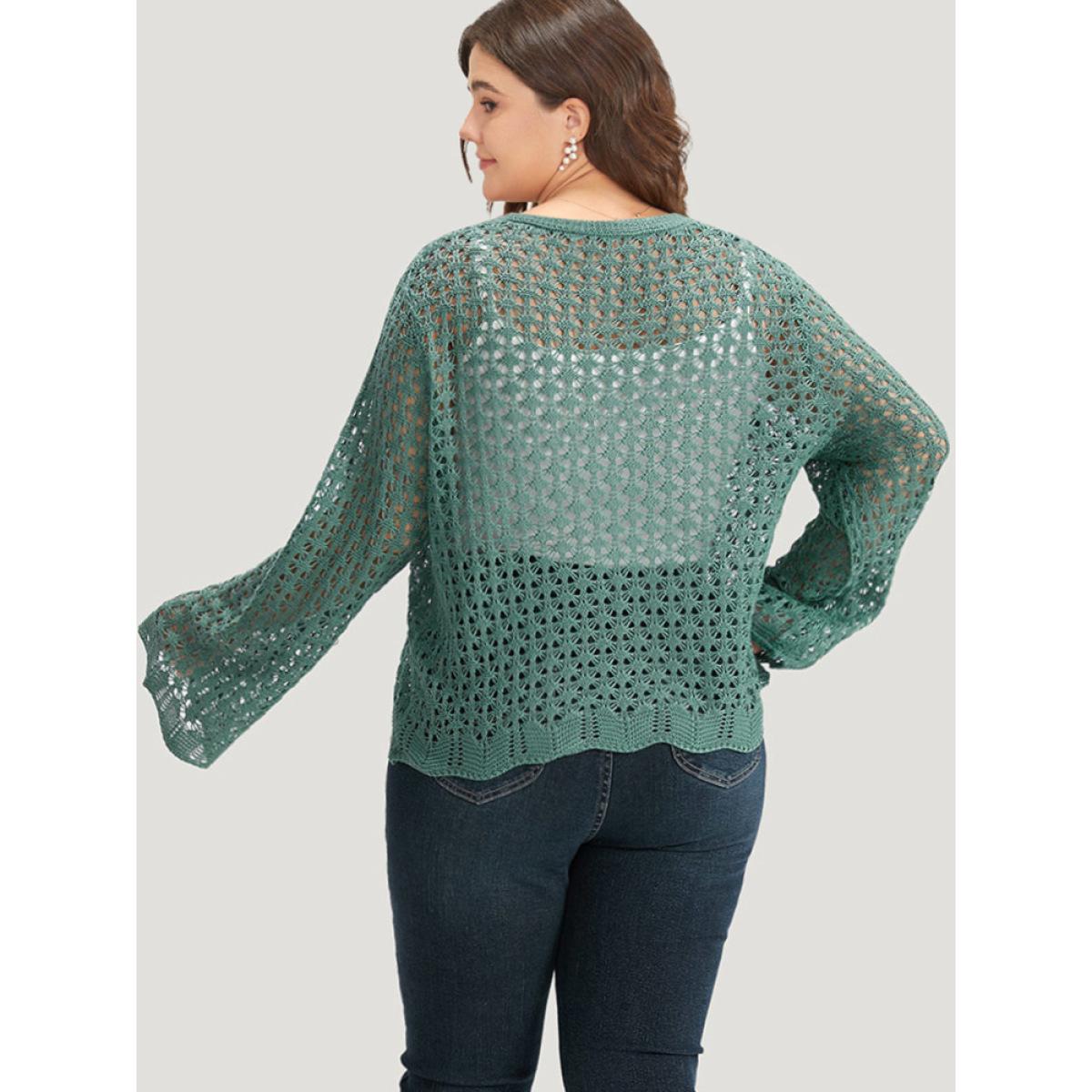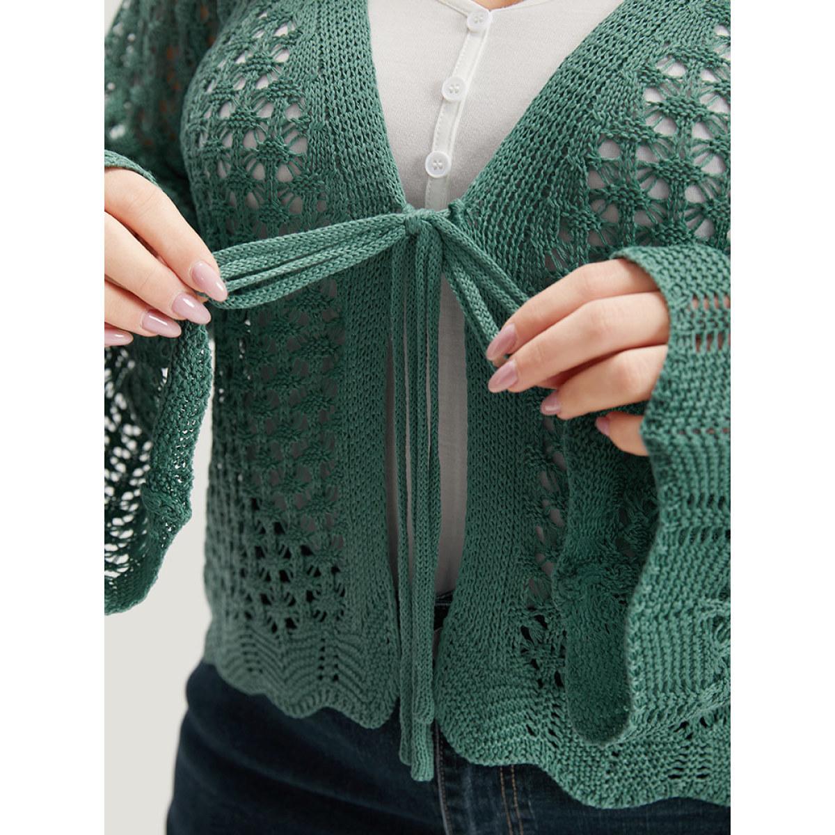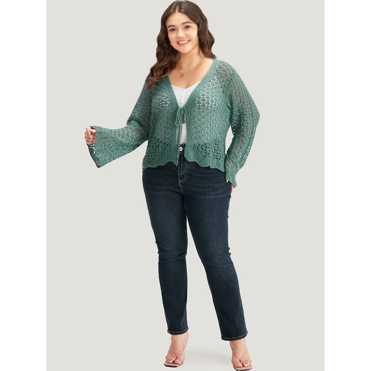 Plus Size Hollow Out Ties Front Bell Sleeve Cardigan Emerald Women Casual Loose Long Sleeve Everyday Cardigans BloomChic 30/6X