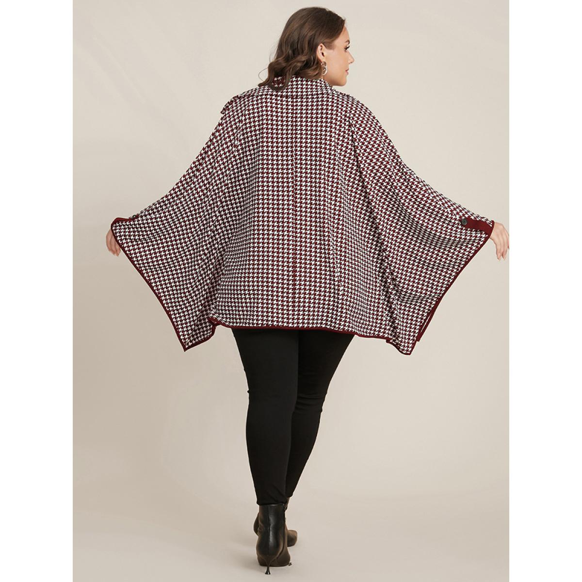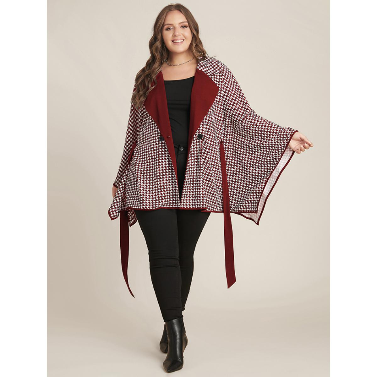 Plus Size Houndstooth Contrast Dolman Sleeve Suit Collar Belted Coat Women Scarlet Elegant Belted Loose Ladies Dailywear Winter Coats BloomChic 28/5X