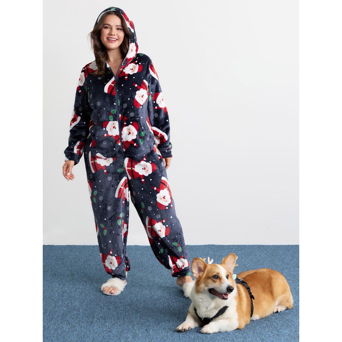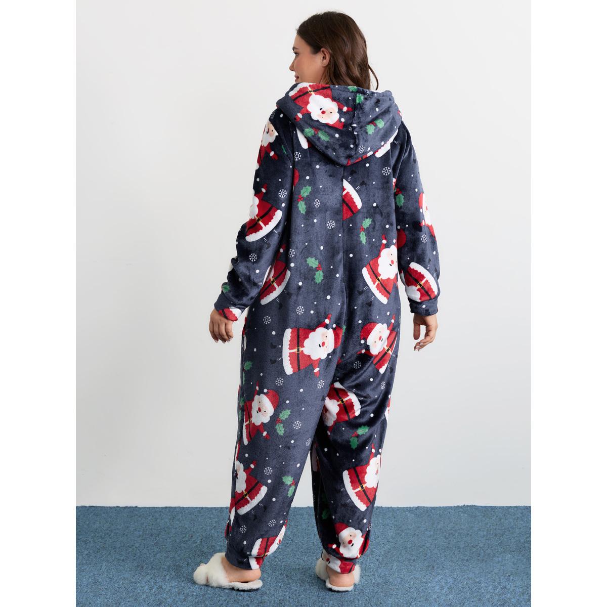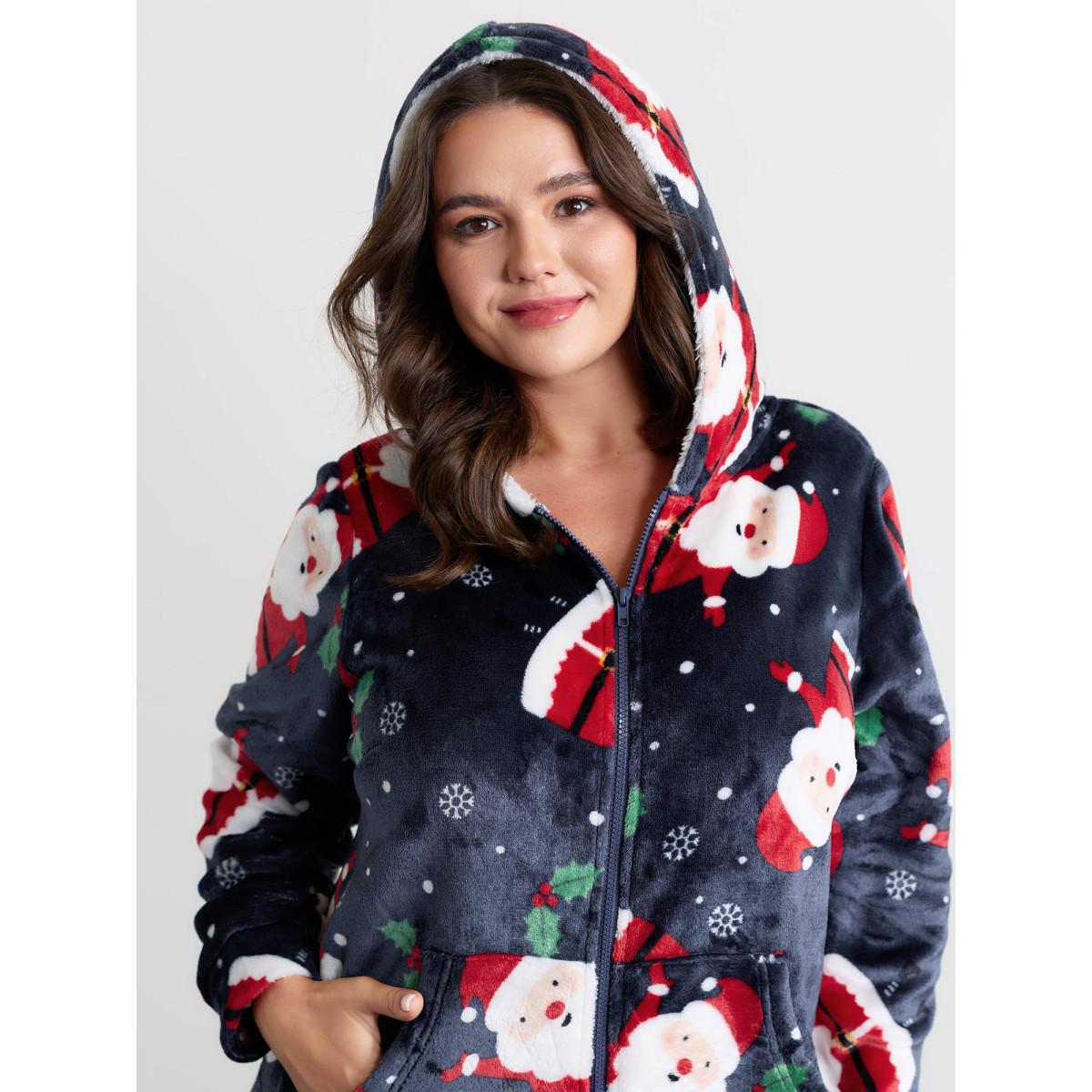 Plus Size Indigo Holiday Fuzzy Plush Pockets Jumpsuit Women Leisure Extra Long Sleeve Hooded Casual Loose Jumpsuits BloomChic 26/4X