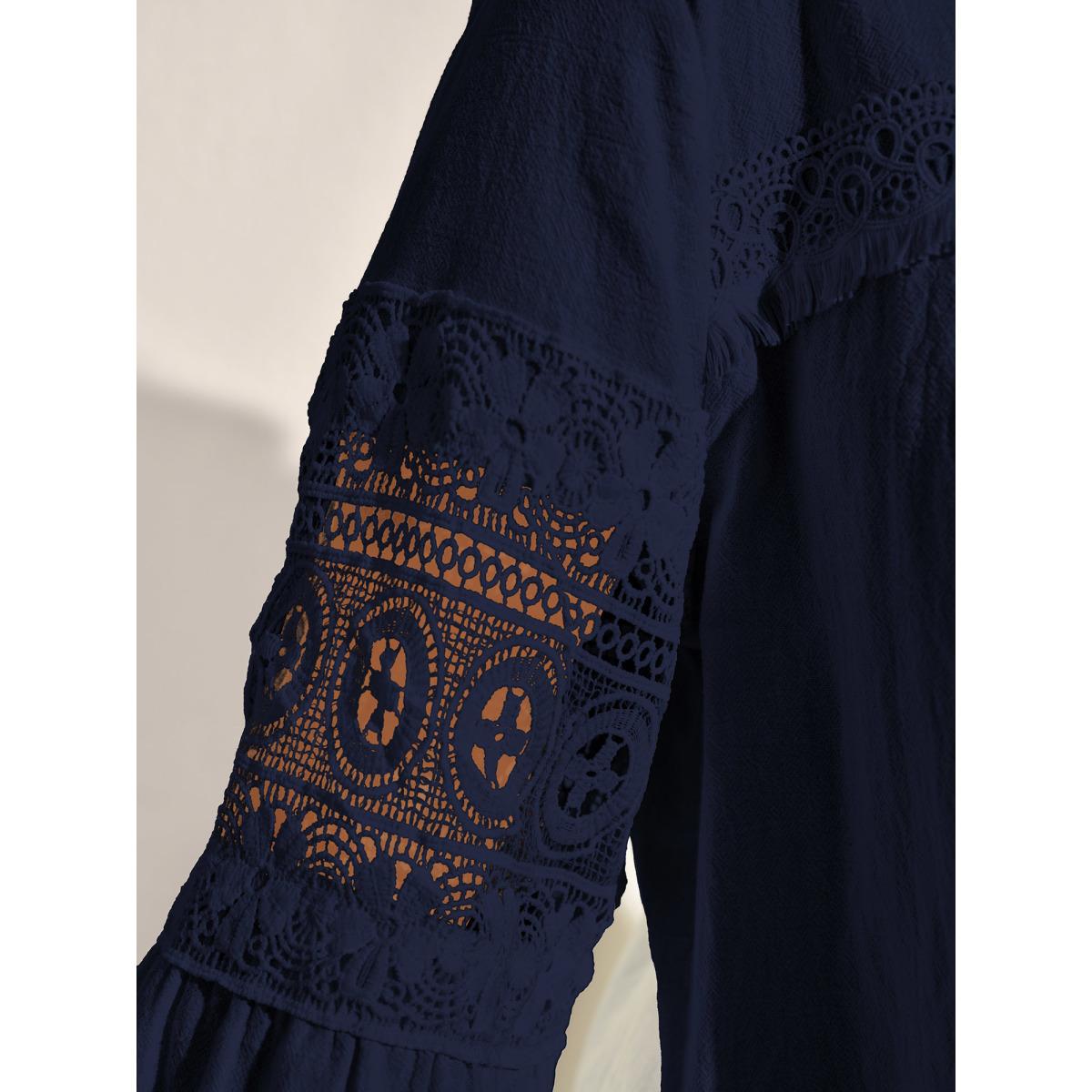Plus Size Indigo Textured Lace Trim Patchwork Ruffles Blouse Women Timeless Long Sleeve V-neck Elegant Blouses BloomChic 22-24/3X