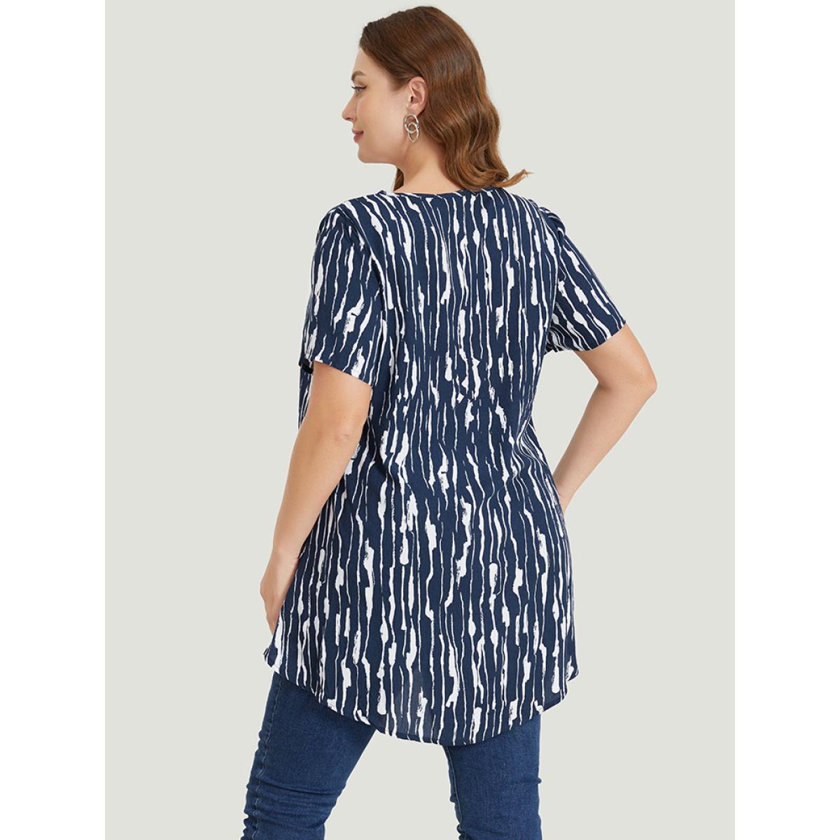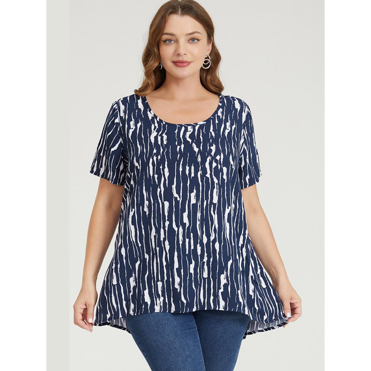 Plus Size Indigo Water Ripple High Low Hem Blouse Women Elegant Short sleeve Round Neck Dailywear Blouses BloomChic 22-24/3X Product Image