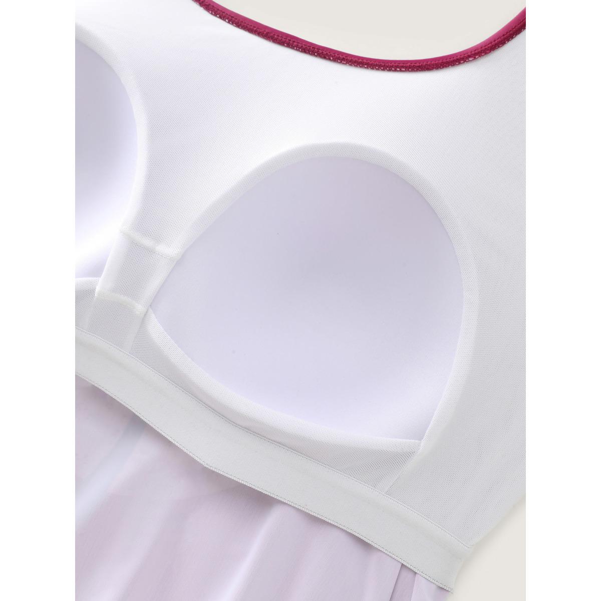 Plus Size Island Print Drawstring Adjustable Swim Top Women's Swimwear Rosered Resort Contrast High stretch Bodycon U-neck Curve Swim Tops BloomChic 30/6X