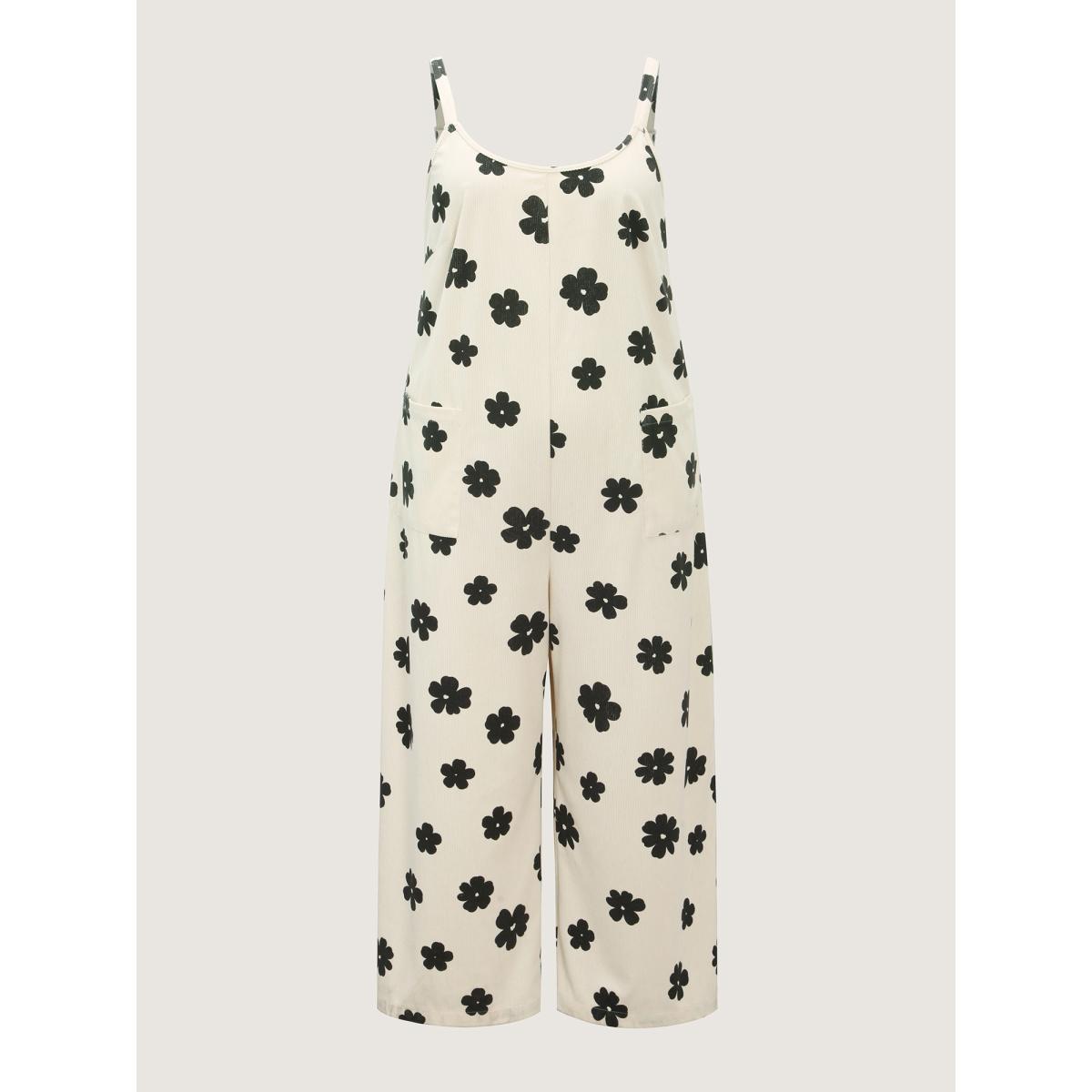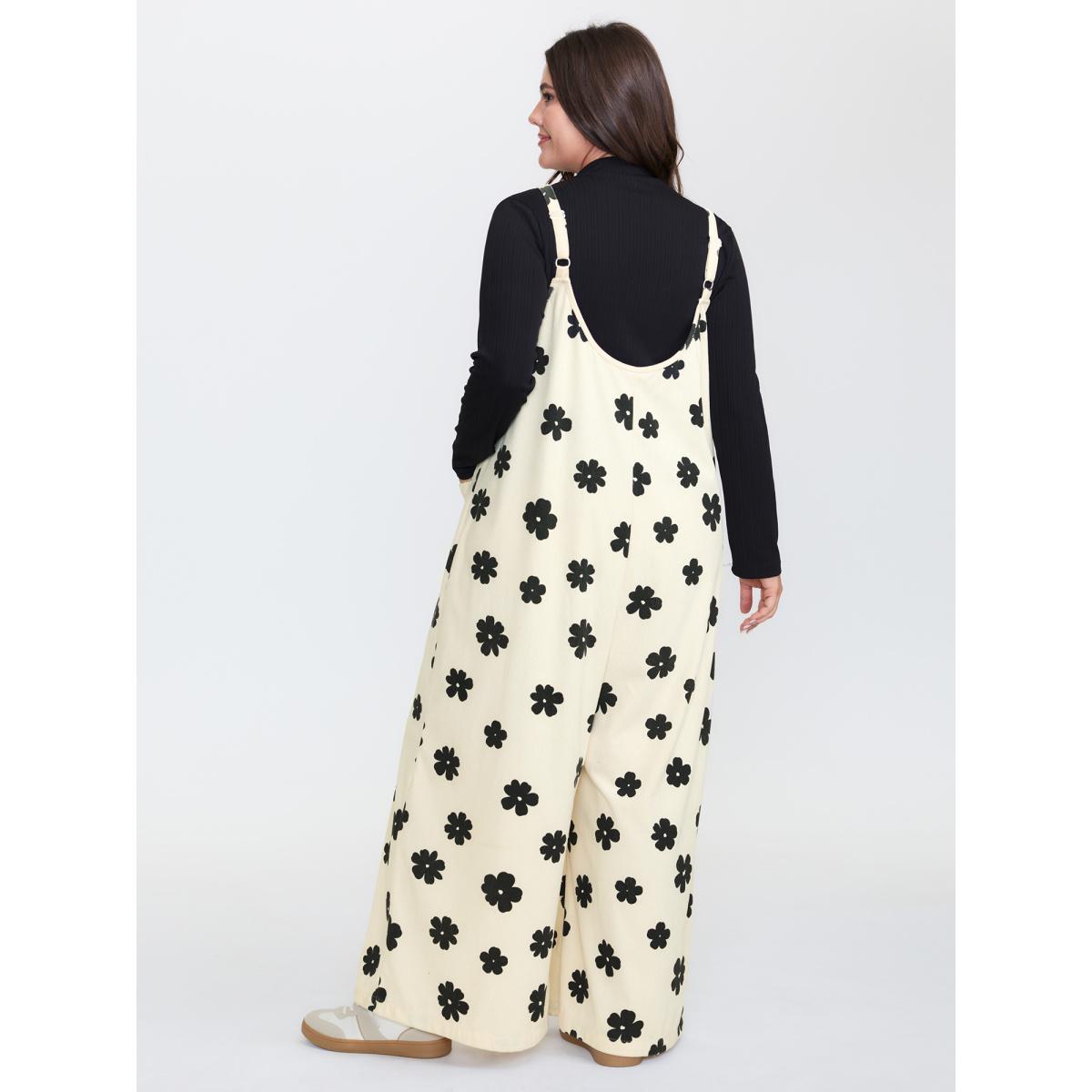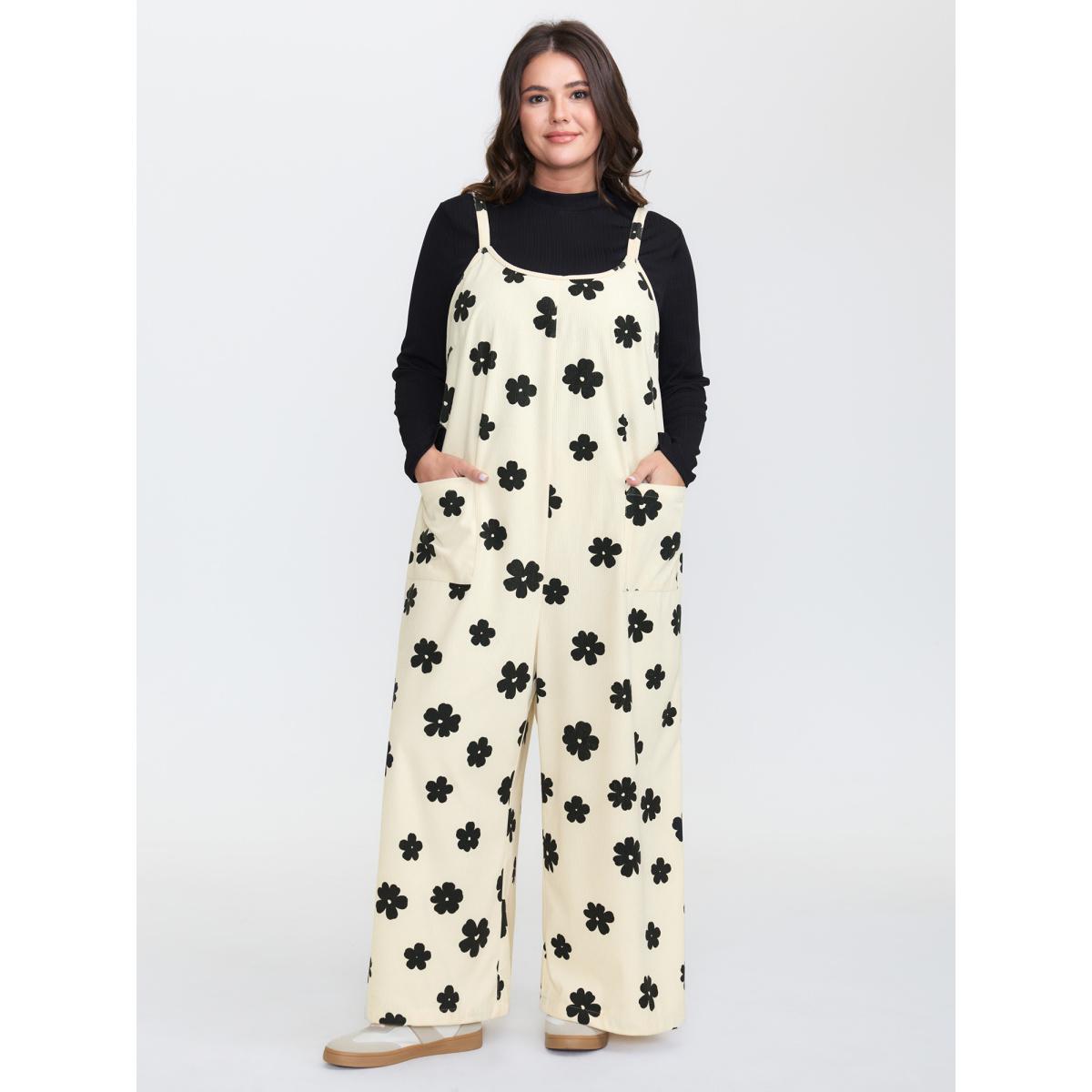 Plus Size Ivory Monochrome Corduroy Wide Leg Scoop Back Jumpsuit Women Sleeveless Round Neck Casual Loose Jumpsuits BloomChic 26/4X