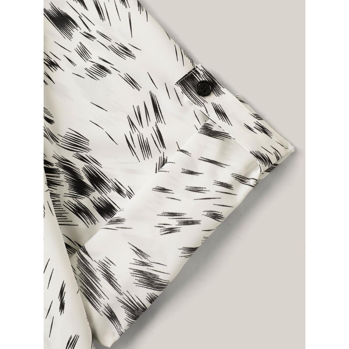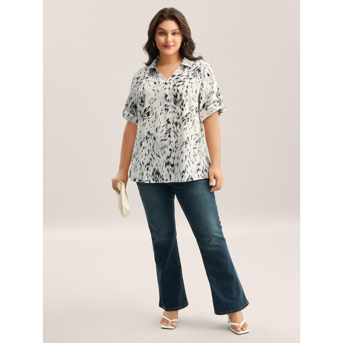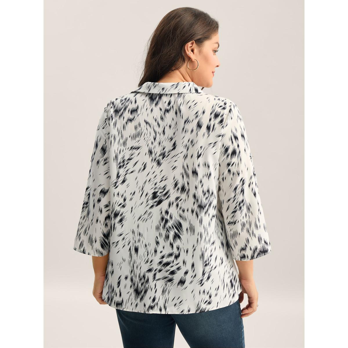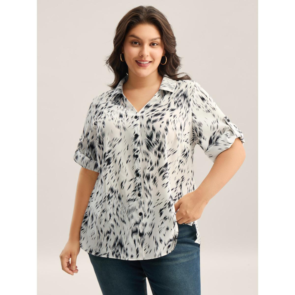 Plus Size Ivory Zebra Print Tab Sleeve Shirt Collar Blouse Women Elbow-length sleeve Shirt collar Office Blouses BloomChic 12/L