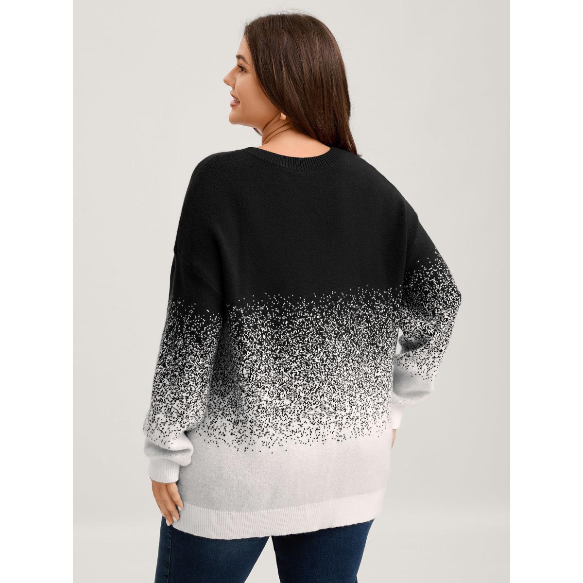 Plus Size Jacquard Color Blend Ribbed Hem Pullover Black Women Leisure Loose Long Sleeve Round Neck Casual Pullovers BloomChic 30/6X