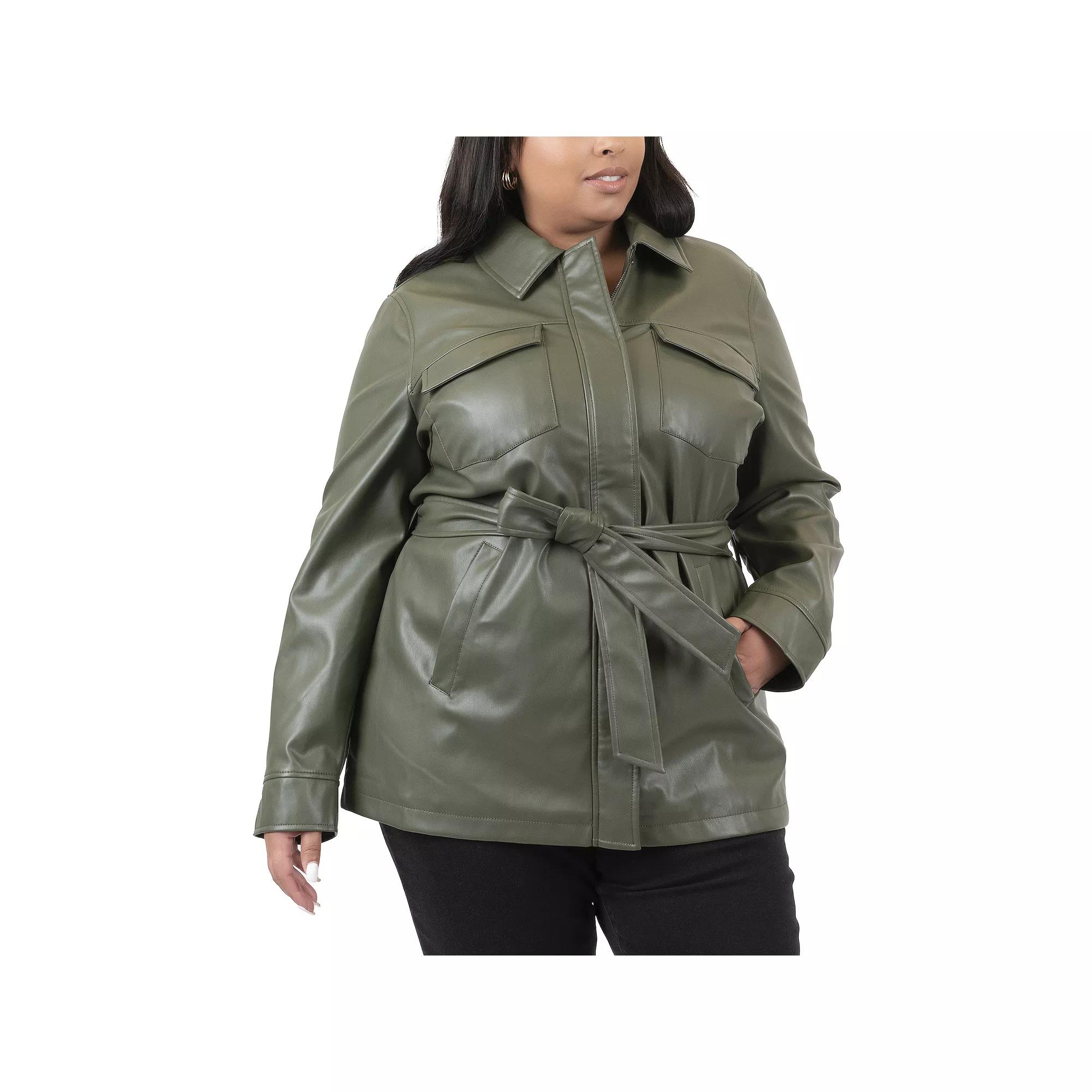 Featuring a faux leather construction, this womens Coffee Shop belted jacket combines fashion and function.Finding the perfect fit and size for womens clothing requires basic measurements of your chest, waist, hips and inseam. Use this guide to learn more about sizing and everything Kohls has to offer in womens fashion. Featuring a faux leather construction, this womens Coffee Shop belted jacket combines fashion and function. Finding the perfect fit and size for womens clothing requires basic measurements of your chest, waist, hips and inseam. Use this guide to learn more about sizing and everything Kohls has to offer in womens fashion. FEATURES Faux leather construction 4 pockets Straight hem Snap & zipper closures Barrel cuffs Long sleeves Fully linedFIT & SIZING Belted waist 30-in. length from shoulder to hemFABRIC & CARE Body: polyurethane, viscose Lining: polyester Spot clean Imported Size: 1X. Color: Green. Gender: female. Age Group: adult.