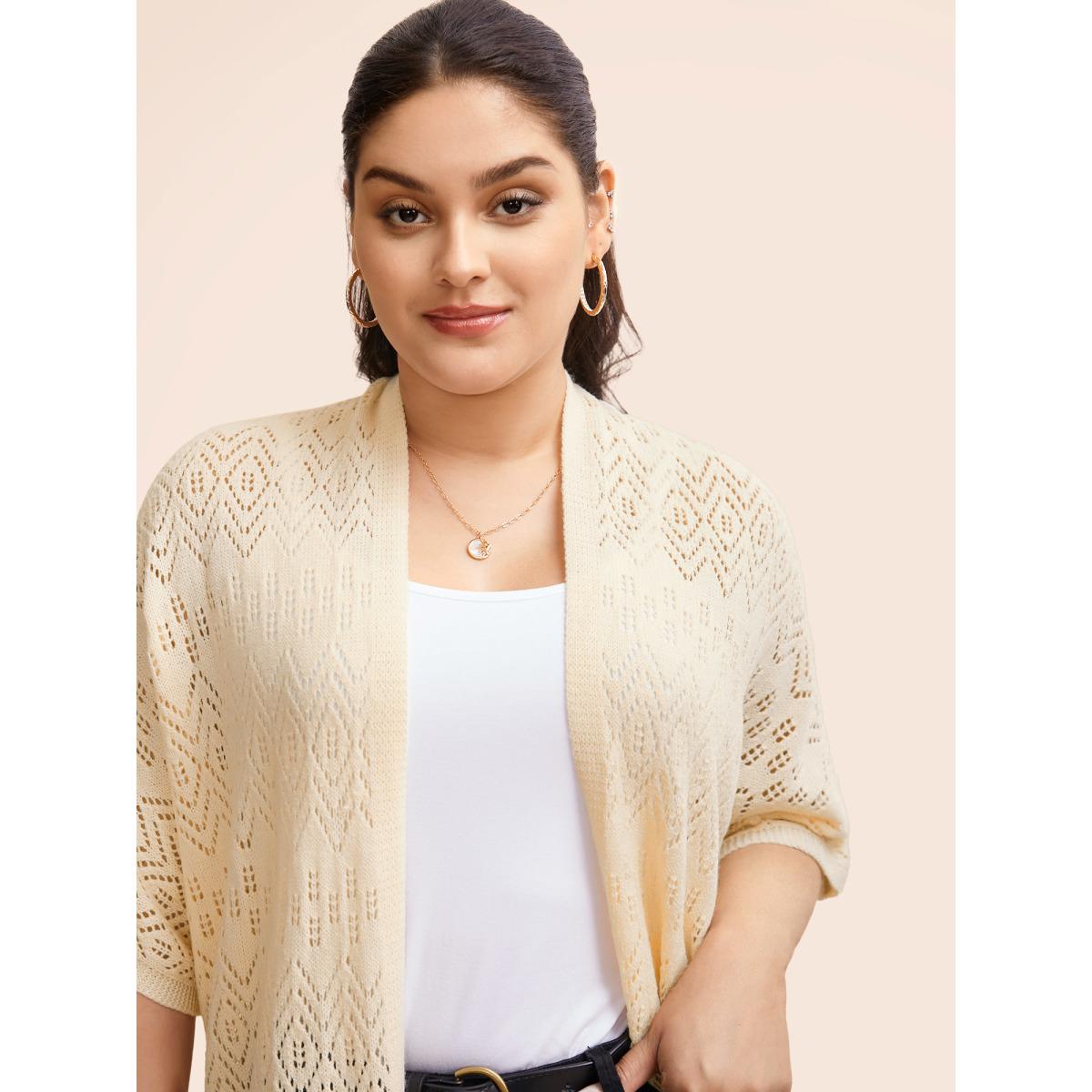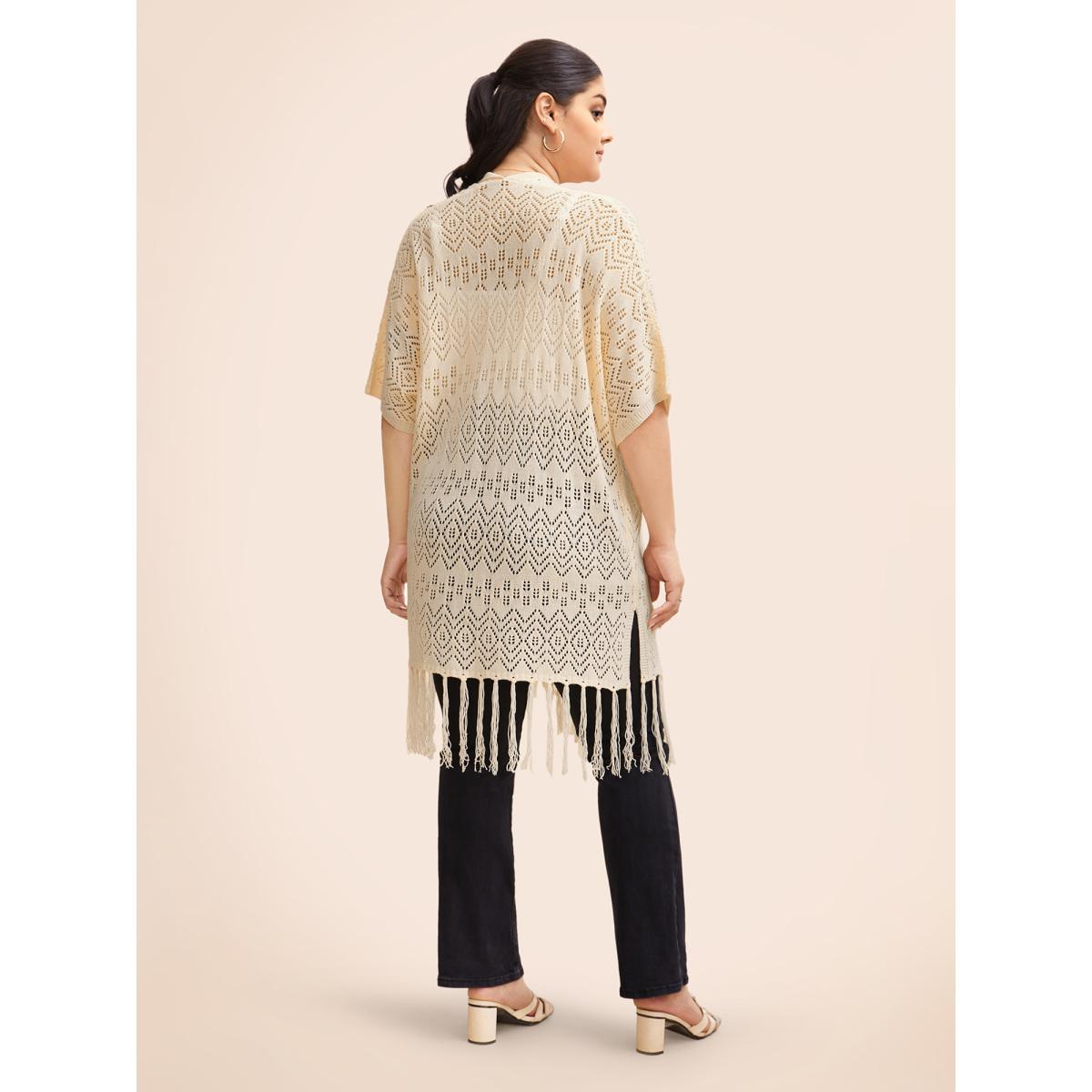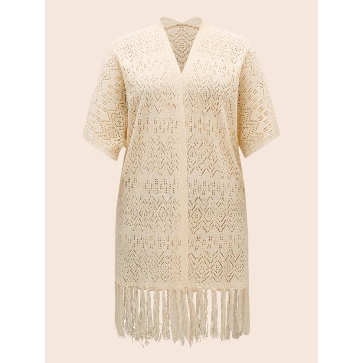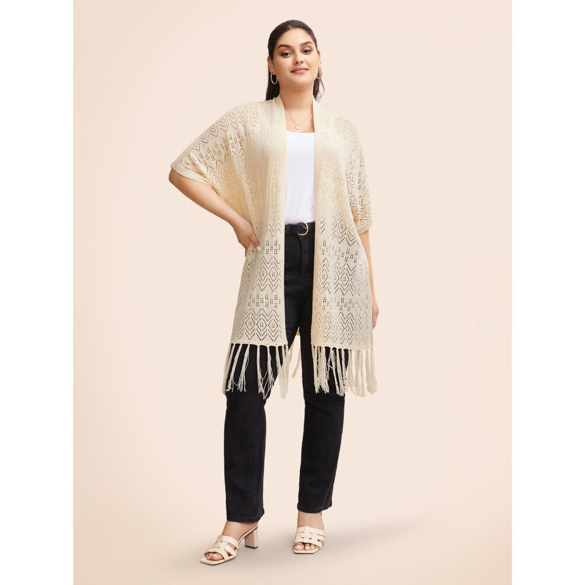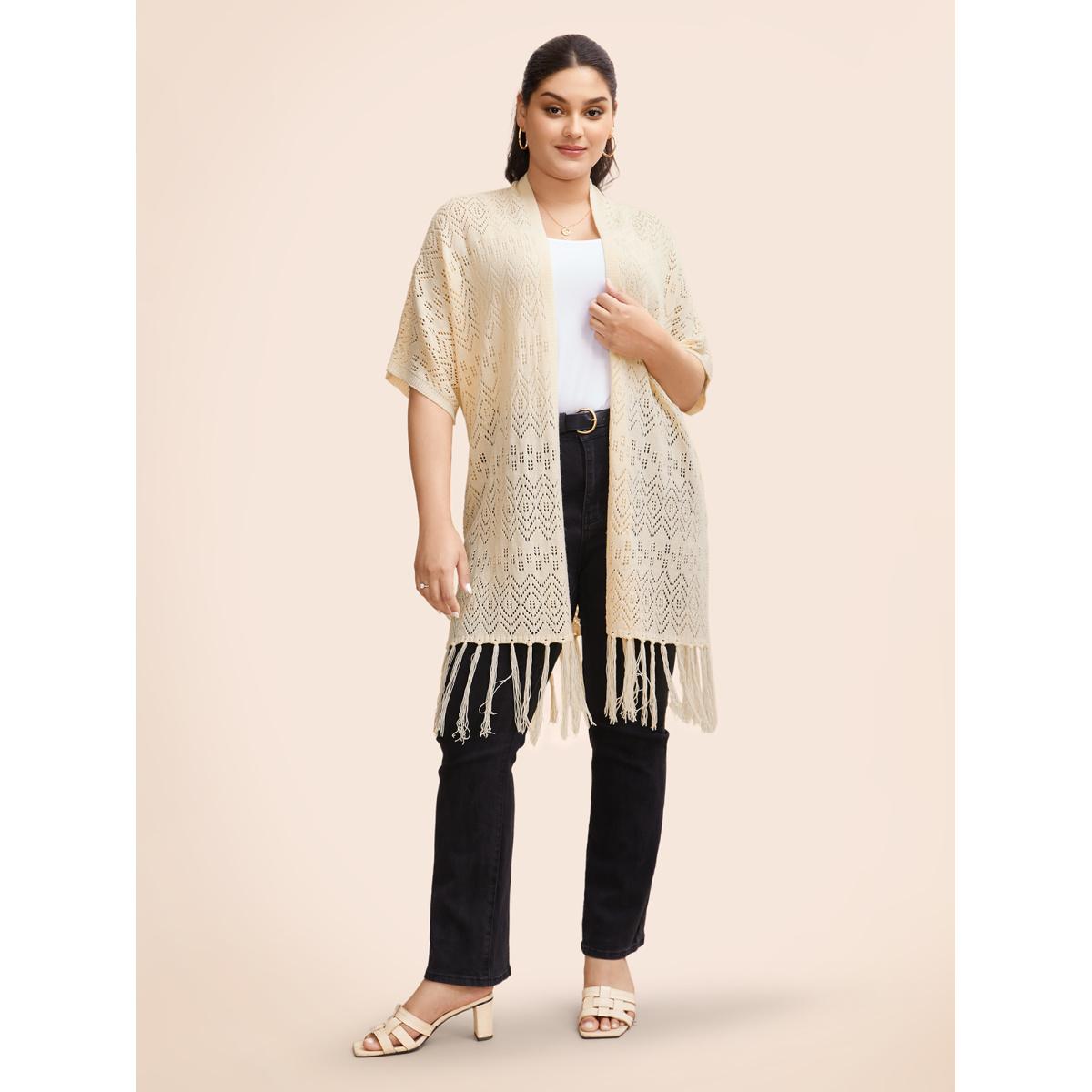 Plus Size Kimono Collar Cut Out Tassel Trim Cardigan Apricot Women Beach Loose Half Sleeve Vacation Cardigans BloomChic 22-24/3X